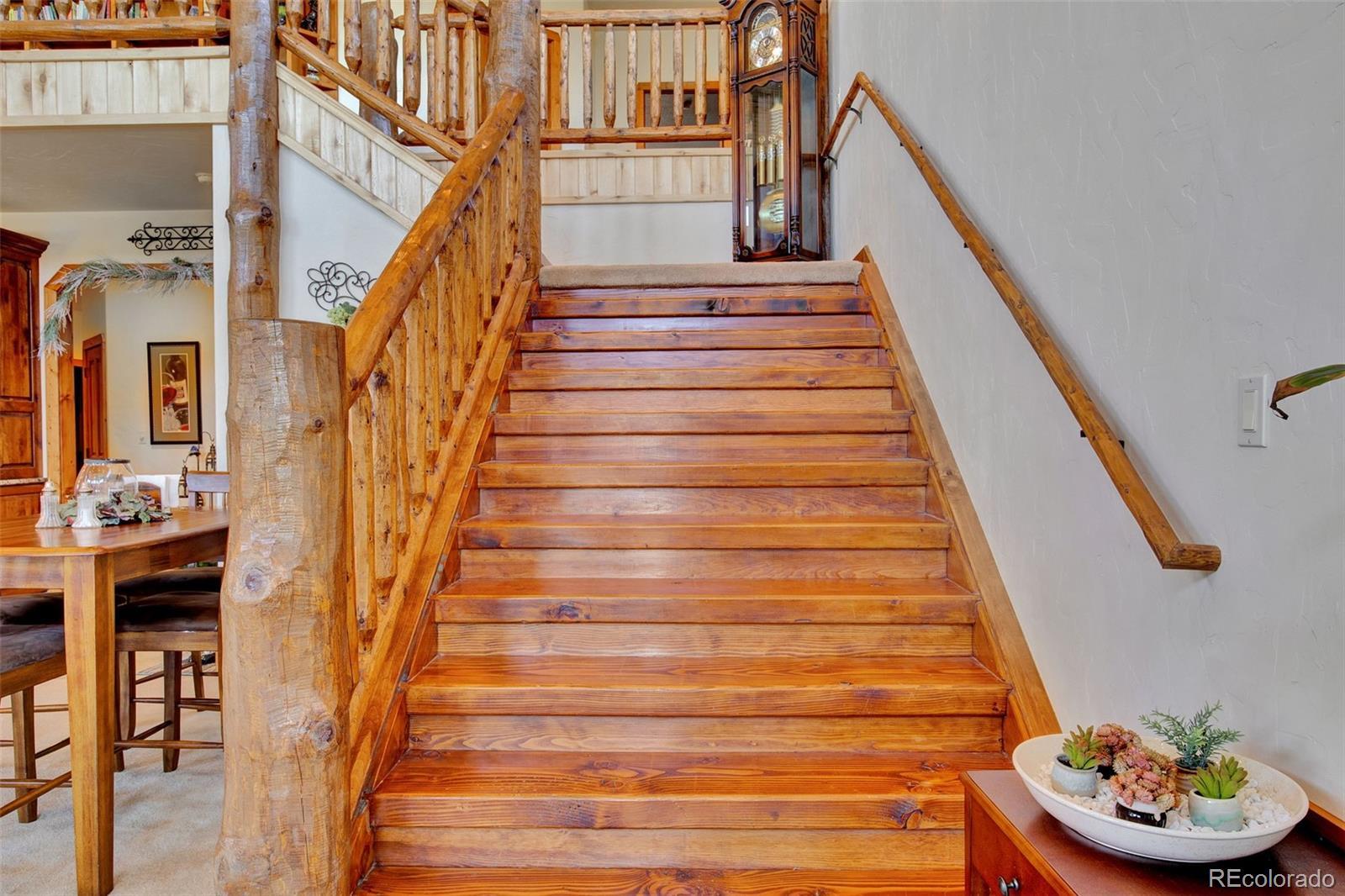 Revel in the tranquility of the Rockies at this 39 acre retreat, bordering BLM land, located 20 minutes from historic Canon City and within hours of skiing. Views of Pikes Peak, Fremont Peak and The Royal Gorge, a covered wrap-around deck, along with a horse barn and 3,000 sq. ft. garage/workshop, make this 5 bed, 5 bath home the ideal place to enjoy mountain quietude. The kitchen, abound with storage, has Legacy cabinets, wrap-around bar with r/o drinking station, island, walk-in pantry, and wine room with a/c. The dining room is a multi use room with additional entrance, possibly an in-home office. The home is well networked for work/school/entertainment, with an in-home audio system and speakers in every room. There is an alarm system, wired smoke alarm, generator and buried propane tank. Upstairs has a loft with views of the nearby mountains, home theater and wet bar, game room with a pool table, and walk out deck. North is a detached two car garage and a six car garage/workshop with a bathroom, car wash system, two gas furnaces, and wood burning stove. The garage/workshop has its own 500 gallon propane tank, septic line, washer/dryer hookups, 220 plugs and refrigerator.
