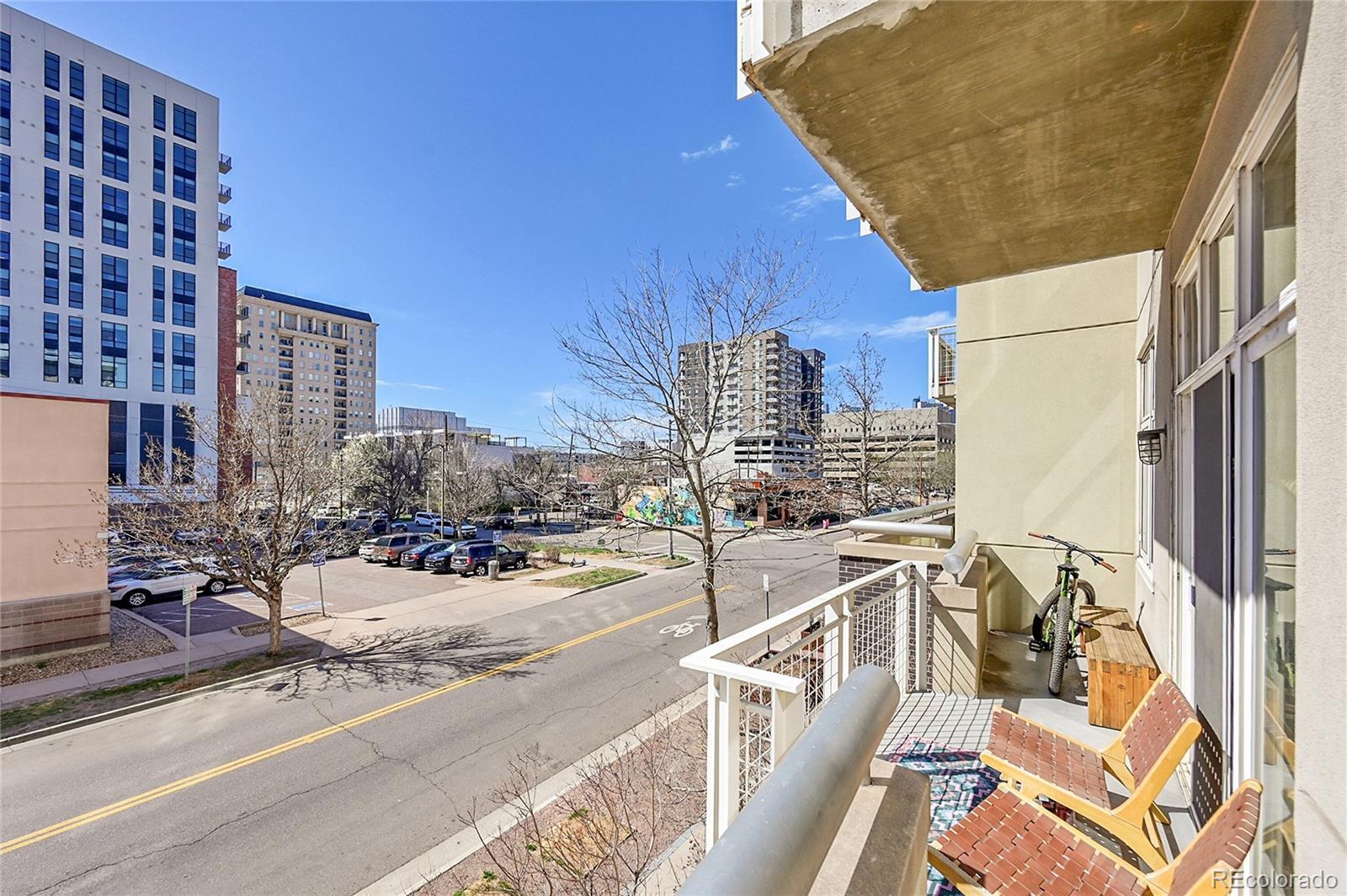 Welcome to your urban sanctuary in the heart of Denver’s Golden Triangle—where art, culture, and everyday convenience seamlessly collide. Tucked inside the coveted Century Lofts, this one-of-a-kind condo blends industrial charm with contemporary design, creating a space that’s as inspiring as the neighborhood itself. As you step through the door, natural sunlight pours through floor-to-ceiling windows, casting a warm glow on rich wood flooring and high ceilings accented with exposed ductwork. The open-concept layout invites you to unwind or host friends with ease, while the bold, modern kitchen—with its vibrant cabinetry, granite countertops, and stainless steel appliances—adds a pop of personality and function to your everyday routine. Morning coffee is best enjoyed on your private balcony, where the hum of the city below reminds you just how close you are to everything. Whether you’re working from home or curling up with a good book, the flexible floor plan adapts to your lifestyle, offering both comfort and versatility. A new furnace and AC (installed in December), in-unit laundry, secure garage parking, and ample storage make everyday living effortless. But it’s the location that truly sets this home apart—just steps from beloved local favorites like Leven Deli, Cuba Cuba, and Lo Stella Ristorante, not to mention world-class museums, art galleries, Civic Center Park, and the Cherry Creek Trail for biking or strolls along the creek. Live where Denver’s creative spirit thrives. This is more than a condo—it’s your front-row seat to the city’s most exciting and walkable neighborhood. Welcome to life in the Golden Triangle. If you travel to Denver to see the sports, theatre or galleries, this is the perfect place to lay your head.