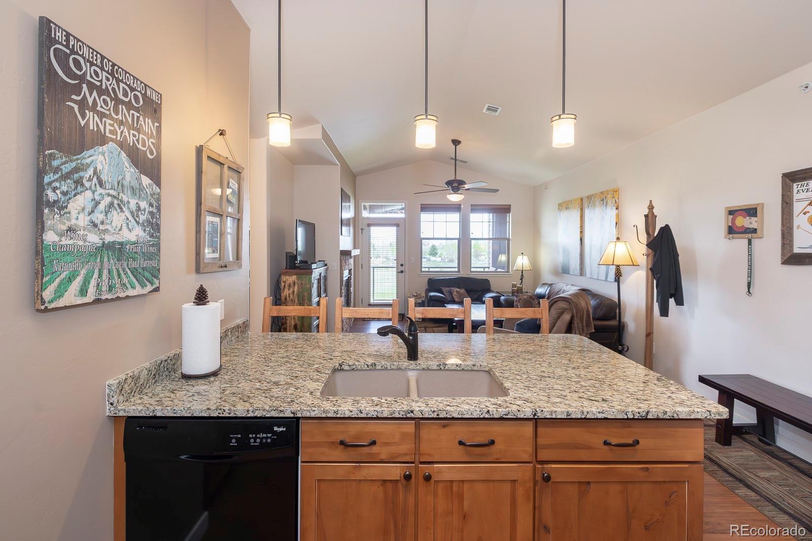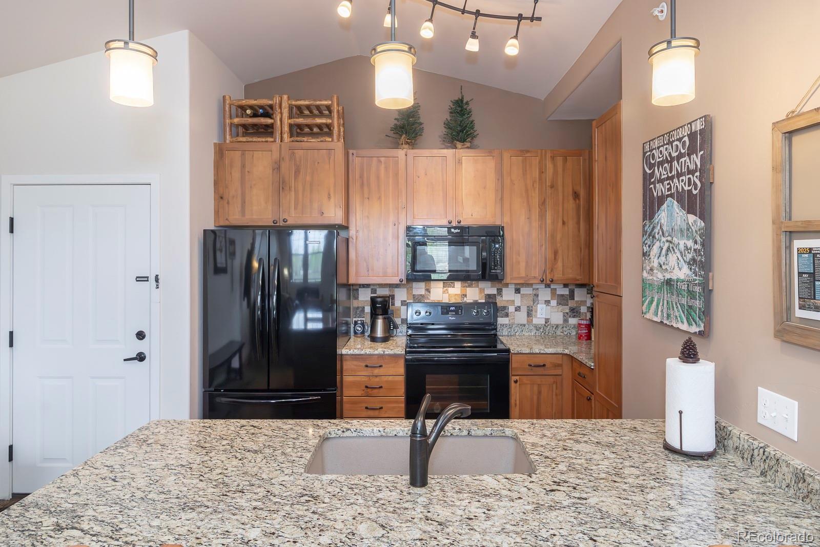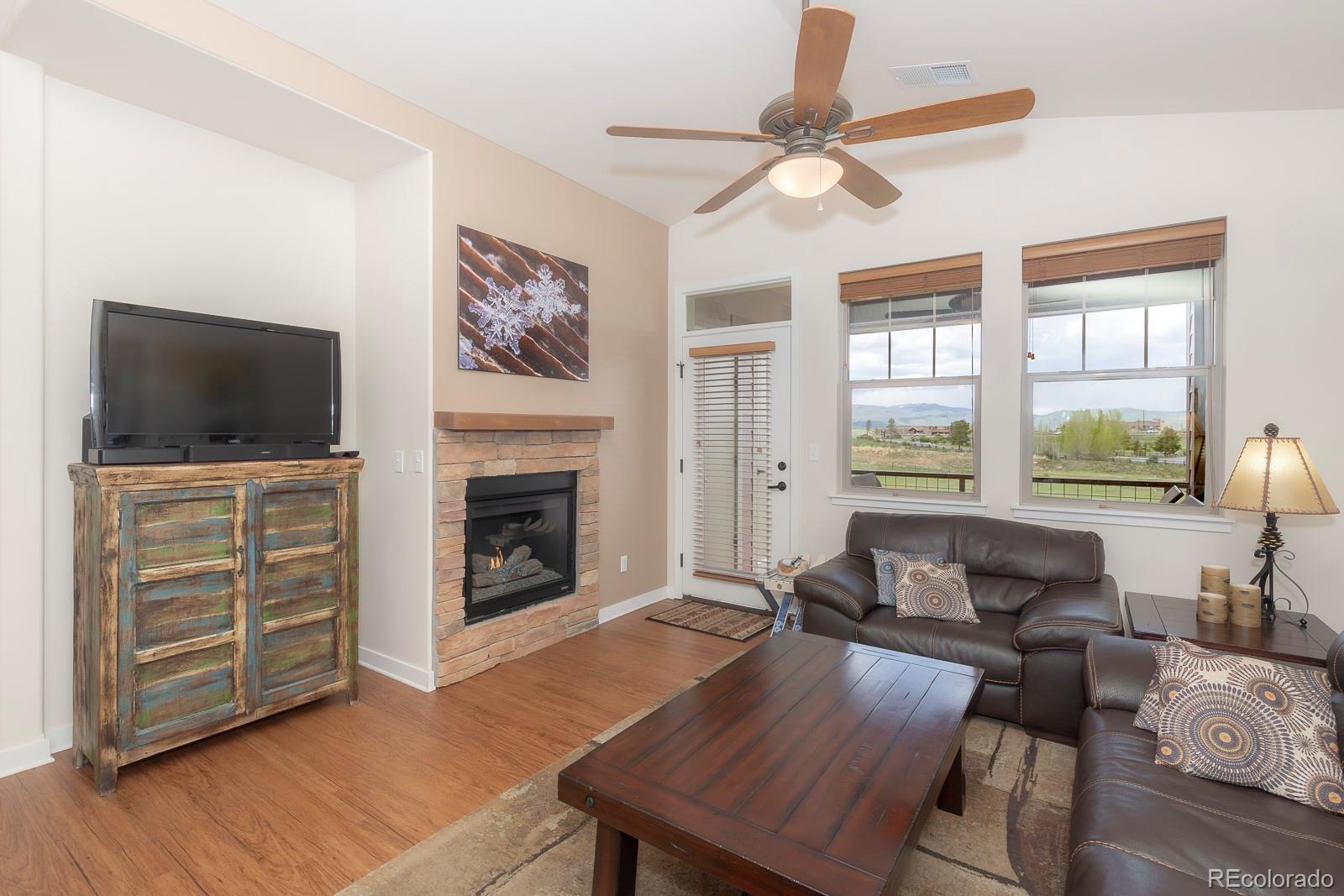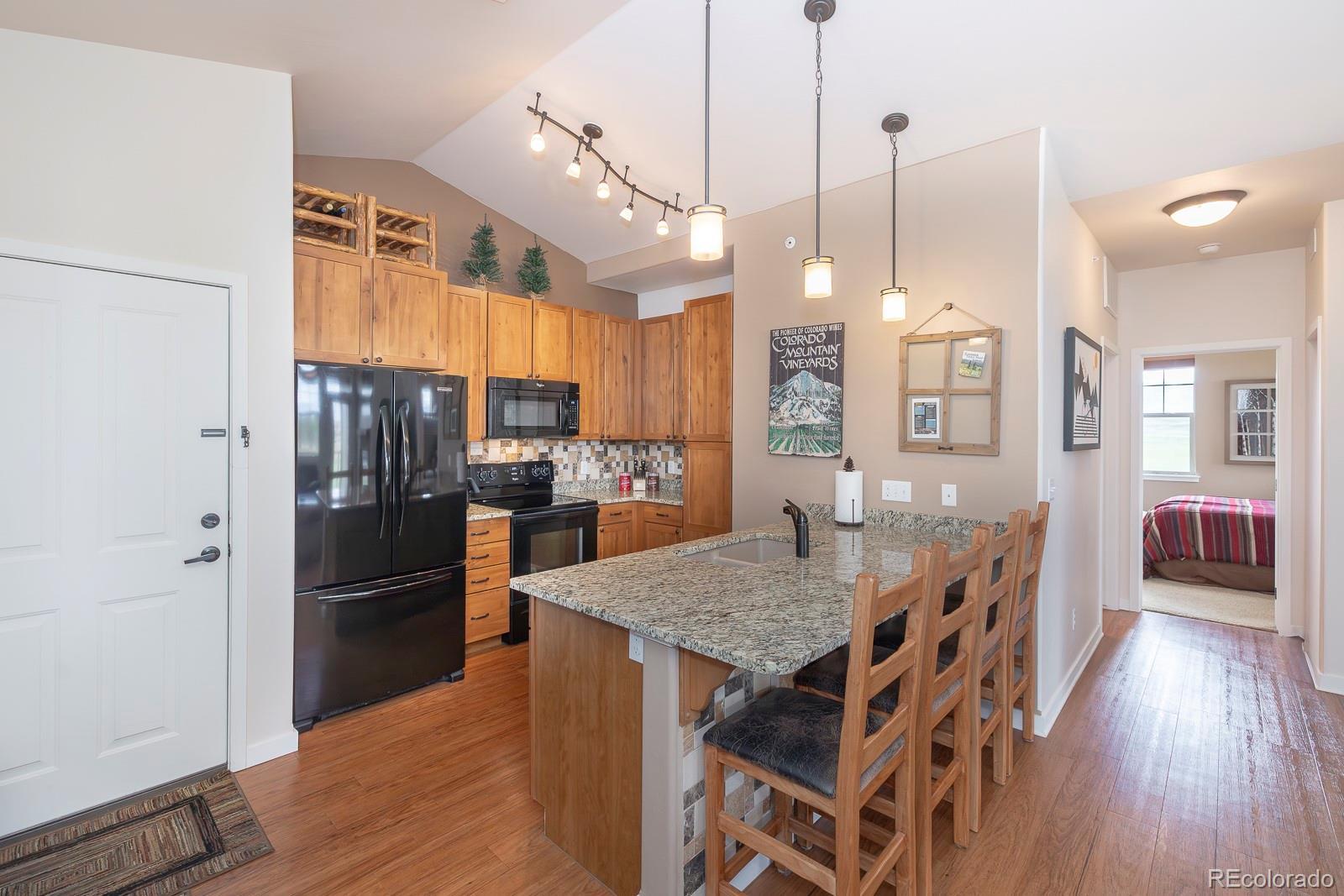 Experience the best of Aspen Meadows in this stunning 2-bedroom, 2-bath top-floor condo, complete with a private garage and soaring vaulted ceilings. Enjoy sweeping views of the surrounding ranchlands and majestic mountains — a breathtaking backdrop in every season. Located in one of the newest buildings, this residence features high-end finishes throughout, including craftsman-style cabinetry, bright granite countertops in the bathrooms and primary suite, and a custom tile backsplash. The property is impeccably maintained and filled with thoughtful, upscale details. You'll appreciate the convenience of a dedicated garage plus additional outdoor storage for all your mountain gear. Situated in the heart of Granby Ranch, you'll have access to a full range of amenities — ski, golf, fish, and hike right from your doorstep.