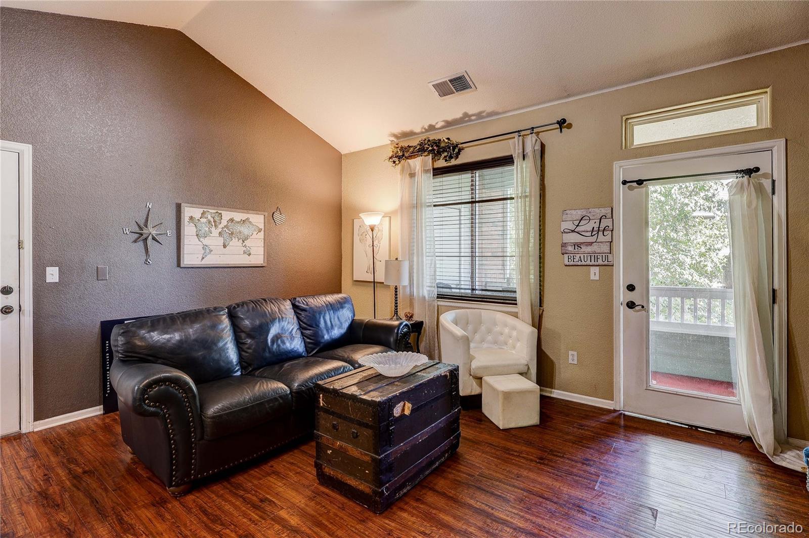 Welcome to this rare beautifully maintained 3-bedroom, 2-bath condo located in a quiet west Littleton community. Situated on the second floor, this bright and airy home offers open-concept living with soaring ceilings and laminate flooring throughout. The spacious kitchen features plenty of cabinet storage and pantry which opens seamlessly into the dining and living areas. This smartly designed layout includes three well-sized bedrooms, including a primary suite with a walk-in closet and private en-suite double sink bath. The two secondary bedrooms offer generous closet space and a second full double sink bathroom is perfect for your guests. Enjoy your private covered patio, Additional perks include a covered carport for parking, access to the community clubhouse, fitness center, and pool, and nearby walking trails and parks for enjoying the outdoors. Shopping is just minutes away. This is easy, low-maintenance living in a prime Littleton location.