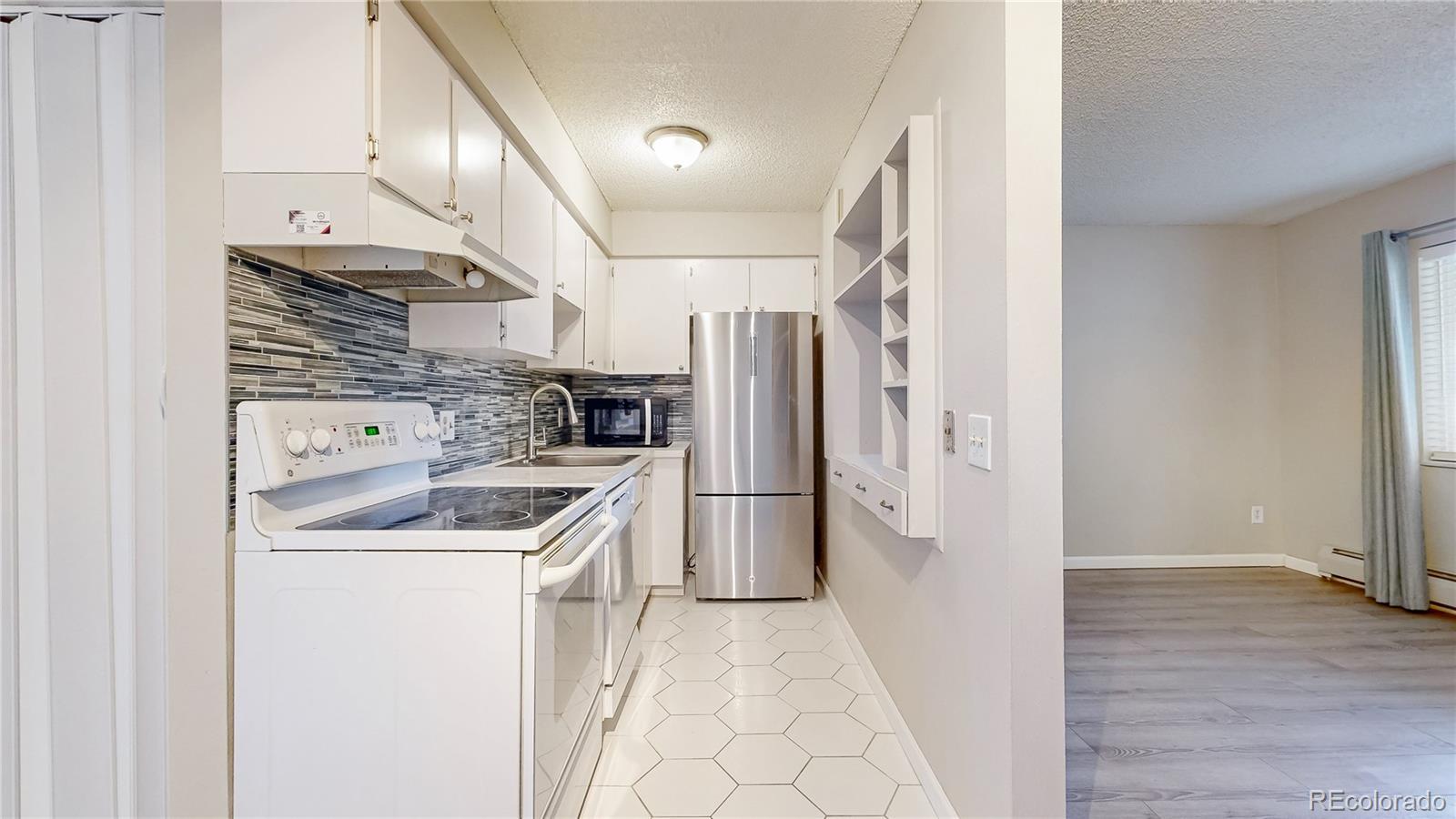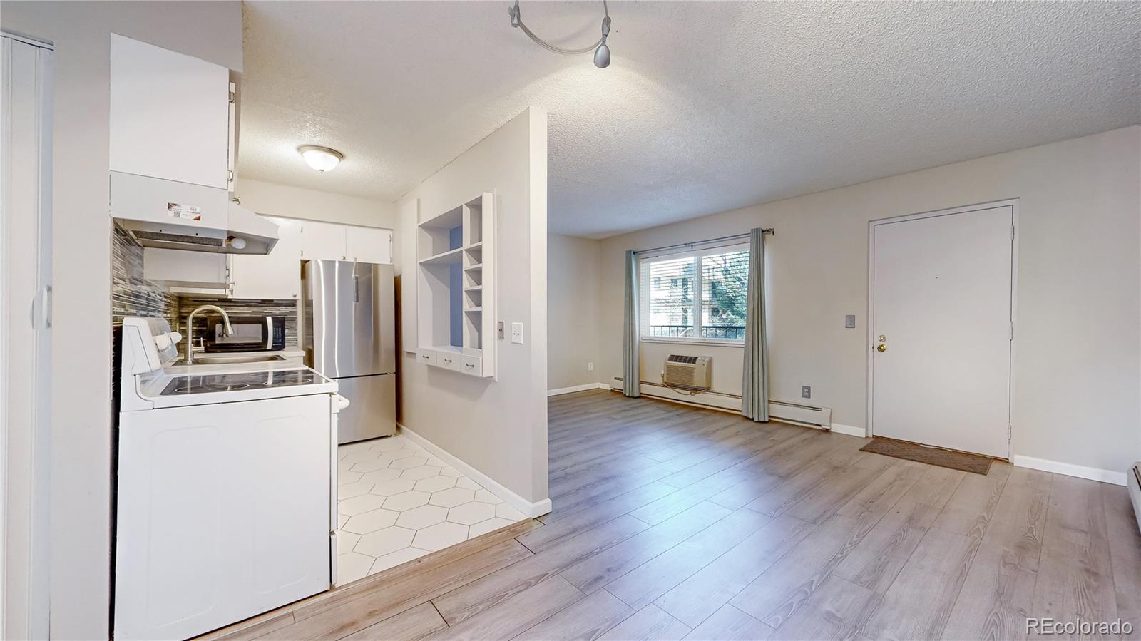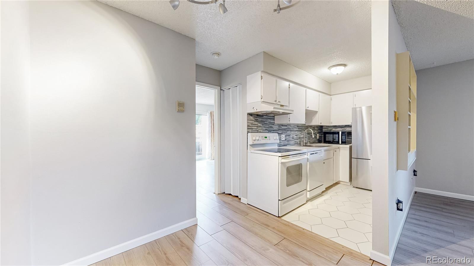 Step into a bright, open-concept layout where the living room flows effortlessly into the dining area and kitchen—ideal for cozy nights in or hosting friends. Freshly installed in October 2024, premium Luxury Vinyl Plank flooring throughout (with sleek tile accents) brings durability, style, and easy upkeep to every room. The spacious primary bedroom serves as your private oasis, complete with a serene balcony for morning coffee or evening unwind, plus direct access to the en-suite bathroom for ultimate convenience. Enjoy true low-maintenance ownership: the HOA takes care of heat, water, sewer, trash, exterior maintenance, and more—leaving you free to relax by the seasonal outdoor pool or stroll the community's lush green spaces. A dedicated reserved parking spot waits right in front of the building, and you're perfectly positioned with quick access to top shopping, dining hotspots, major highways, and all Denver has to offer. In today's market, this turnkey gem combines contemporary charm, prime location, and affordability—perfect for first-time buyers, urban professionals, or anyone seeking effortless city living without the upkeep of a house.