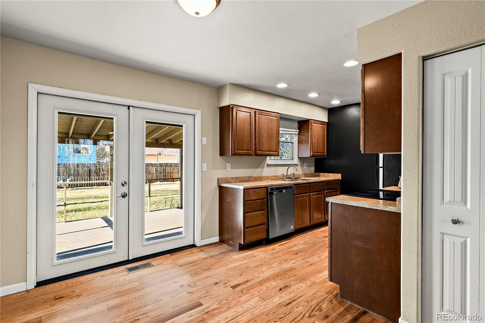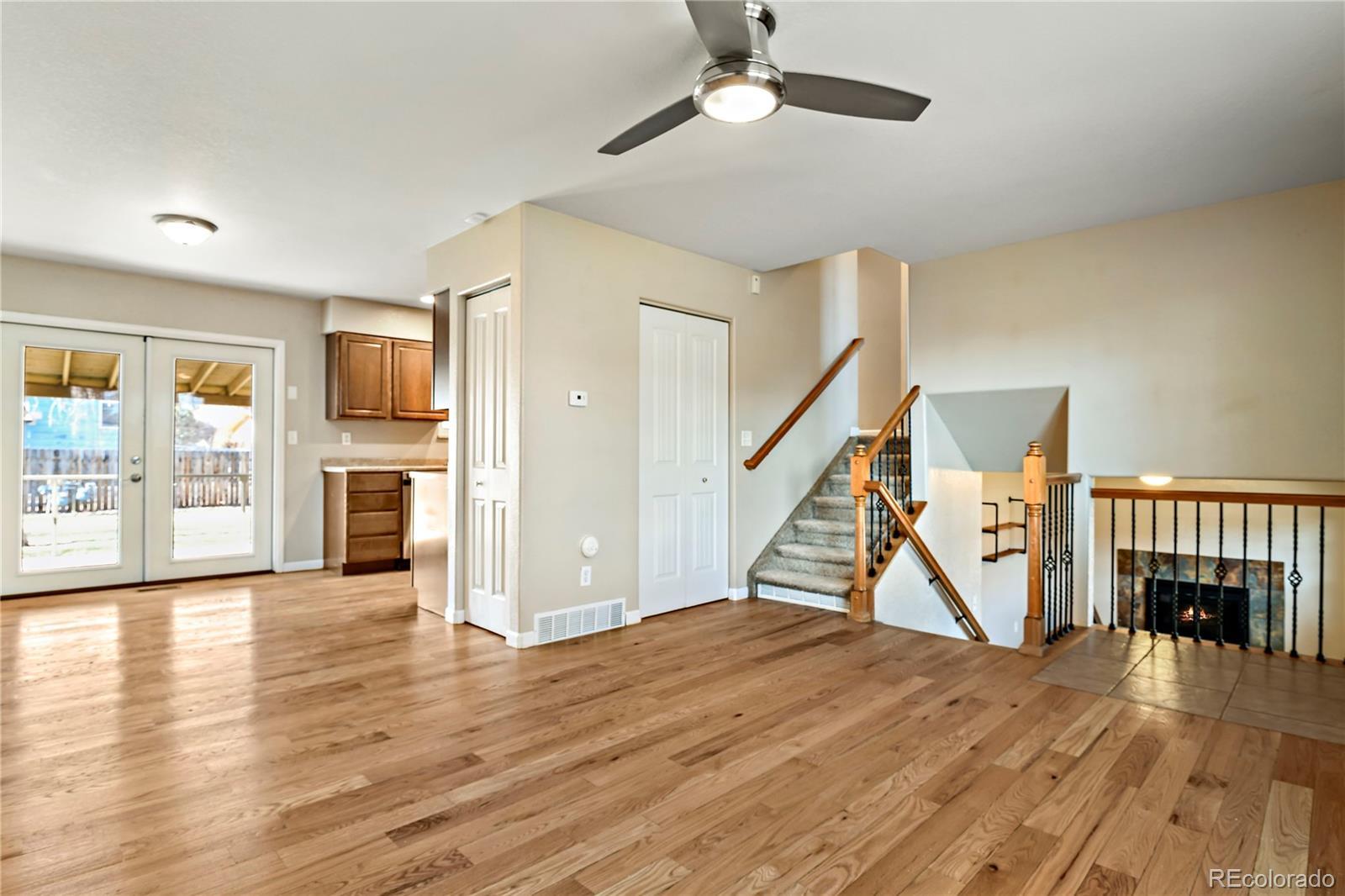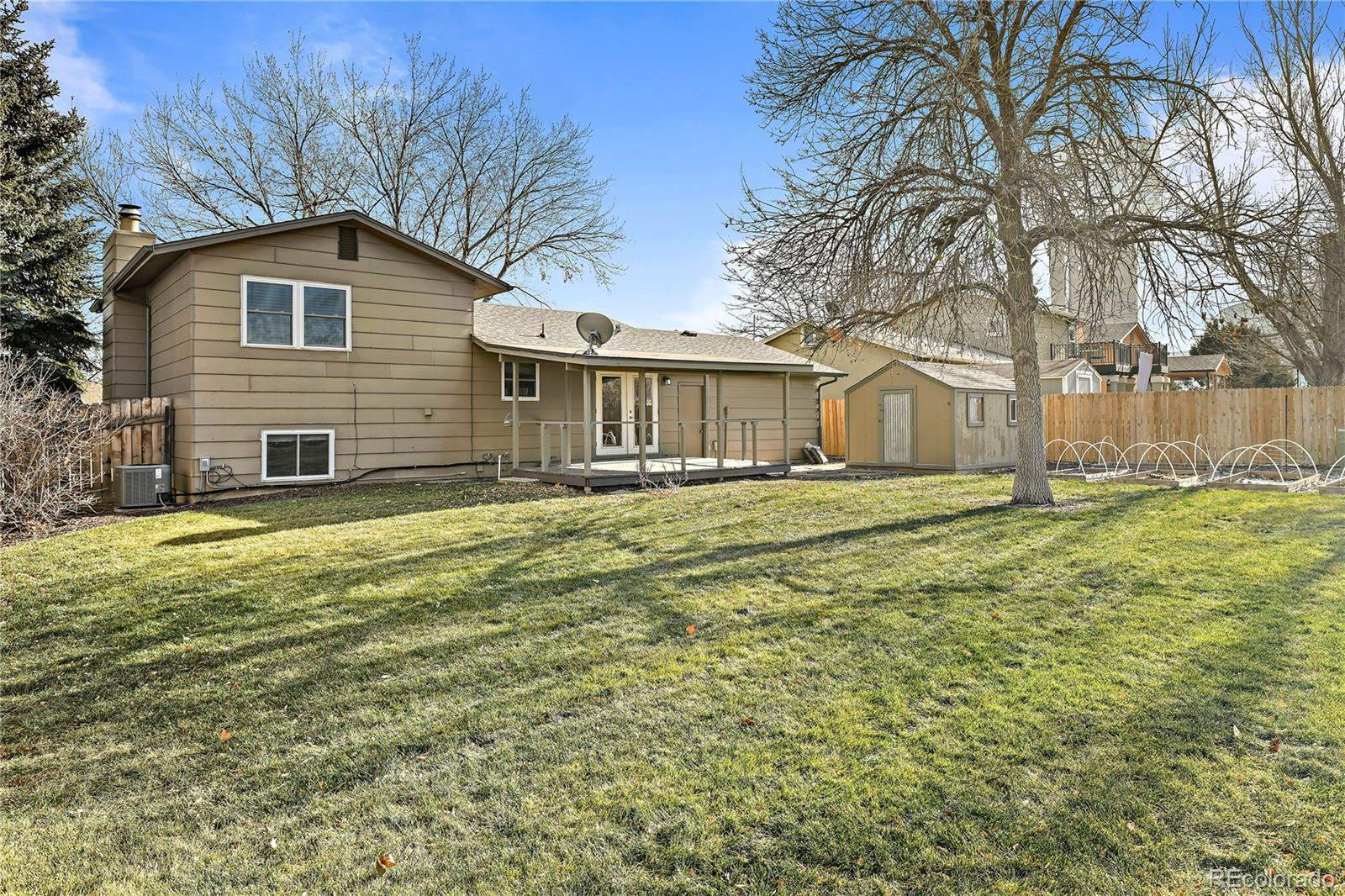 Charming tri-level in Sunrise Ridge! Wonderfully designed for entertainment or relaxation. The main level features hardwood floors throughout. Opening to a spacious living room, this floor plan flows easily into the walk-out dining room and kitchen featuring stainless steel appliances and a glass top oven. The upper level includes the owner’s bedroom, a second bedroom, and a full bath. Head downstairs to cozy up in the family room with its wood burning fireplace, also on this level is a third bedroom, a ¾ bath, and the laundry room. Enjoy Colorado’s outdoors on the covered deck or in the fenced and landscaped backyard featuring garden beds and a storage shed. Just a short drive from local shopping, entertainment venues, and military bases.