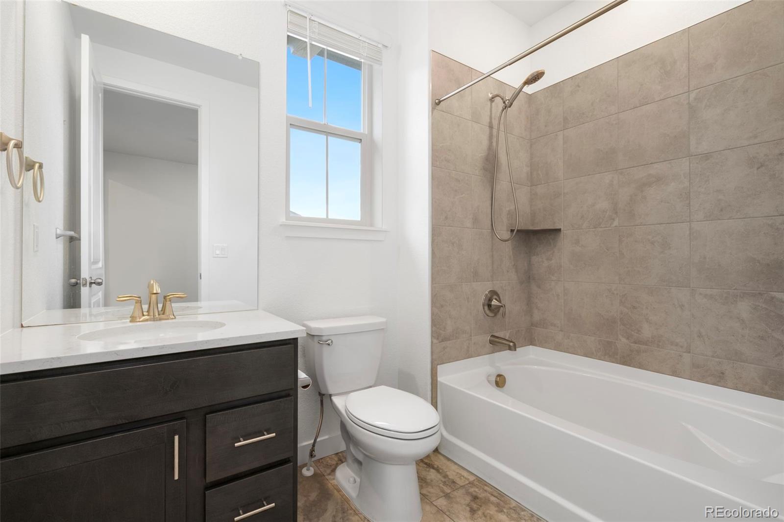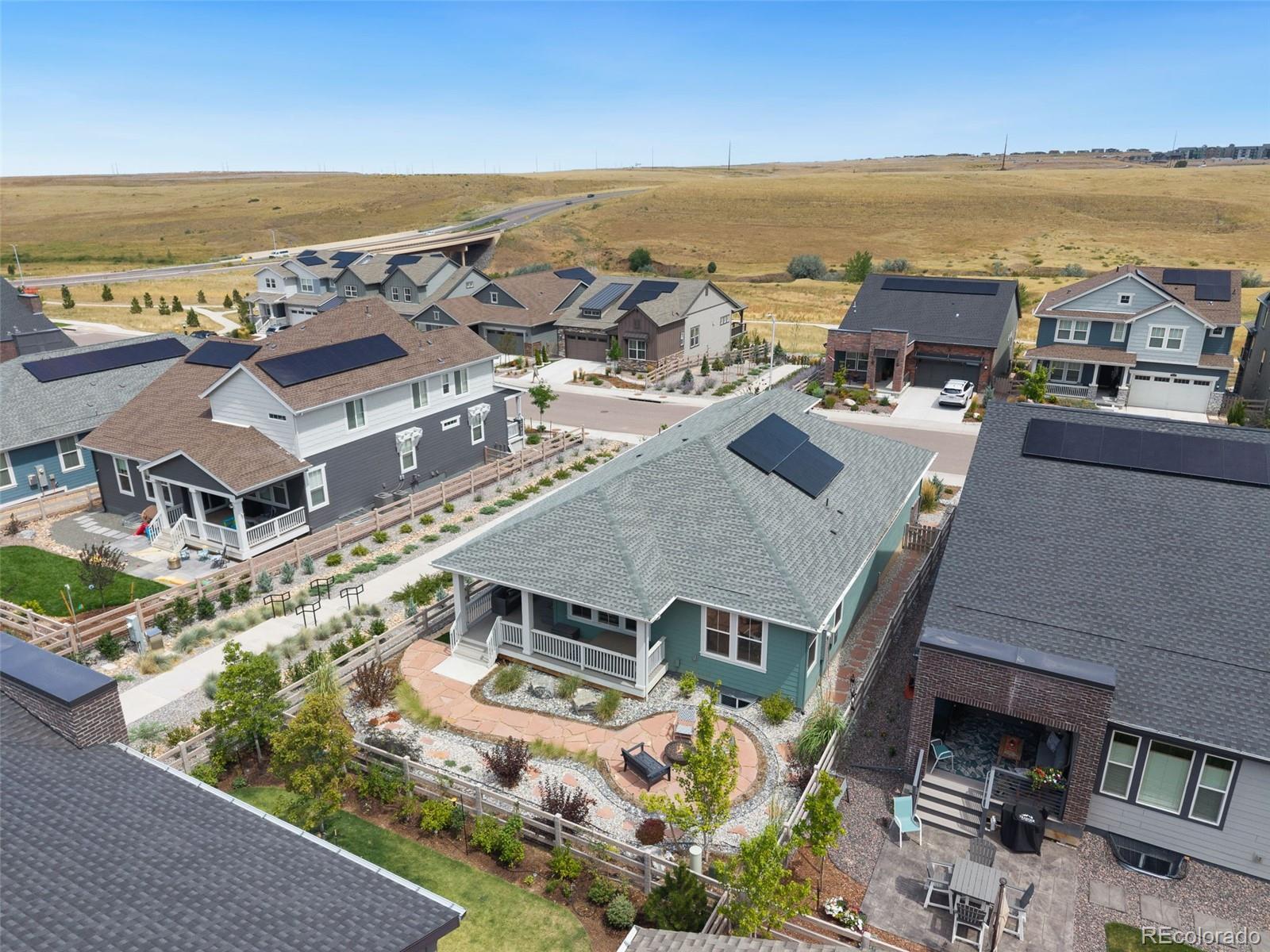 Welcome to Sterling Ranch! Built in 2023, this 3 bed 2 bath home is better than new, with $25,000 in landscaping improvements. Upon entering, you will find 2 bedrooms perfect for guests or an office, as well as a full bath giving them their own convenient space. Gorgeous LVT flooring leads you into the kitchen which features a gas stove, stainless steel appliances, walk-in pantry, and the sprawling island of your culinary dreams. The open concept seamlessly connects you to the living room and dining area, so you don't miss a thing while entertaining. The large primary suite has everything you need with high ceilings, an en-suite bath with double vanity and oversized shower, walk-in closet, and laundry room conveniently attached to the closet. The home also has a full size unfinished basement providing all of the storage you could need, or the perfect opportunity to add your finishing touches and double the square footage. Heading outside, enjoy your covered deck complete with the included hot tub, or enjoy nights by the fire pit in your no-maintenance, fully fenced-in yard. Solar panels mean lower energy bills for you, so all you have to worry about is enjoying the endless trails right outside your front door, and taking advantage of all of the amenities the Sterling Ranch community has to offer including the Overlook Clubhouse with a fitness center and pool. And if you feel like venturing outside of the community, you are also only 5 minutes away from Roxborough State Park, Waterton Canyon, and Chatfield Reservoir. Book your tour today and turn Colorado into your own personal playground!