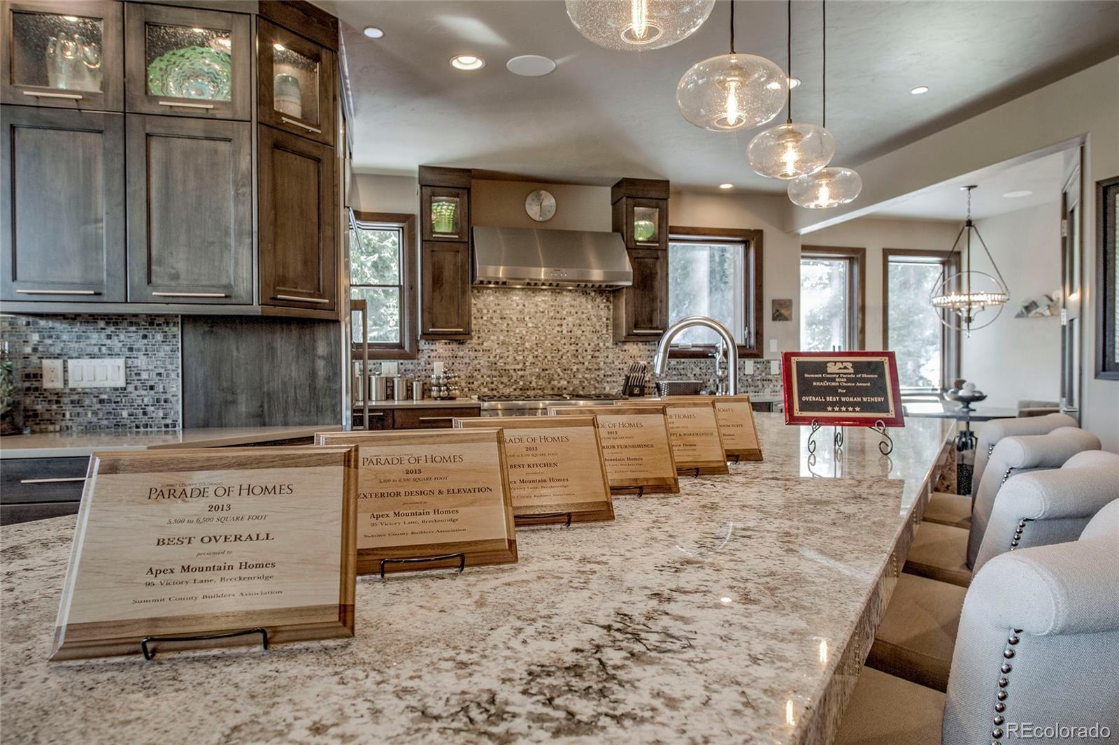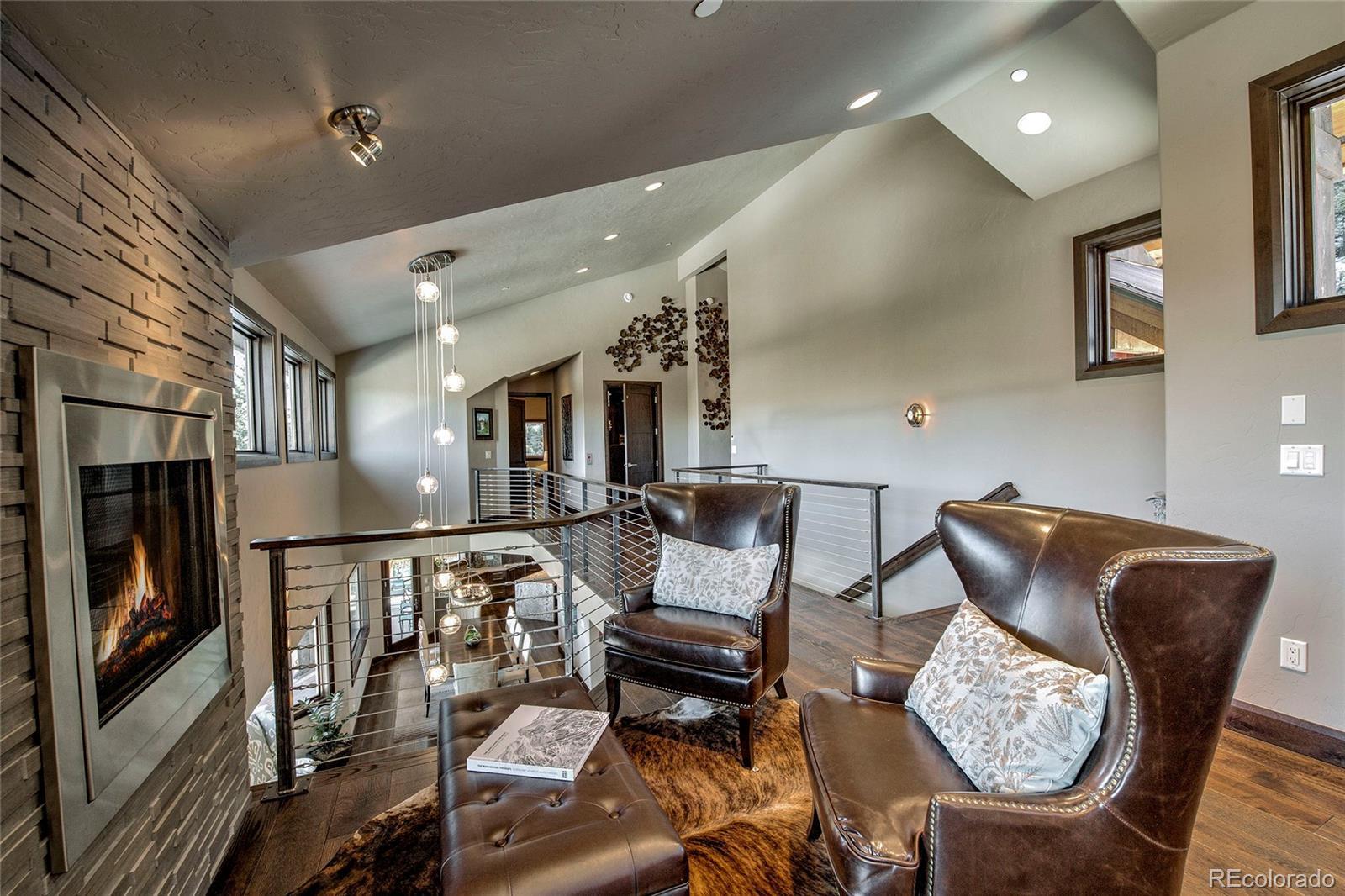 Walk to skiing and downtown Breckenridge from a private, end-of-cul-de-sac setting in the coveted Warriors Preserve. Custom-built and completed in 2013, this award-winning luxury residence offers an exceptionally rare combination of walkable access to Main Street Breckenridge and Ski Resort, privacy, and refined mountain living on a beautifully landscaped and wooded .62-acre lot surrounded by mature forest and open space. Honored with 6 of 8 awards in the 2013 Parade of Homes, the home spans 5,853 square feet across multiple levels, all serviced by an elevator. The open, modern floor plan is filled with natural light and features soaring windows and vaulted ceilings that capture sweeping views of Baldy Mountain and the surrounding alpine landscape. All 6 bedrooms include ensuite bathrooms and dual closets, with 2 expansive primary suites and a private nanny/guest quarters providing flexible living options. Designed for both everyday comfort and entertaining, the chef’s kitchen offers an oversized bar, breakfast nook, and seamless flow into generous living spaces accented by multiple gas fireplaces both inside and outside. The lower level includes a media room and pool table area ideal for après-ski gatherings. Outdoor living is enhanced by multiple decks and a private covered oversized hot tub. Additional features include a 2-car attached garage with an additional 2 covered exterior parking spaces, a fire suppression water tank, and a natural spring water feature thoughtfully integrated into the landscaping. One owner used as 2nd home, never rented. With immediate access to national trails and skiing, and a short scenic walk to Peak 9 and historic Main Street, this is true luxury mountain living. Timeless design, award-winning craftsmanship, and a private natural setting, just steps from world-class skiing, dining, and everything Breckenridge has to offer.