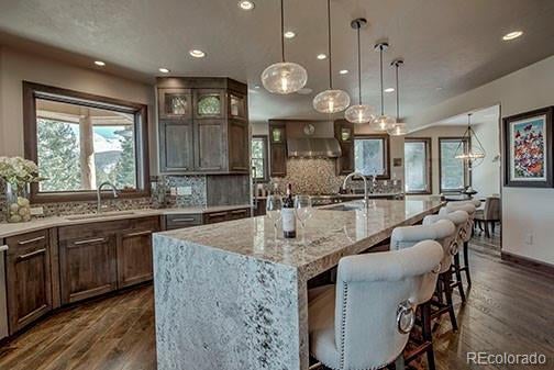 Audio/Video Controls, Breakfast Bar, Built-in Features, Eat-in Kitchen, Elevator, Entrance Foyer, Five Piece Bath, Granite Counters, Kitchen Island, Open Floorplan, Pantry, Primary Suite, Radon Mitigation System, Smart Light(s), Smart Thermostat, Sound System, Hot Tub, Vaulted Ceiling(s), Walk-In Closet(s), Wet Bar