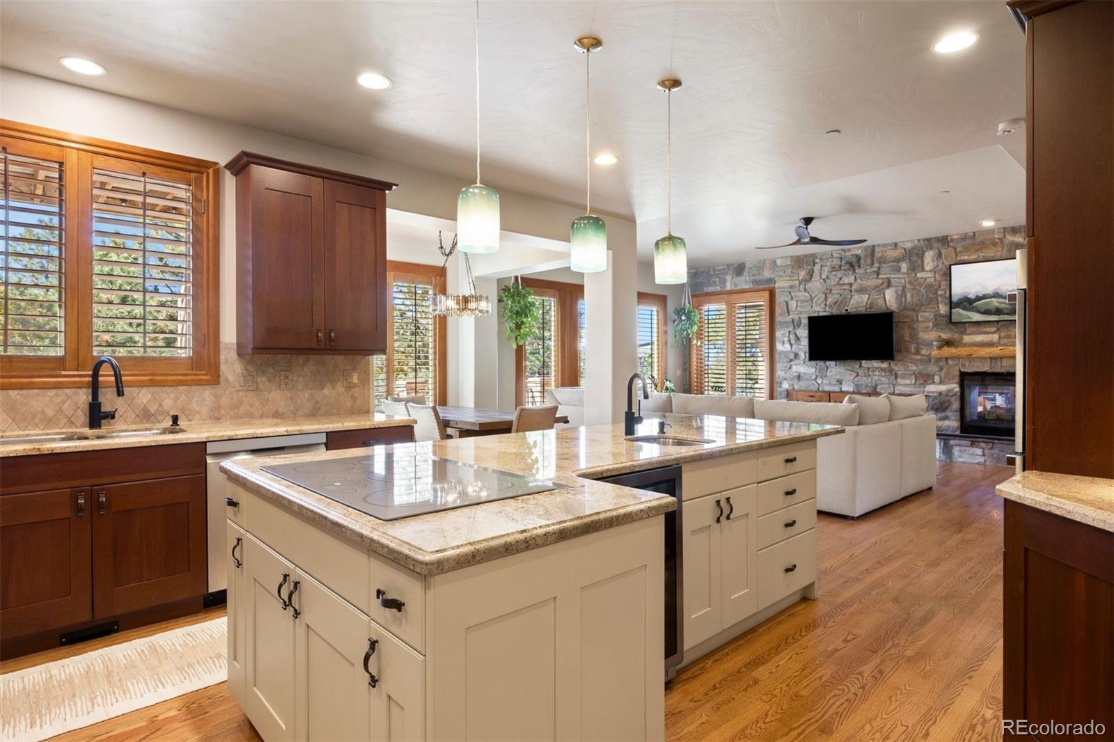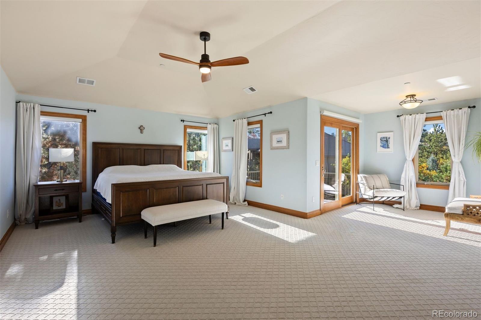 Modern Mountain Luxury in Castle Rock Private • Spacious • Stylish Surrounded by mature pines and thoughtful landscaping, this Castle Rock retreat embodies modern mountain luxury and timeless Colorado living. Formerly home to a Colorado Rockies professional baseball player, the residence offers an exceptional blend of sophistication, comfort, and design. Inside, plantation shutters, open-concept living spaces, and rich finishes create a warm and welcoming atmosphere. The kitchen and family room serve as the heart of the home, featuring updated appliances, an induction cooktop, and a new wine fridge, all opening to an expansive wraparound deck that captures breathtaking sunset views. The upper level hosts a serene primary suite with a private deck, spa-inspired bath, and generous walk-in closet. Three additional bedrooms each include ensuite baths and walk-in closets, ensuring privacy and comfort for family and guests. A main-floor office with a fireplace offers the perfect setting for quiet work or reflection. The finished walkout lower level extends the living space with a fifth bedroom, theater area, billiards space, gym, and additional office and flex room, ideal for entertaining and additional space. Recent updates include a new kitchen appliances, furnace, water heater, washer and dryer, and 1 air conditioner. A side-load three-car garage completes this exceptional property. Set within a tranquil enclave of Castle Rocks, Timber Canyon neighborhood, this home offers the rare opportunity to enjoy elevated living with a relaxed, modern mountain sensibility.