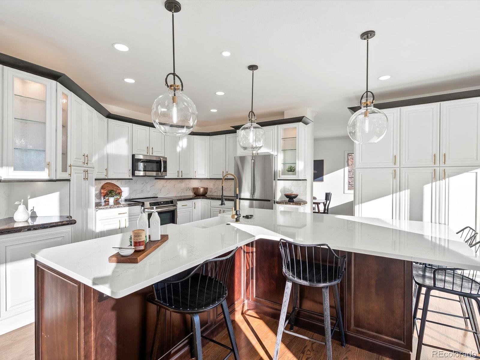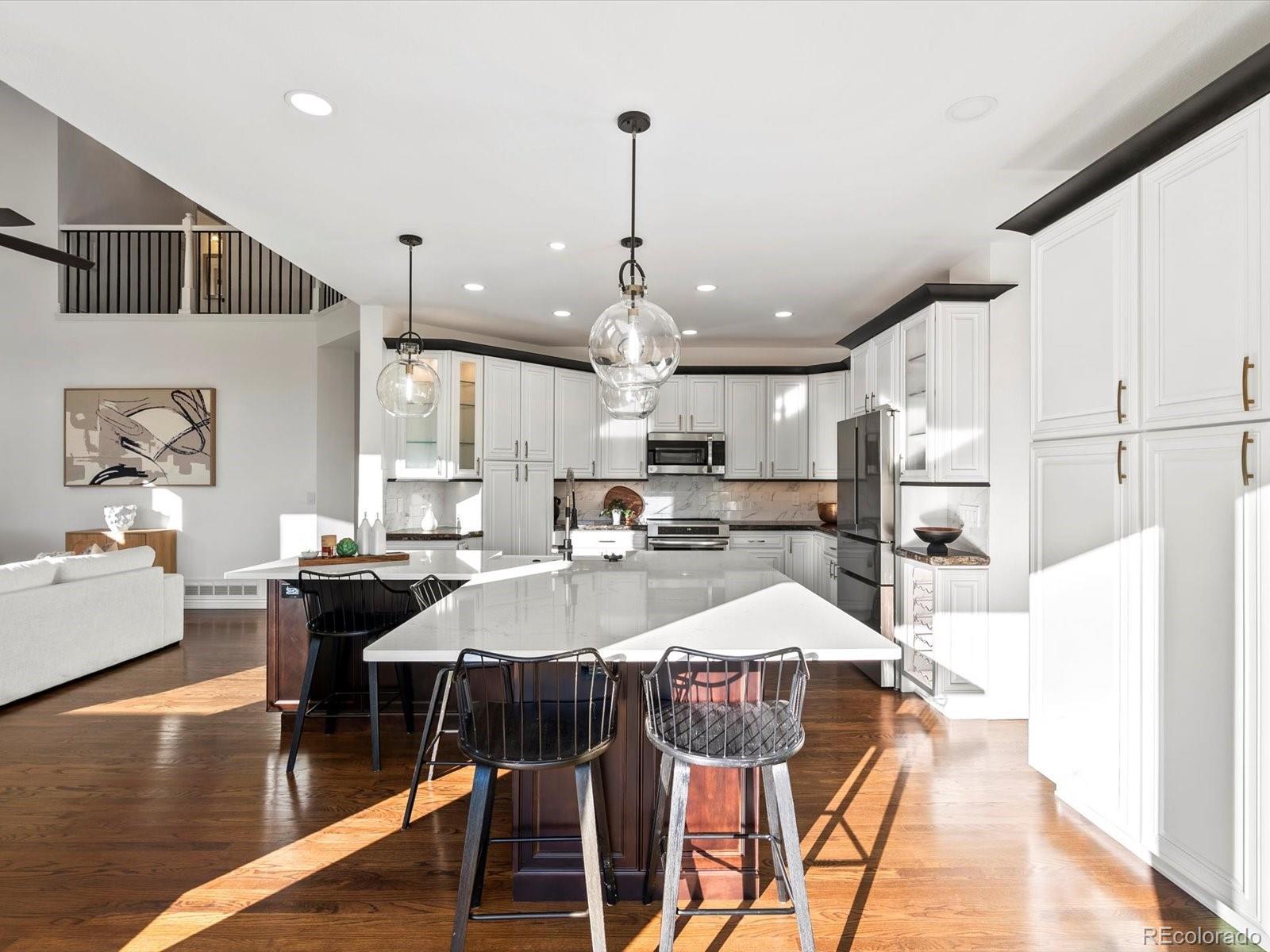 Nestled at the base of the foothills, 102 Willowleaf is ideally situated in the heart of desirable Ken Caryl Ranch Valley, where Colorado’s outdoor lifestyle truly comes alive. With quick access to C-470, downtown Denver, and world-class ski destinations, this location offers the perfect balance of convenience and nature. Surrounded by miles of hiking and biking trails, open space, and community amenities all within walking distance, this home invites an active, outdoor-centered way of life. Inside, the home is light, bright, and beautifully oriented, featuring a coveted south-facing driveway and living spaces that enjoy sunshine and warmth all day, year-round. The newly remodeled kitchen is the heart of the home, thoughtfully designed with an island beyond your dreams, a striking wall of pantry cabinetry and a wall of sliding glass doors that open to a deck spanning the back of the house—perfect for seamless indoor-outdoor living, entertaining, and relaxing against a backdrop of Colorado skies. Every detail reflects a connection to comfort, natural light, and lifestyle. This is a home that embraces the best of Colorado living—sun-filled days, outdoor adventure, and an exceptional foothills setting—all in the sought-after Ken Caryl Ranch The Valley.