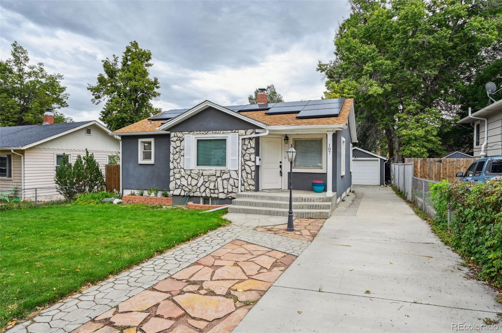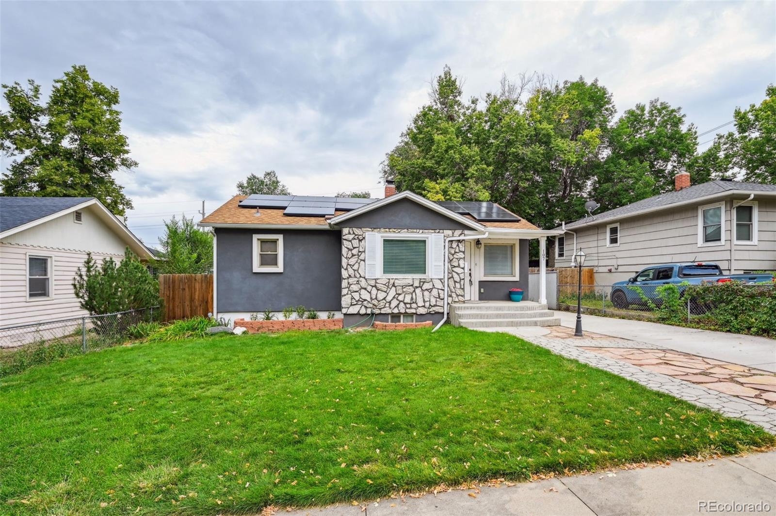 Charming ranch style home situated in a quiet neighborhood on the edge of downtown Colorado Springs. Open concept floor plan. Hardwood floors run throughout the main level. The kitchen has granite countertops, tile backsplash, and a gas stove. Soft close cabinets throughout the kitchen and both bathrooms. Two bedrooms on the main. The primary suite is located in the walk-out basement. It's the perfect set up for anyone wanting to add additional income by renting the lower level. Fully paid for solar panels help to offset the cost of utilities. No HOA. Conveniently located. It's a 2-minute walk to Memorial Park. Less than a 5-minute drive to Memorial Hospital or the Olympic Training Center. Just minutes from downtown business district. Less than a 20-minute commute to Peterson Space Force Base or Fort Carson. Easy Access to I-25.