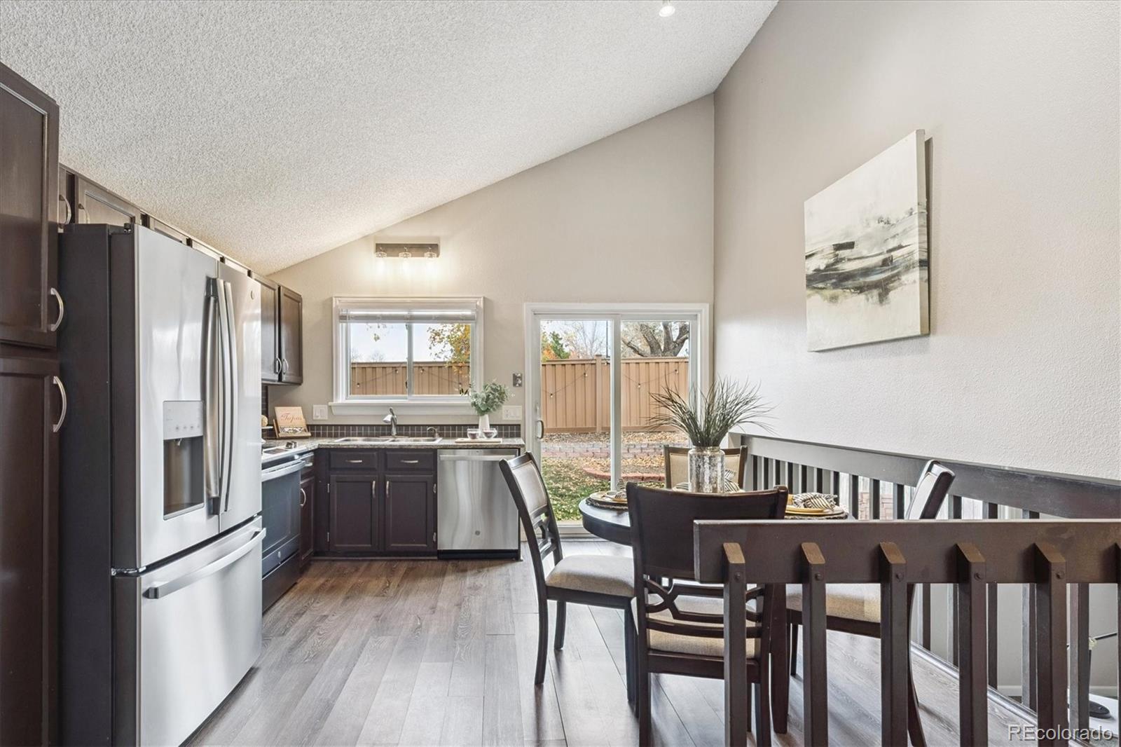 Welcome home to 699 Walden Court, a stunning 3-bedroom, 2-bath single family home that offers the perfect combination of modern comfort and timeless appeal. Nestled in a peaceful neighborhood, this home has been meticulously maintained and thoughtfully updated to provide true move-in readiness. From the moment you arrive, the low-maintenance xeriscape front yard and private courtyard invite you inside. In November 2024, the property received a new roof, gutters, downspouts, window screens, exterior paint, garage door, and LiftMaster opener—making this home completely turnkey. Step through the welcoming entryway where wood plank floors and abundant natural light create a warm and inviting atmosphere. The open floor plan seamlessly connects the living room and dining area to the spacious kitchen, which features vaulted ceilings, granite countertops, a electric range, stainless steel appliances, and plentiful cabinetry. Sliding glass doors lead to a large patio and private backyard oasis, perfect for entertaining or simply relaxing outdoors. Upstairs, you’ll find a tranquil primary bedroom with a walk-in closet, a comfortable second bedroom, and a beautifully remodeled full bathroom. Just a few steps down from the kitchen, the lower-level family room offers wonderful natural light from the garden-level windows, creating the ideal spot for casual gatherings or quiet evenings at home. This level also includes the laundry area, a third bedroom, and a stylish three-quarter bath, providing excellent flexibility for guests or a home office. The large two-car garage offers additional storage space and convenient access to the home. Ideally located near parks, schools, shopping, and major highways including C-470, I-25, and Highway 85, 699 Walden Court offers the perfect blend of peace, privacy, and convenience. Don’t miss the opportunity to own a property that truly has it all; quality, comfort, and convenience in one exceptional package.