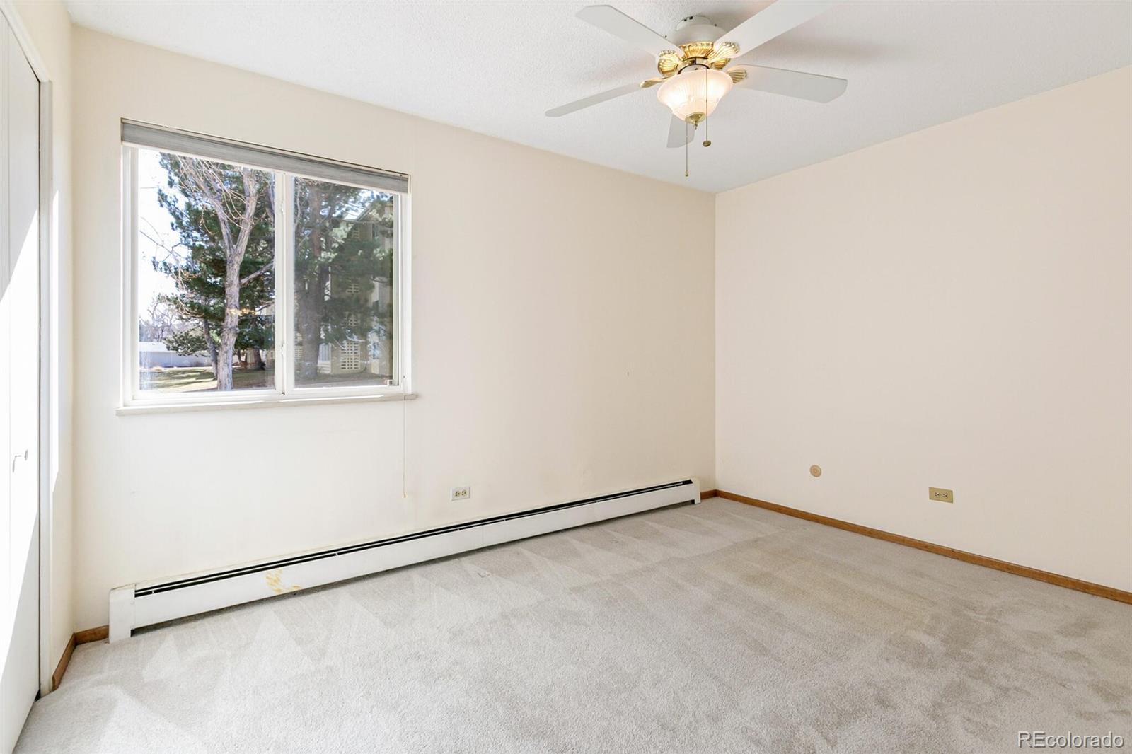 PRICED FOR IMMEDIATE SALE, check the comps. Welcome to Windsor Gardens, one of Denver's most desirable 55+ active lifestyle communities. Six acres of open space and nature trails. Unmatched amenities include: clubhouse, restaurant and bar, located in the clubhouse, a 9 hole golf course and a 10th hole outdoor patio for a bite to eat or a refreshing drink after the golf game. Additional amenities include: indoor and outdoor swimming pools, hot tub, sauna, fitness/weight room, shuffle board, bocci, tennis court, library, hobby room, Atrium with a ballroom and stage, off site storage for RV's and a place to garden. This 945 square foot end unit features 2 bed,1 bath and is waiting for you personal touches. Located on the first floor. A one car detached garage with a new garage door opener is included.****HOA dues include property taxes, heat, trash removal, recycling, water, sewer and exterior maintenance. Lock it and Leave or stay around and enjoy the vast array of activities that Windsor Gardens has to offer. OPEN HOUSE: Feb. 15, 2026 1:00-3:00
