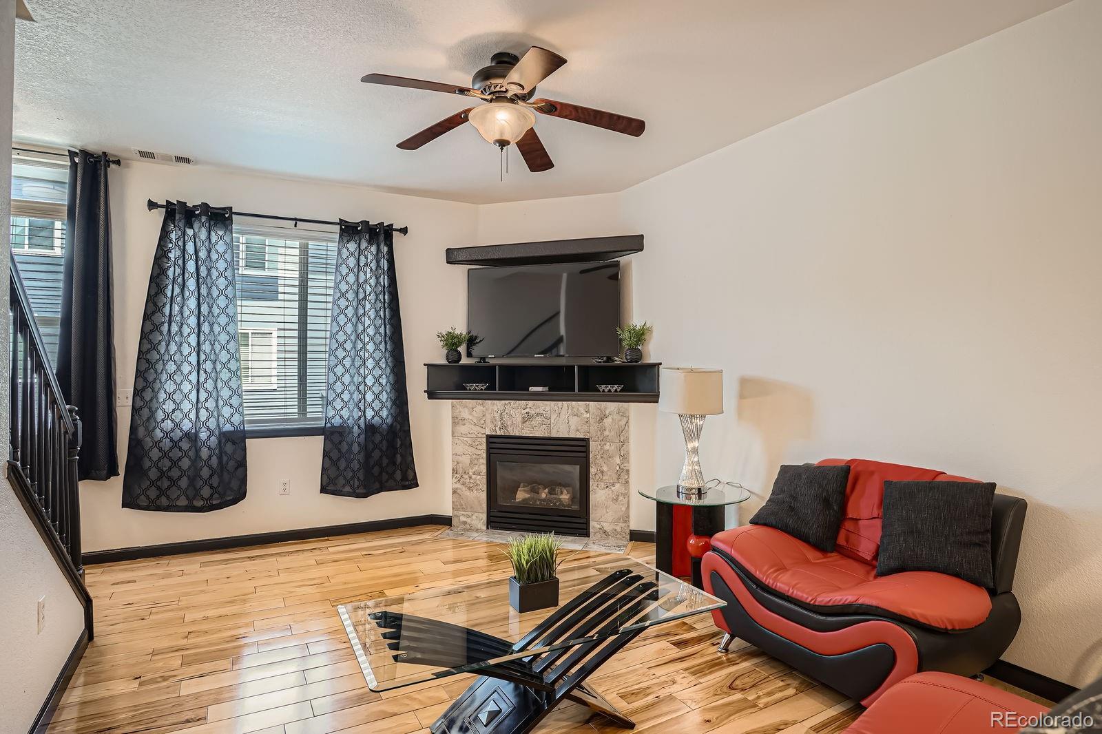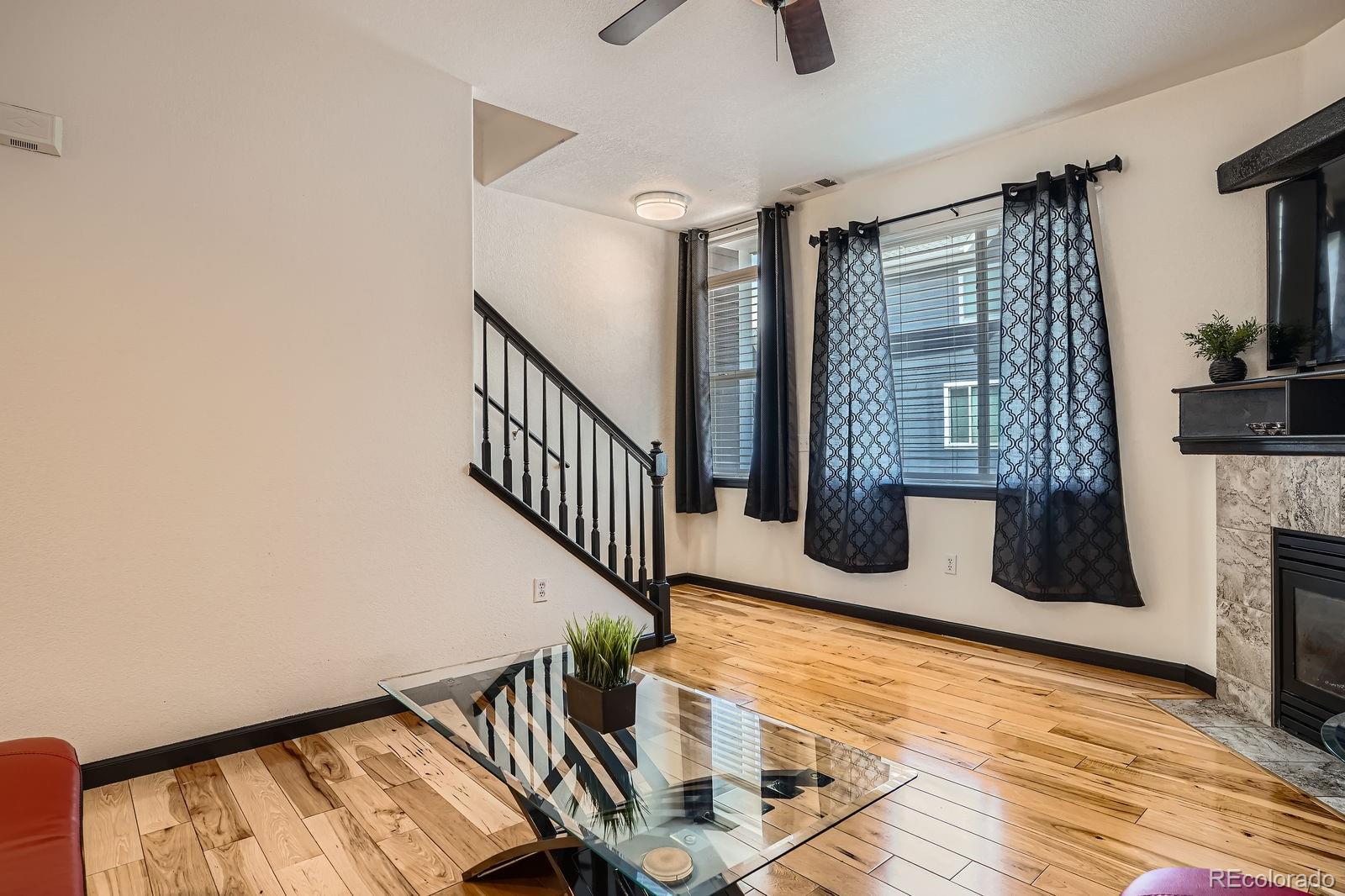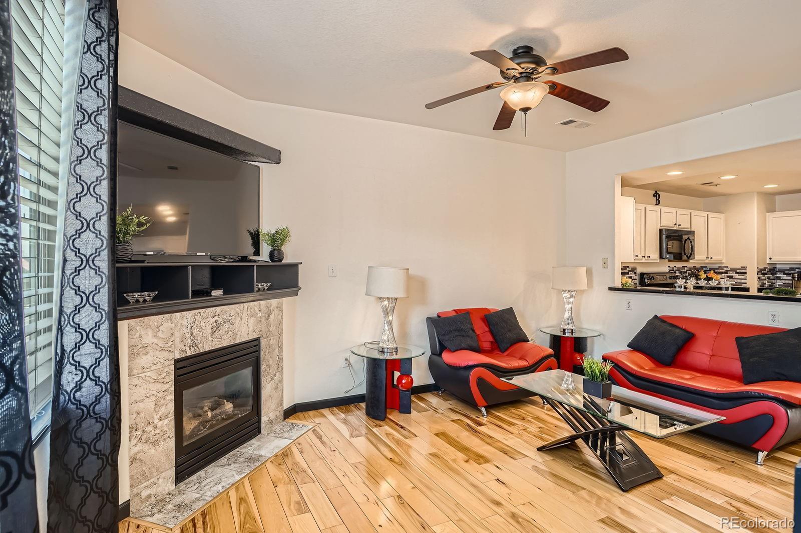 Stylish & Updated Thornton Townhome with Premium Finishes! Discover comfort and convenience in this beautifully updated Thornton townhome. Perfectly positioned near shopping, dining, and major commuter routes, this home blends thoughtful design with modern touches for easy living. Step inside to a bright and airy interior filled with natural light, high ceilings, and gleaming hardwood floors. The spacious living area features a cozy gas fireplace and flows seamlessly into the dining area and kitchen—ideal for both daily living and entertaining. The kitchen stands out with brand-new quartz countertops, freshly painted cabinetry with modern hardware, and newer stainless steel appliances. Just off the kitchen, enjoy your private balcony overlooking green space—perfect for relaxing mornings or evenings. Upstairs, you'll find two spacious primary suites, each with hardwood flooring, generous closet space, and beautifully updated en-suite bathrooms. A full-size laundry area is conveniently located on the upper level. The attached oversized garage offers incredible value with an epoxy-coated floor, bonus storage, and extra space for a workshop or gear. Additional recent upgrade includes a new water heater installed within the last 6 months. Set within the quiet, well-maintained Town Center Estates community, this home offers quick access to public transportation, parks, and I-25. Move-in ready and full of charm—schedule your tour today!