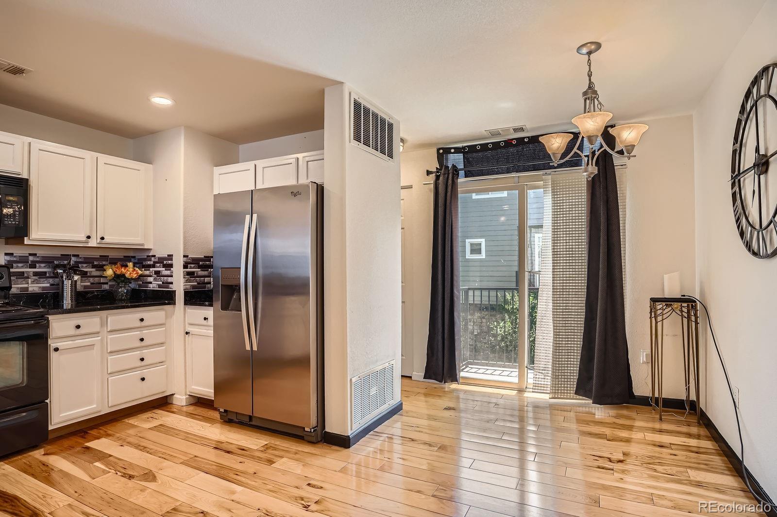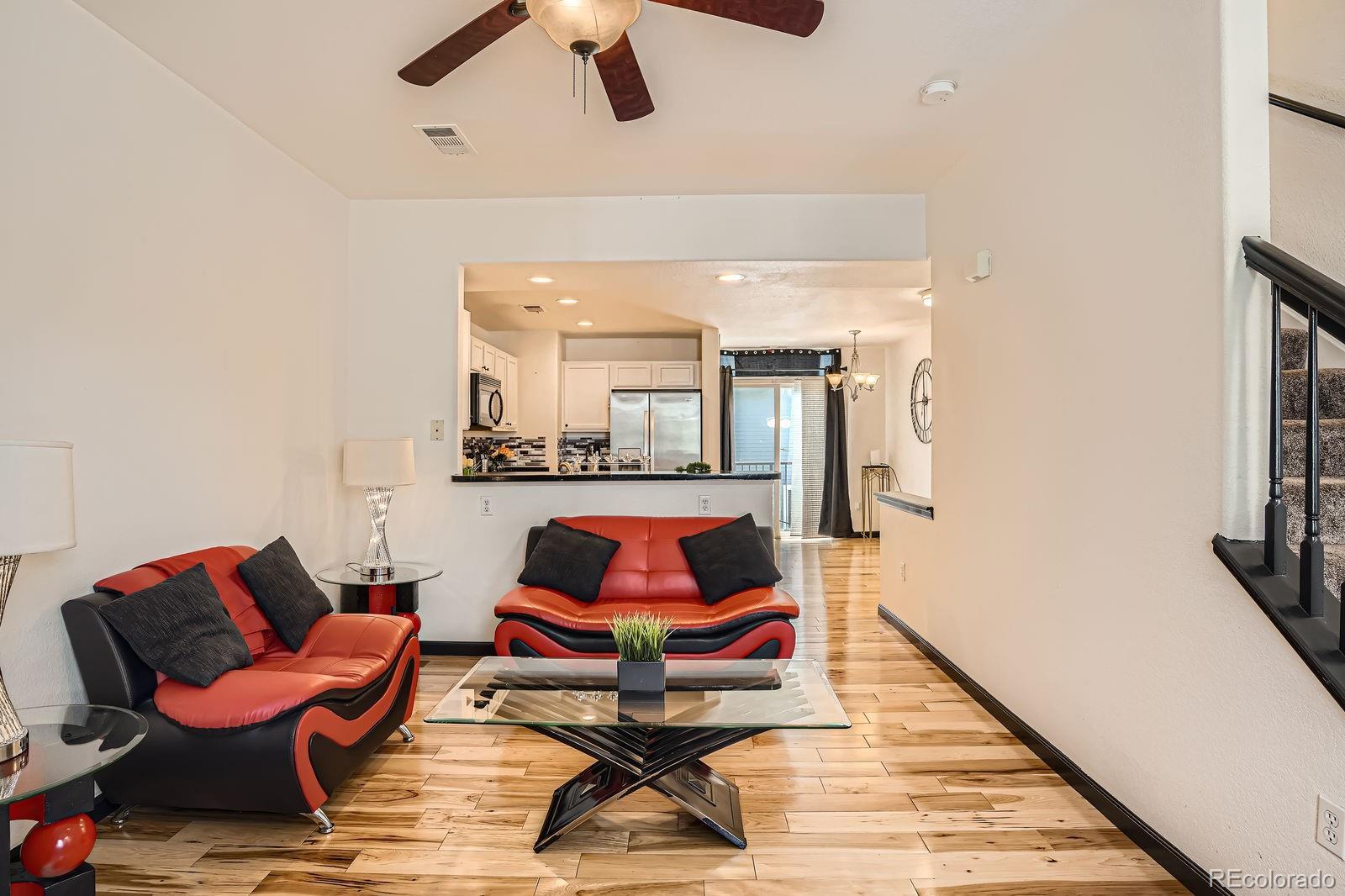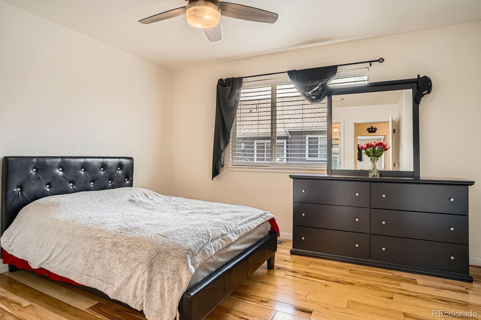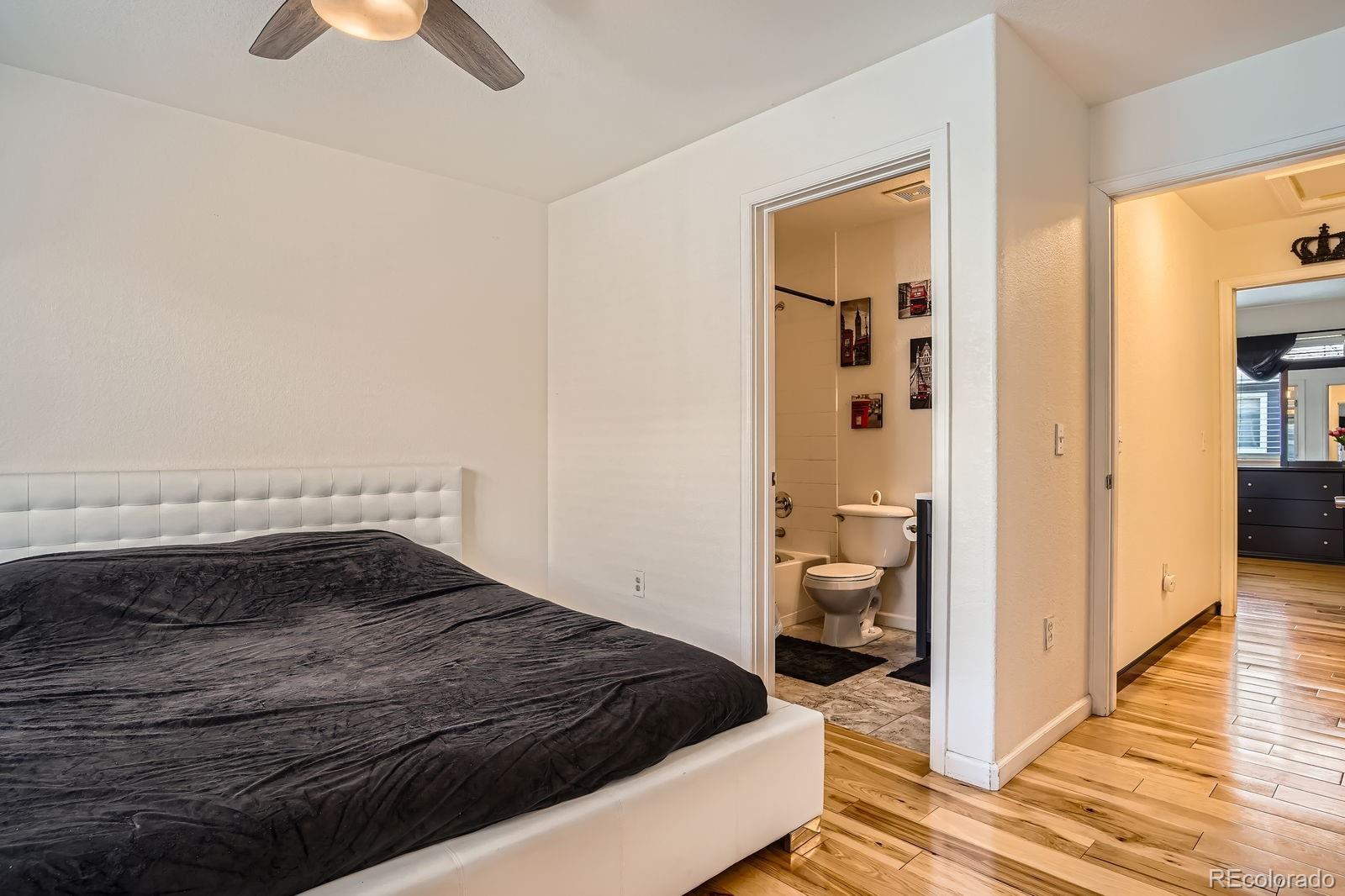 Stylish & Updated Thornton Townhome with Premium Finishes! Discover comfort and convenience in this beautifully updated Thornton townhome. Perfectly positioned near shopping, dining, and major commuter routes, this home blends thoughtful design with modern touches for easy living. Step inside to a bright and airy interior filled with natural light, high ceilings, and gleaming hardwood floors. The spacious living area features a cozy gas fireplace and flows seamlessly into the dining area and kitchen—ideal for both daily living and entertaining. The kitchen stands out with brand-new quartz countertops, freshly painted cabinetry with modern hardware, and newer stainless steel appliances. Just off the kitchen, enjoy your private balcony overlooking green space—perfect for relaxing mornings or evenings. Upstairs, you'll find two spacious primary suites, each with hardwood flooring, generous closet space, and beautifully updated en-suite bathrooms. A full-size laundry area is conveniently located on the upper level. The attached oversized garage offers incredible value with an epoxy-coated floor, bonus storage, and extra space for a workshop or gear. Additional recent upgrade includes a new water heater installed within the last 6 months. Set within the quiet, well-maintained Town Center Estates community, this home offers quick access to public transportation, parks, and I-25. Move-in ready and full of charm—schedule your tour today!