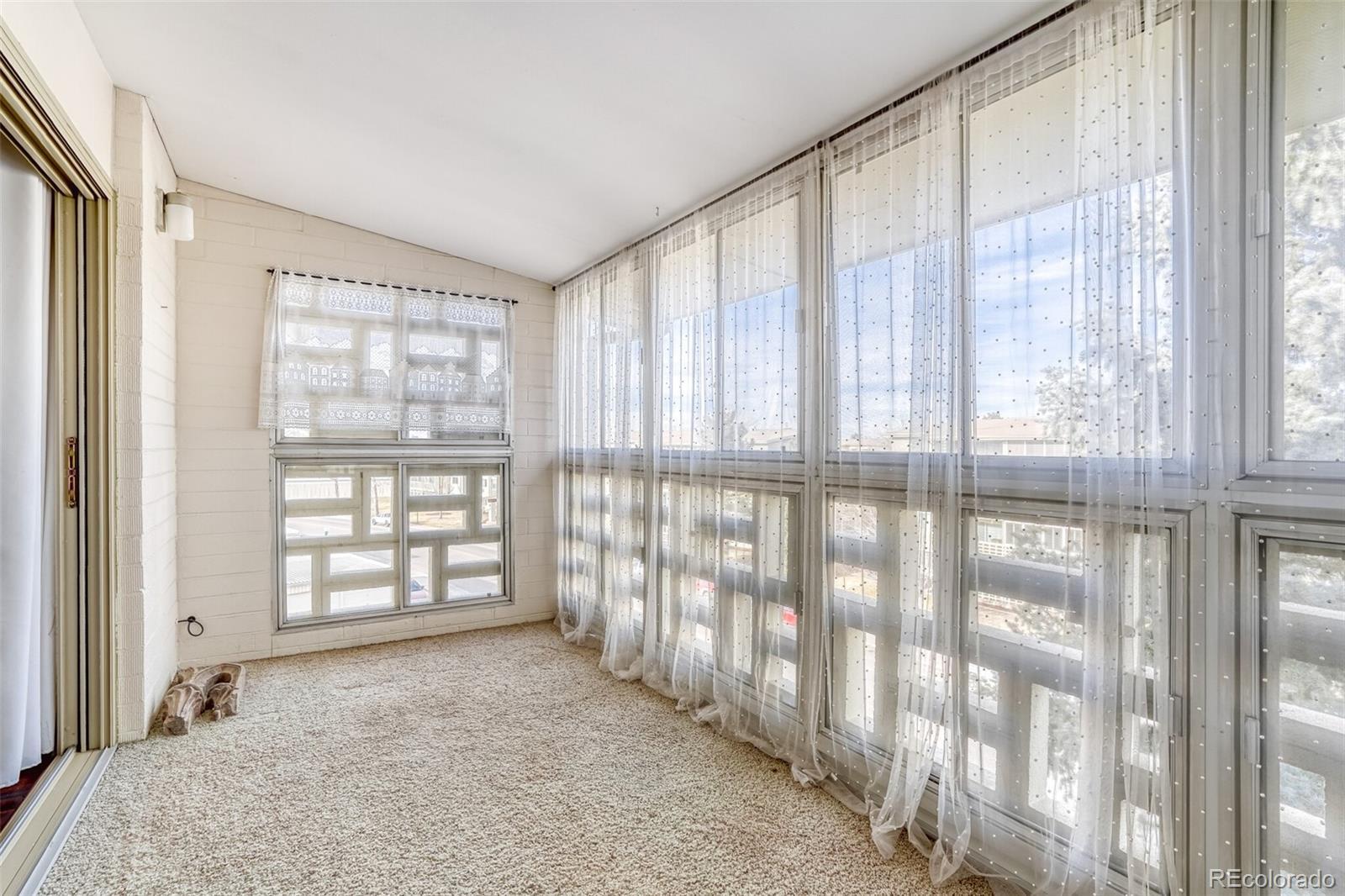 Welcome home to Windsor Gardens, Denver’s premier 55+ active adult community! This spectacular penthouse-level, remodeled 2-bedroom, 1-bath residence offers 945 square feet of beautifully updated living space in a prime location around the corner from the clubhouse — complete with a detached garage * It's an End Unit (with a wonderful cross breeze) * The redesigned kitchen is truly the heart of the home, featuring custom cabinetry, granite countertops, subway tile backsplash, under-cabinet lighting, and new stainless steel appliances * A bright, upgraded lighting package and stylish mono-tone color scheme complement the durable water-resistant, wood-look vinyl flooring throughout * The bathroom showcases custom tile work, with extensive plumbing upgrades include new shut-off valves and shower valves * Both bedrooms offer ceiling fans, blinds, and window coverings for added comfort * A newer A/C wall unit help keep the home cool during warm summer months * Relax year-round in the north-facing enclosed lanai, complete with a new sliding door, electric fireplace, and heating element — the perfect spot to enjoy your morning coffee * The monthly HOA fee includes property taxes (paid by the Association), heat, water, sewer, grounds maintenance, building insurance including roof, and more. Residents are responsible for electricity, cable, WiFi, and phone. The garage is just out the end of the building in LOT 12, garage is #141 * Life at Windsor Gardens means resort-style amenities including a golf course and pro shop, restaurant, indoor and outdoor pools, fitness center, auditorium, 24/7 community patrol, community center, billiards parlor, library, art studios, meeting rooms, woodworking shop, and countless social activities * Conveniently located near Lowry, grocery stores, restaurants, retail shopping and Cherry Creek Mall * This vibrant community offers an exceptional opportunity to enjoy low-maintenance living in one of Denver’s most sought-after 55+ neighborhoods.