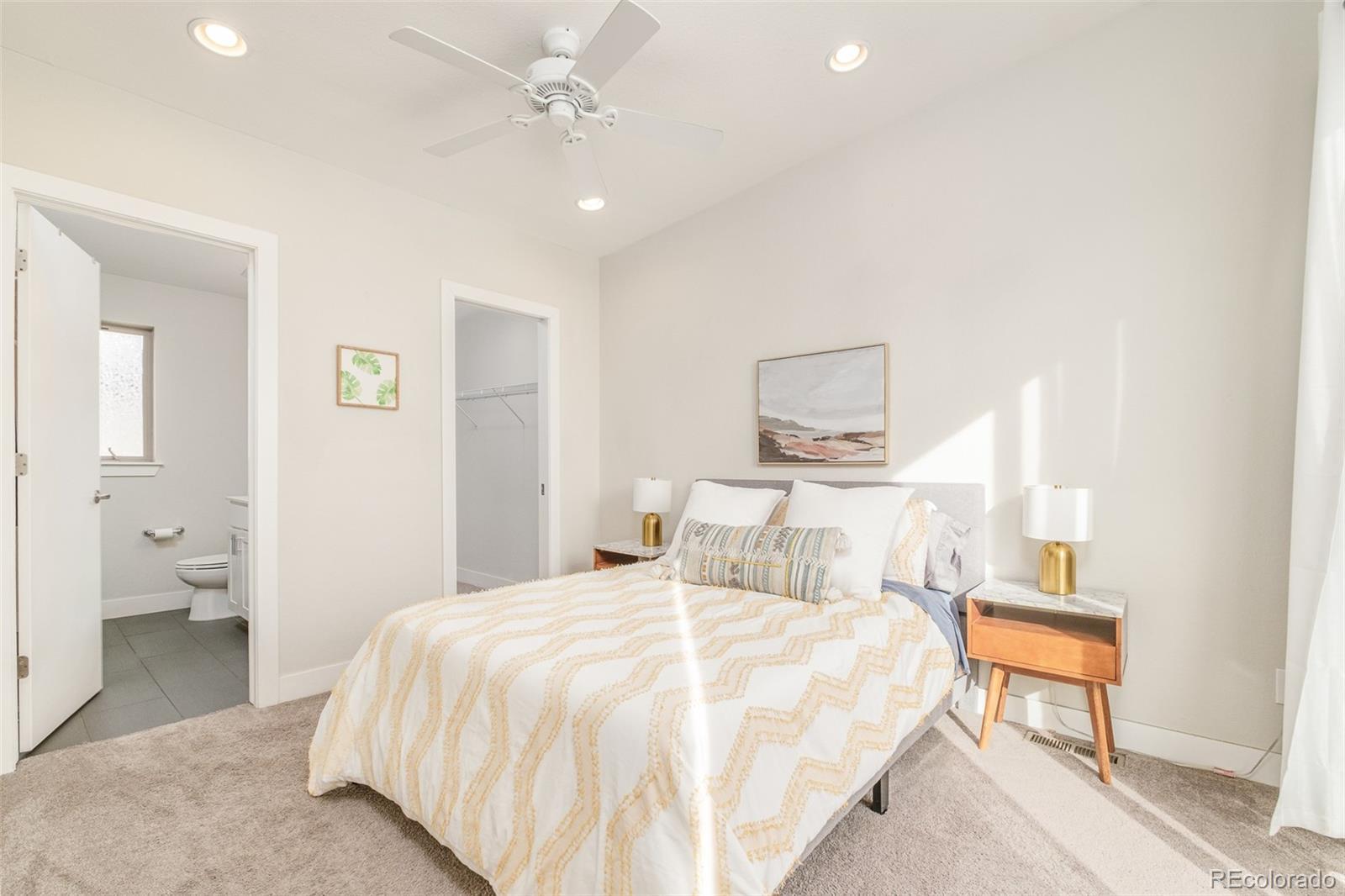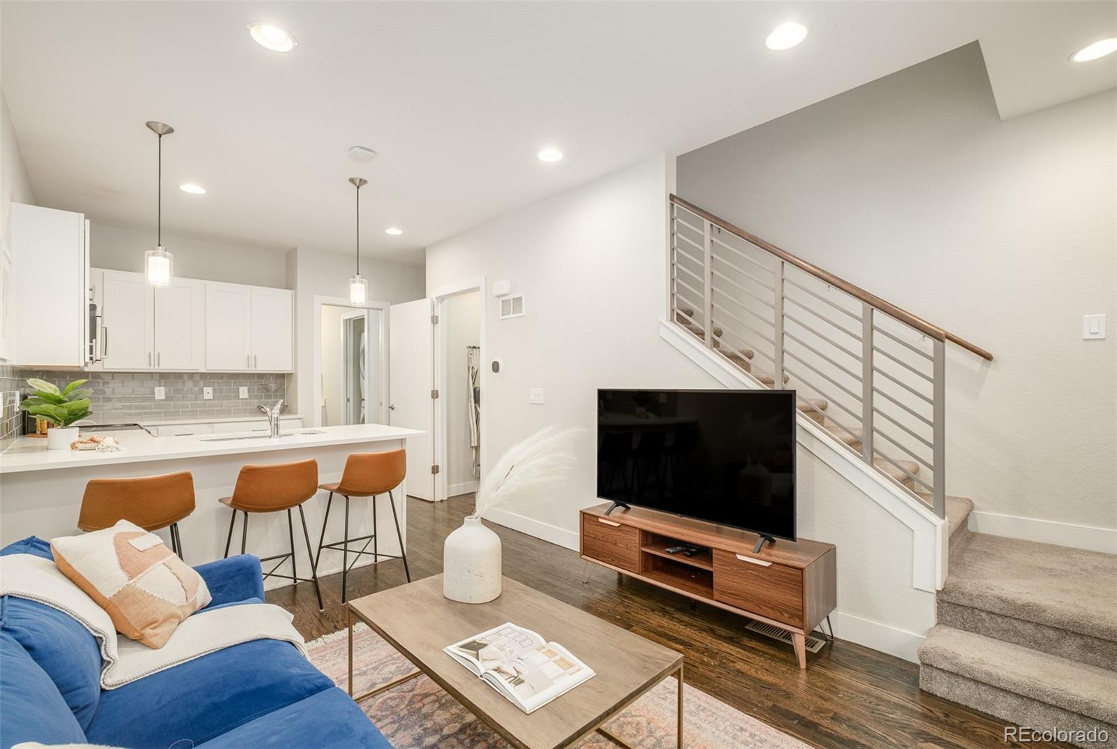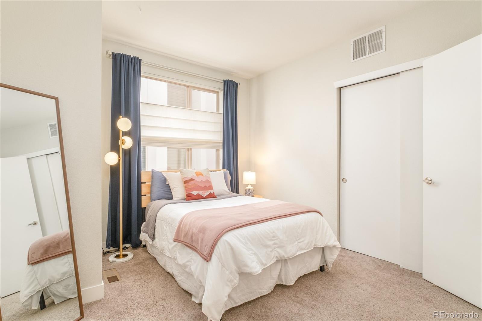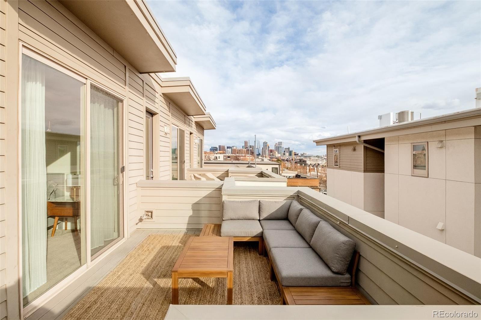 Elevated urban living meets effortless convenience in this stylish Jefferson Park townhome. Ideally located on a quiet street, moments from LoHi, Sloan's Lake and Downtown Denver, this residence is designed for a modern lifestyle. An inviting living area flows into a bright, modern kitchen featuring soft-close cabinetry, a subway tile backsplash, peninsula seating beneath pendant lighting and premium Bosch and KitchenAid appliances, including a new refrigerator. Upstairs on the second level, a bedroom offers space for guests as well as a spacious open area with chic wallpaper. This open area can flex from the perfect work-from-home area to a home gym or potential third non-conforming bedroom. On the third level, the primary suite boasts a walk-in closet, double-vanity bath and a large shower. It also offers indoor/outdoor living with direct access to a private rooftop deck. Thoughtful details throughout enhance daily living, such as top-down bottom-up blinds and abundant storage, including a large bonus space off the garage that's perfect for outdoor gear, etc. Enjoy the added convenience of the attached one-car garage. Matterport Tour: https://my.matterport.com/show?m=D75yX3zpemB