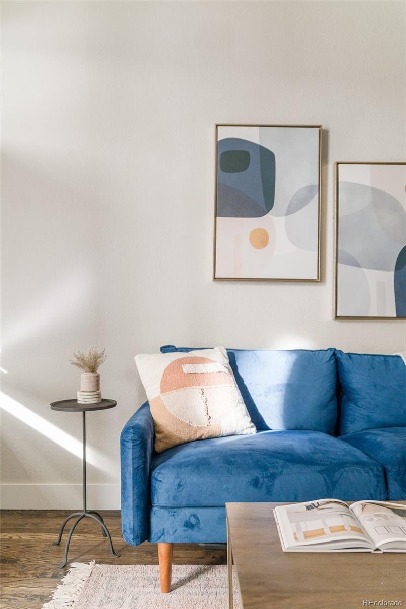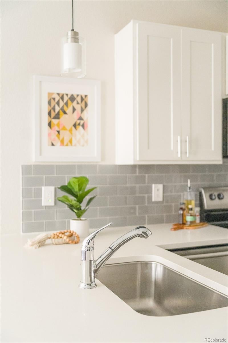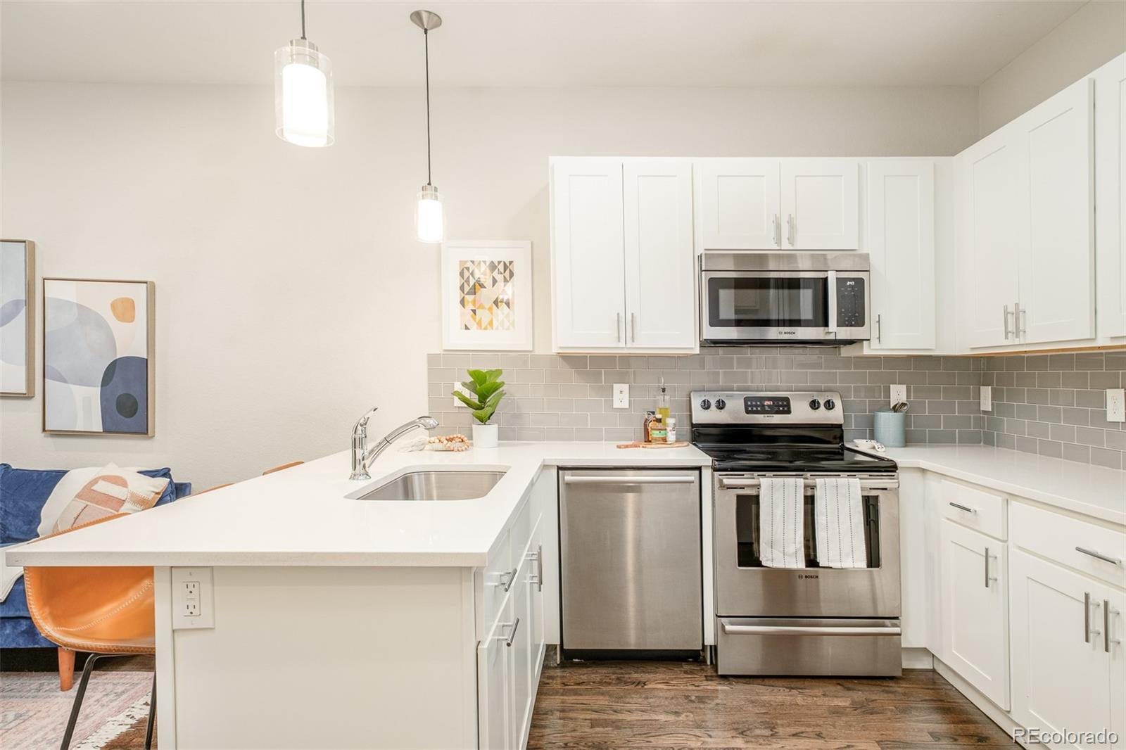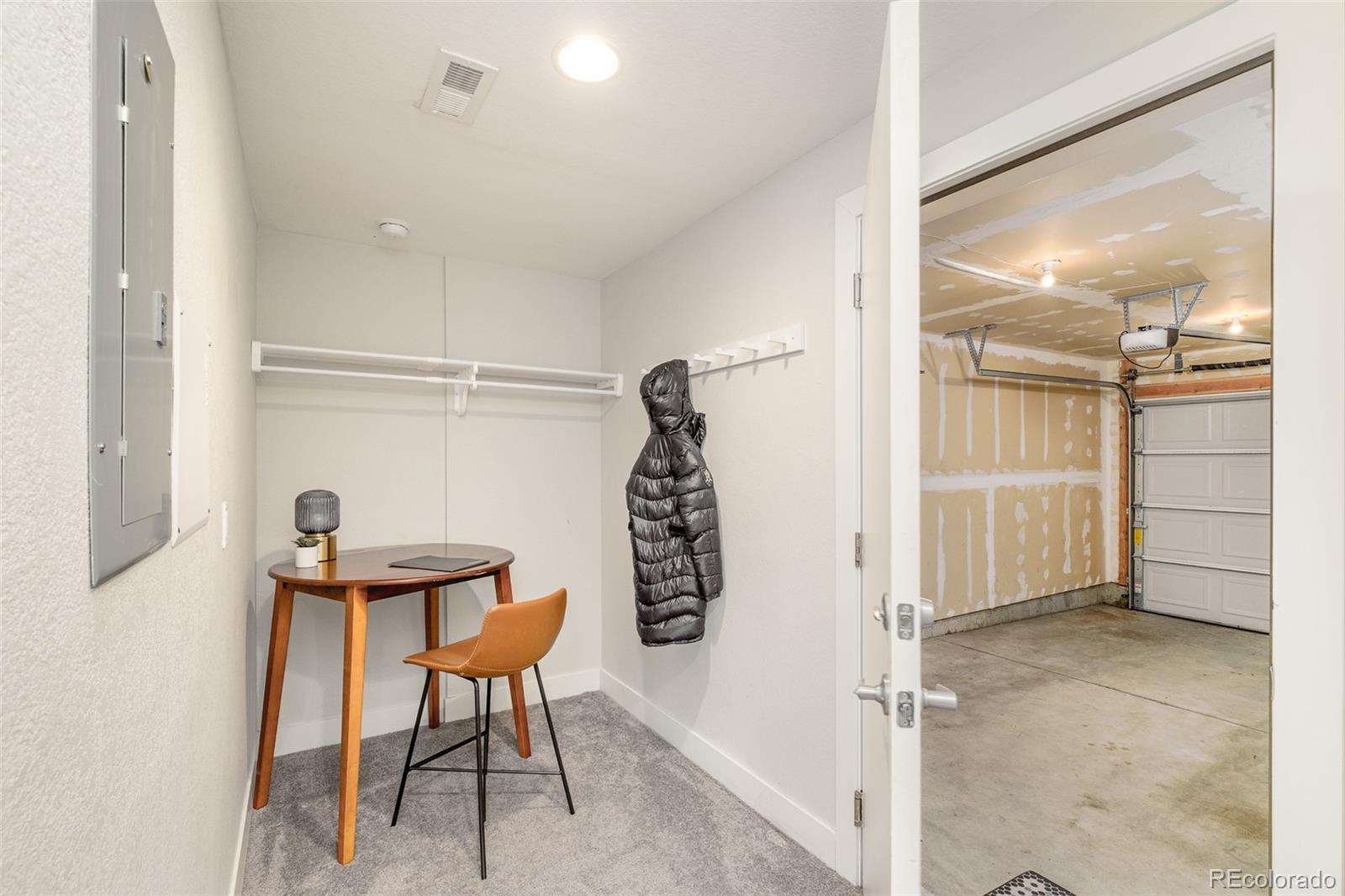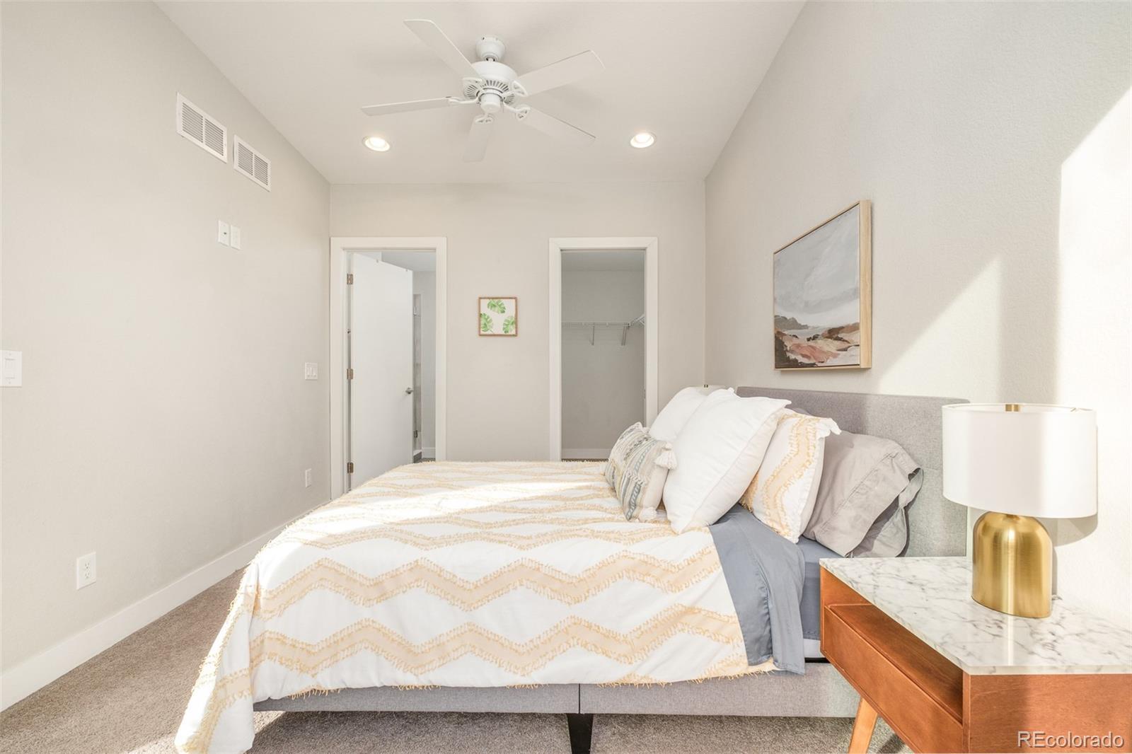 Elevated urban living meets effortless convenience in this stylish Jefferson Park townhome. Ideally located on a quiet street, moments from LoHi, Sloan's Lake and Downtown Denver, this residence is designed for a modern lifestyle. An inviting living area flows into a bright, modern kitchen featuring soft-close cabinetry, a subway tile backsplash, peninsula seating beneath pendant lighting and premium Bosch and KitchenAid appliances, including a new refrigerator. Upstairs on the second level, a bedroom offers space for guests as well as a spacious open area with chic wallpaper. This open area can flex from the perfect work-from-home area to a home gym or potential third non-conforming bedroom. On the third level, the primary suite boasts a walk-in closet, double-vanity bath and a large shower. It also offers indoor/outdoor living with direct access to a private rooftop deck. Thoughtful details throughout enhance daily living, such as top-down bottom-up blinds and abundant storage, including a large bonus space off the garage that's perfect for outdoor gear, etc. Enjoy the added convenience of the attached one-car garage. Matterport Tour: https://my.matterport.com/show?m=D75yX3zpemB