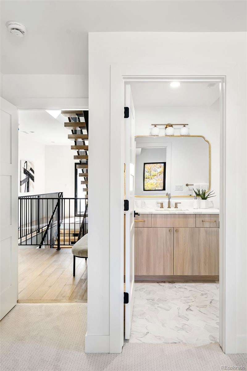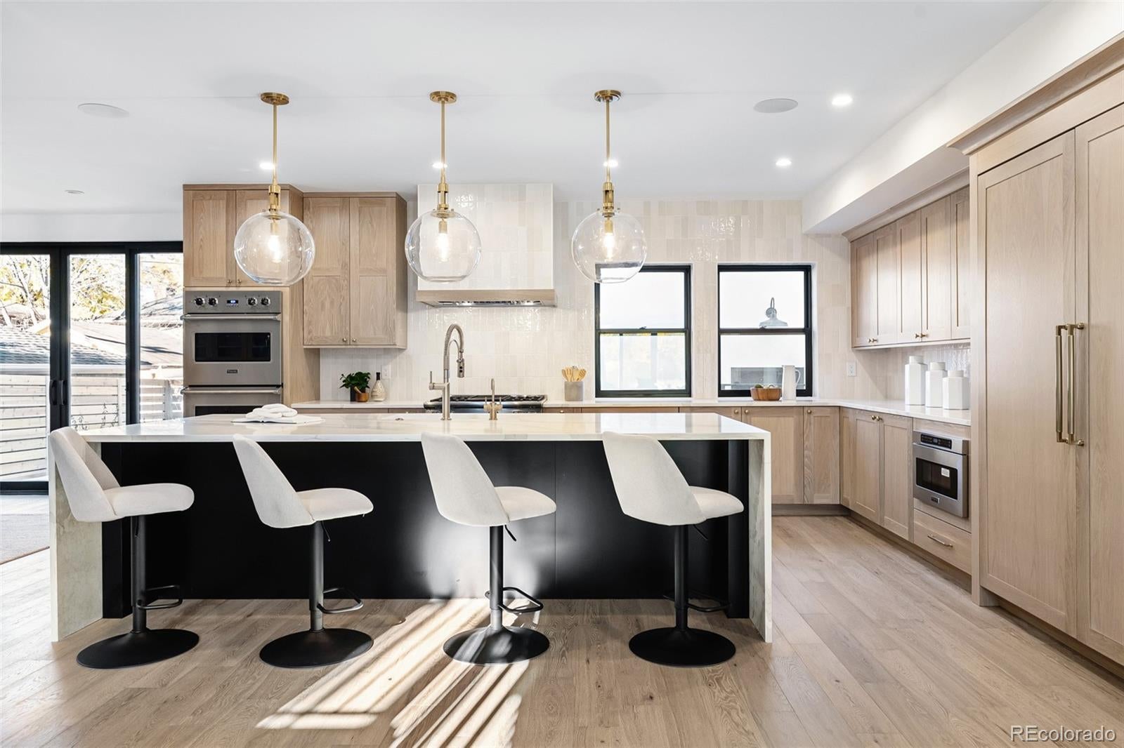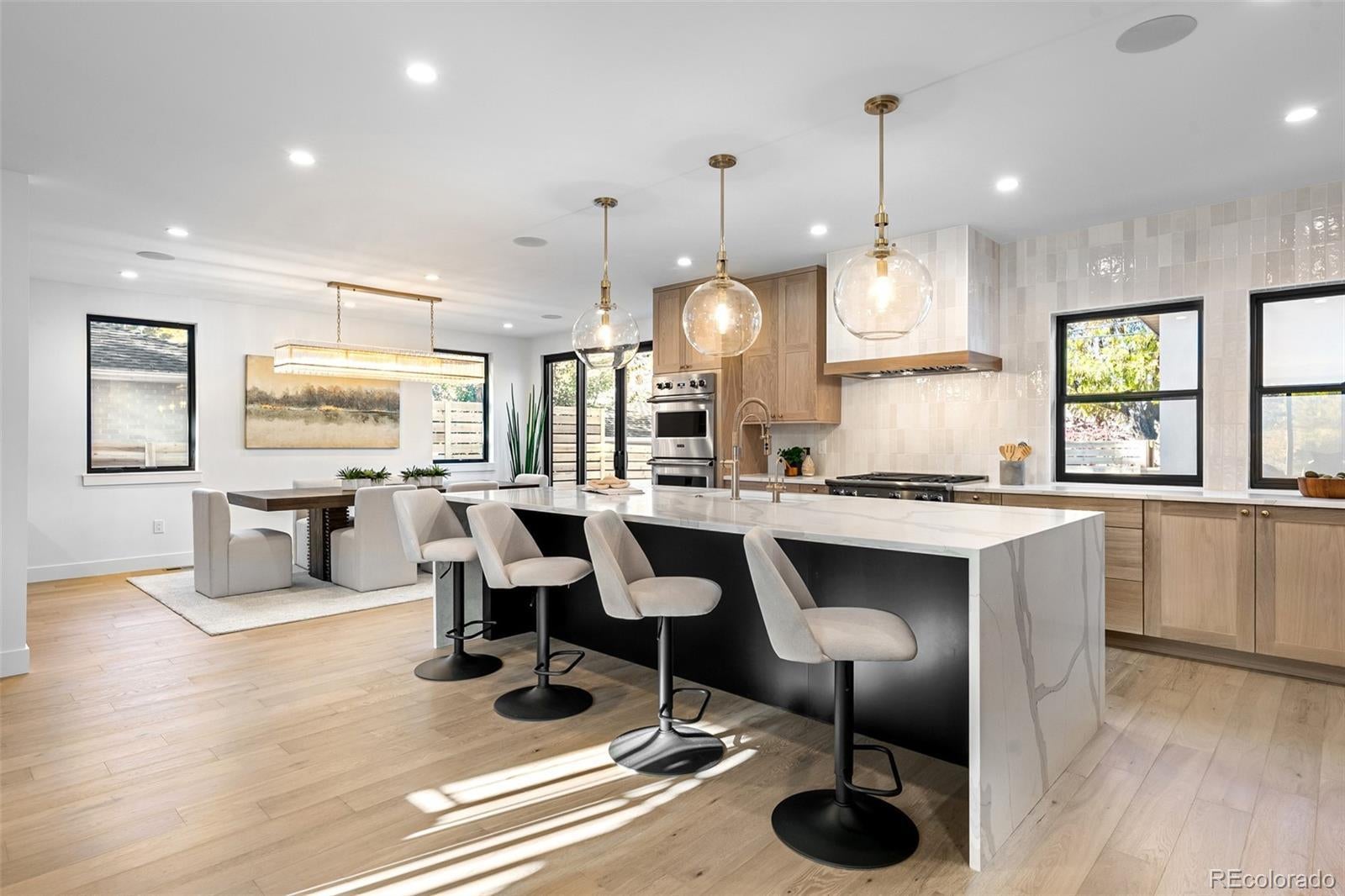 Experience elevated modern living in this newly built Lux Builders residence set in coveted Bonnie Brae. Refined craftsmanship and sophisticated design define this home, where a contemporary façade and covered front porch welcome residents inward. Sun-filled, open-concept living flows effortlessly between the chef’s kitchen — flaunting Viking appliances, a built-in icemaker and custom cabinetry — and a sophisticated dining and living area anchored by a sleek fireplace and built-ins. Sliding doors extend the space outdoors to a large patio. Upstairs, a serene primary suite boasts dual California Closets walk-in closets and a spa-inspired bath with a soaking tub and frameless glass shower, complemented by two additional bedrooms and a laundry room. The lower level offers a spacious rec room, fitness room and guest suite. A detached EV-ready garage, home office with built-ins, composite rooftop deck with mountain views and a newly landscaped, fenced yard complete this modern masterpiece.