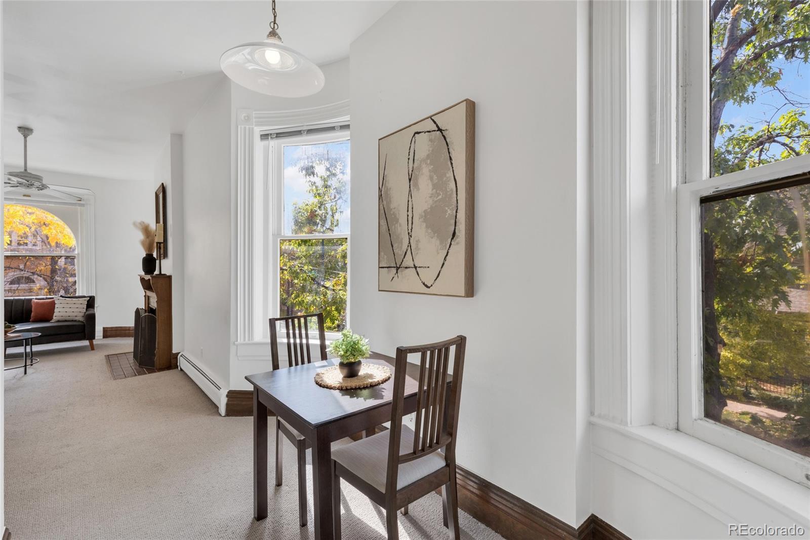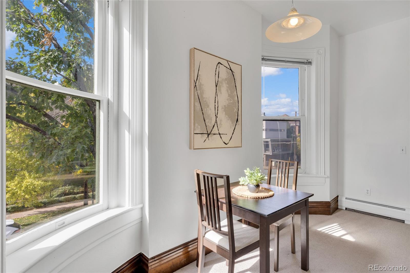 Welcome to classic Uptown living—where historic charm, timeless architecture, and walkable city life converge in a luminous corner-unit home. Set within a beautifully preserved 1890s building in Denver’s North Capitol Hill Historic District, this inviting one bedroom condo is filled with natural light, character, and the distinctive details that make Denver’s early architecture so special. Step inside to discover tall ceilings, oversized arched windows, and intricate woodwork and trim that showcase the craftsmanship of the era. Every space feels bright and welcoming—from the comfortable living area to the efficient kitchen and spacious bedroom—all wrapped in the authentic character of a true historic residence. Enjoy morning coffee or evening sunsets from your private balcony, framed by leafy neighborhood views and mature trees. Although The Grafton is known as a historic landmark it still offers an impressive list of amenities rarely found in a building of this vintage: a private storage locker, shared laundry room, full gym/fitness area, dedicated bike storage room, and a highly desirable gated parking lot with an assigned parking space just steps from the door. Residents also enjoy a community picnic area, firepit, and beautifully maintained outdoor spaces perfect for socializing or relaxing. The HOA covers water, gas, trash/recycling, snow removal, and exterior/building maintenance for low-maintenance living. All of this is set in the heart of Uptown Denver, just moments from Marczyk Fine Foods, Watercourse Foods, Stoney's Uptown Joint, Hearth, Olive & Finch, Hamburger Mary's and countless other cafés, shops, and parks. With its tree-lined streets, architectural character, and connected neighborhood feel, this condo captures the best of Denver’s historic charm and city convenience—the perfect place to write your next chapter. Welcome Home!