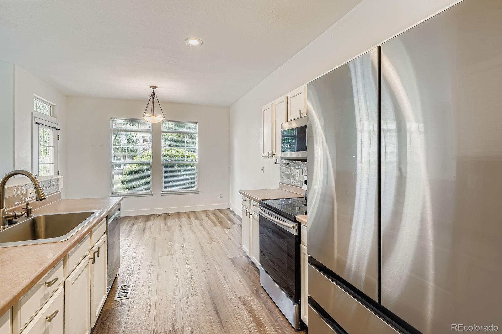 Beautifully Updated End-Unit Townhome Backing to Green Space Welcome to this exceptional two-story townhome, offering a private ground-level entrance and a spacious, thoughtfully designed layout. Featuring 3 bedrooms, 3 bathrooms, and an attached 2-car garage, this rare end-unit provides both comfort and convenience. Inside, you'll find modern flooring throughout, sleek stainless steel appliances, a luxurious soaking tub, and a custom reworked handrail—just a few of the many tasteful upgrades that set this home apart. Enjoy your morning coffee or evening unwind on the private patio, surrounded by serene views. Tucked away in a quiet corner of the community, this home backs to lush green space with direct access to scenic hiking trails, all while remaining conveniently removed from main road traffic.