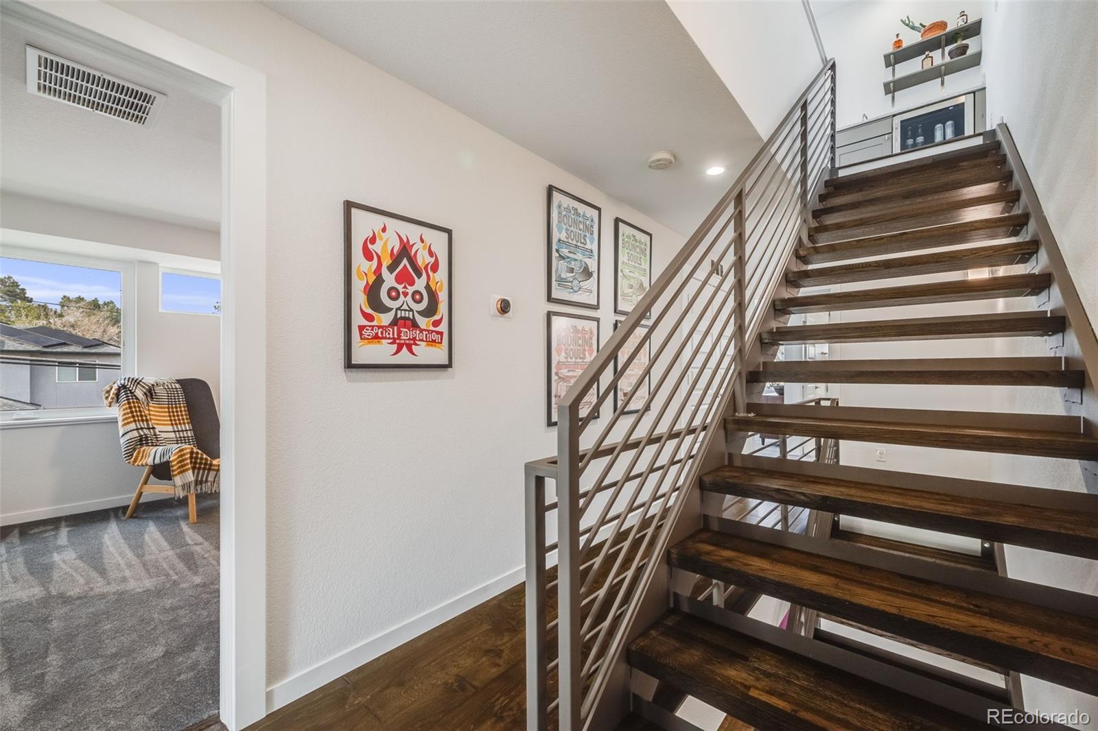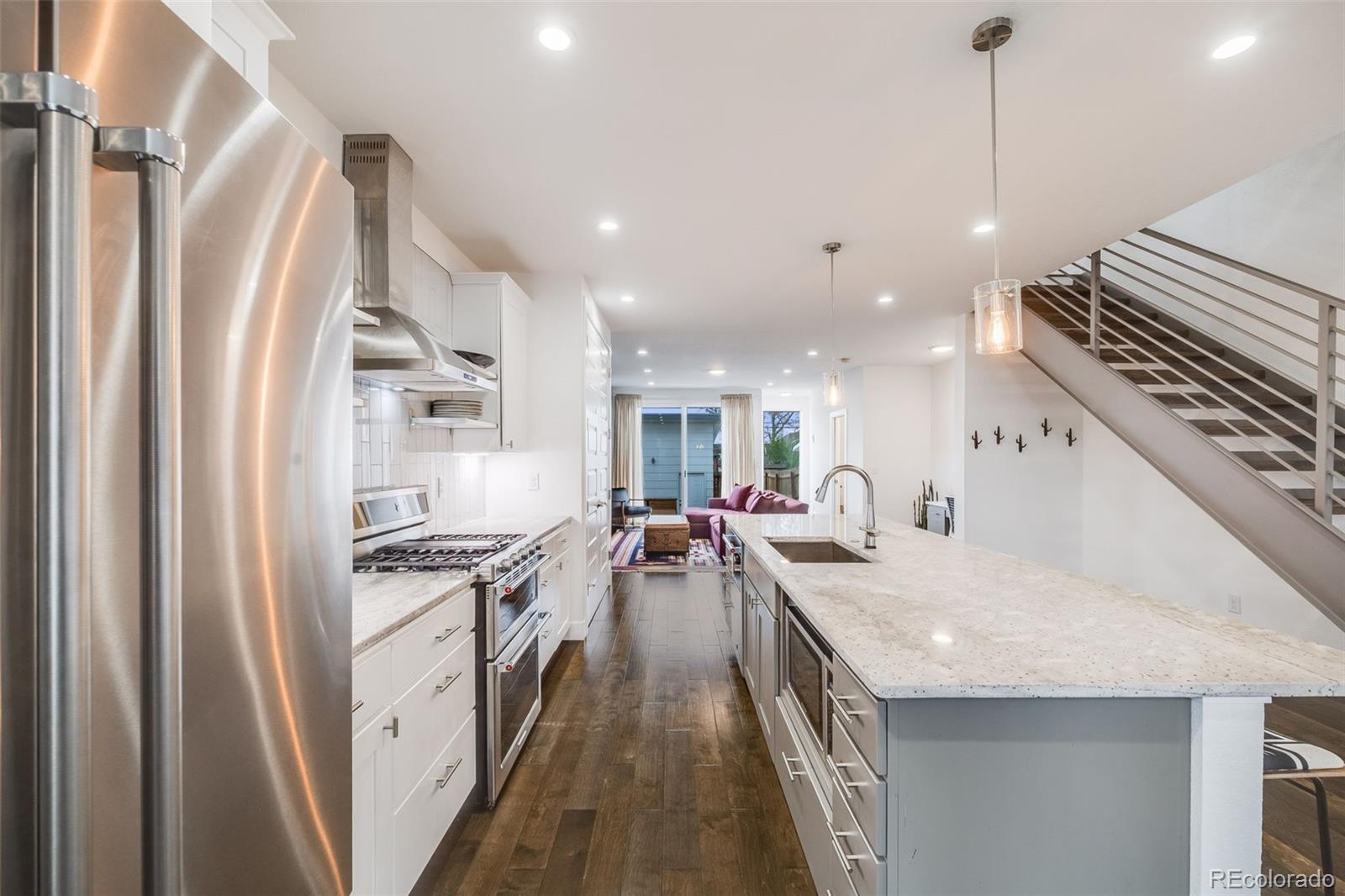 Corner Lot Cool in the Heart of Sunnyside! This one has all the vibes. Welcome to your dream 3-bed, 3.5-bath duplex, sitting pretty on an oversized corner lot in one of Denver’s most energetic neighborhoods. With 2,317 sq ft spread across three thoughtfully designed levels, this home checks all the boxes for stylish, comfortable, and functional living. The open-concept main floor was made for hosting—gather around the quartz-topped island, cook like a pro with KitchenAid stainless steel appliances, and dine under a sparkling crystal chandelier that throws rainbows at golden hour. The bold black Zellige-tiled fireplace and locally sourced wood mantel create a cozy yet modern living space flooded with natural light. Smart home upgrades (Lutron lights, Nest, keypad entry, wi-fi garage) bring high-tech ease to everyday life. Upstairs, your primary suite feels like a private escape with a walk-in closet, radiant heat floors in the bath, and sunrise views from the spa-like shower. Two more bedrooms and a full bath give everyone space to spread out. The top floor flex space is where the fun happens—complete with wet bar, powder bath, and east-facing deck that’s perfect for sunrise coffee, sunset cocktails, or fireworks views. Out back, you’ll find a fully fenced yard with a built-in planter system, extended deck + patio, and an oversized 2-car garage with extra room for bikes, skis, and more. All this just blocks from Sunnyside’s best—Huckleberry Roasters, Wildflower, Chubby’s, and more. From front-door brunch runs to backyard hangs, this home brings the good life to your doorstep. Come see why you’ll love living here.