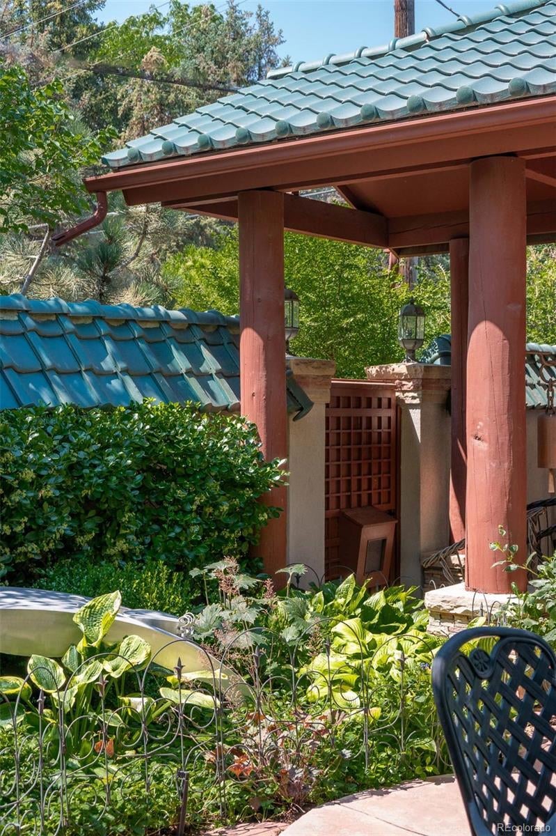 Extraordinary property alert! Elegance and warmth with a luscious Asian flair will beguile you in this iconic Denver Country Club home. A gated hidden gem tucked behind high privacy walls, it was designed in a tranquil Japanese style by noted architect, Ken Taniguchi. Incredibly quiet and secluded feeling, yet it sits just a heartbeat away from Cherry Creek’s premier dining, boutiques, and art galleries. This truly top-notch location suggests a perfect Cherry Creek alternative, just out of the fray. Inside, the graceful contemporary architecture and large comfortable spaces create gorgeous settings for entertaining and daily living. A serene and welcoming Foyer opens to expansive Living and Dining Rooms, flowing to a wonderful chef's Kitchen with five burner gas range, large pantry, and exquisite custom cabinetry. A perfect private office with a bar, and a delightful Library/Den for relaxing round out the first level. Upstairs, a grand, sunny, and zen-like Primary Suite, and a second Bedroom Suite, both with private decks and absolutely fabulous walk-in closets. Skylights and large windows fill every room with natural light, enhancing the home’s calming energy. Downstairs, a marvelous Family/Entertainment Room, mirrored Exercise Room, and impressive Wine Room add everything you could wish for in a home. Outdoors, discover a magical secret garden, peaceful patios, and multiple decks designed for intimate gatherings and quiet reflection, without the upkeep of a yard. With its imported Japanese porcelain tile roof, rich hardwood floors, and new carpet and paint throughout, this residence is a remarkable balance of aesthetic beauty, privacy, and livable sophistication. A rare and extraordinary opportunity in one of Denver’s most coveted neighborhoods.