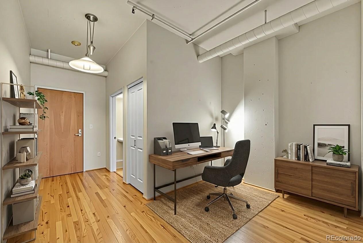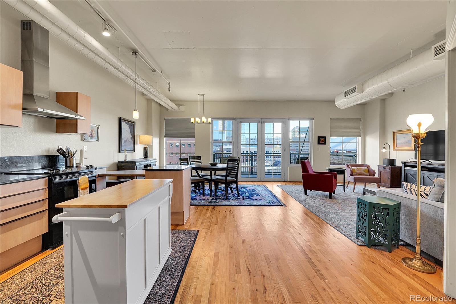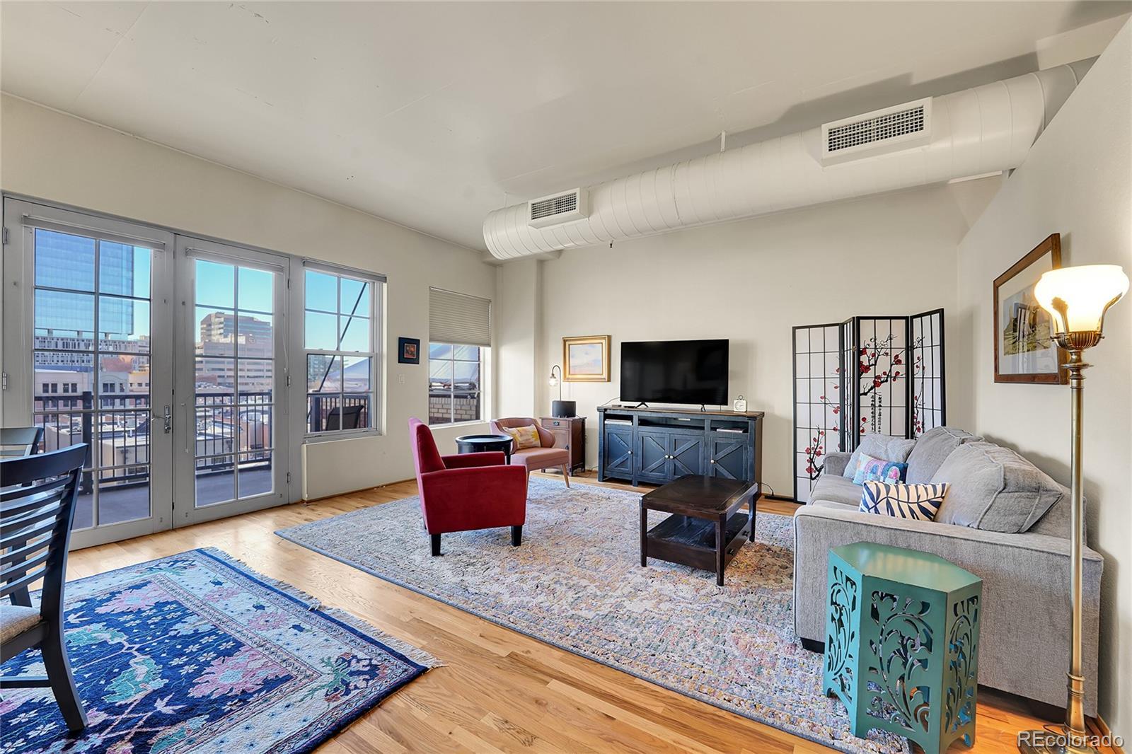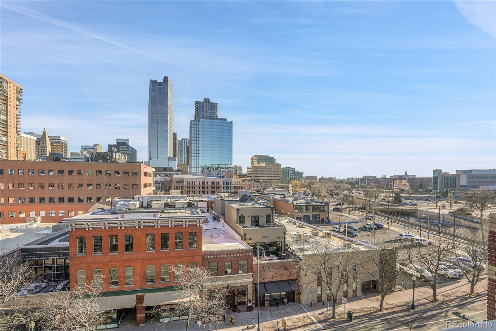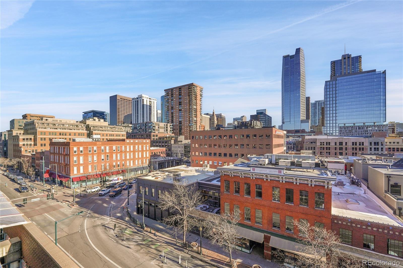 Downtown Denver Loft Living at Palace Lofts! This meticulously maintained 1-bedroom, 2-bath loft with a dedicated office offers a wide-open floor plan ideal for modern urban living. The gourmet kitchen features a large island and flows seamlessly into the spacious living and dining areas—perfect for entertaining or everyday comfort. The primary suite includes a huge walk-in closet and a well-appointed bath, while the second bathroom provides added flexibility for guests or work-from-home needs. Expansive windows showcase stunning city skyline and mountain views, filling the home with natural light throughout the day. Enjoy outdoor living from the covered patio, ideal for relaxing or taking in Denver’s vibrant downtown atmosphere. Palace Lofts offers outstanding amenities including underground parking with private storage, 24-hour doorman and security, fitness center, and a rooftop terrace with BBQ and panoramic views. Unbeatable location with easy pedestrian access to Larimer Square, the 16th Street Mall, Ball Arena, and a wide variety of restaurants, bars, and entertainment options. Easy access to the Cherry Creek walking/biking path just steps away. This move-in-ready residence combines luxury, convenience, and lifestyle in one of downtown Denver’s most desirable buildings.