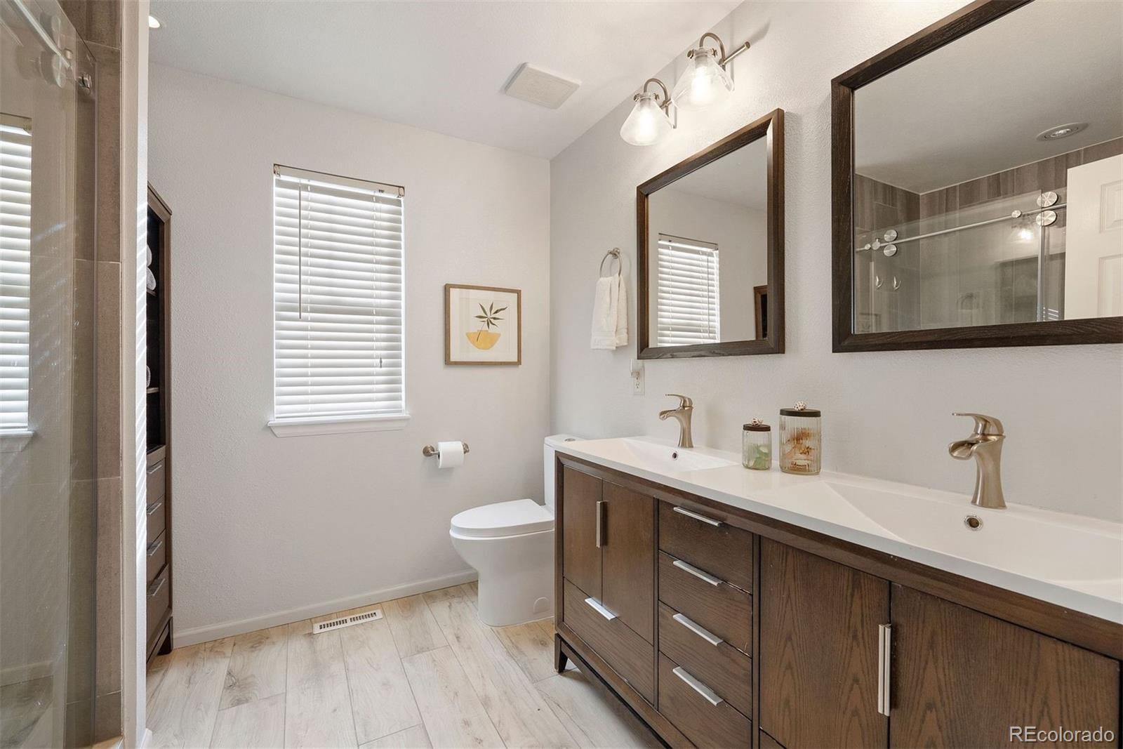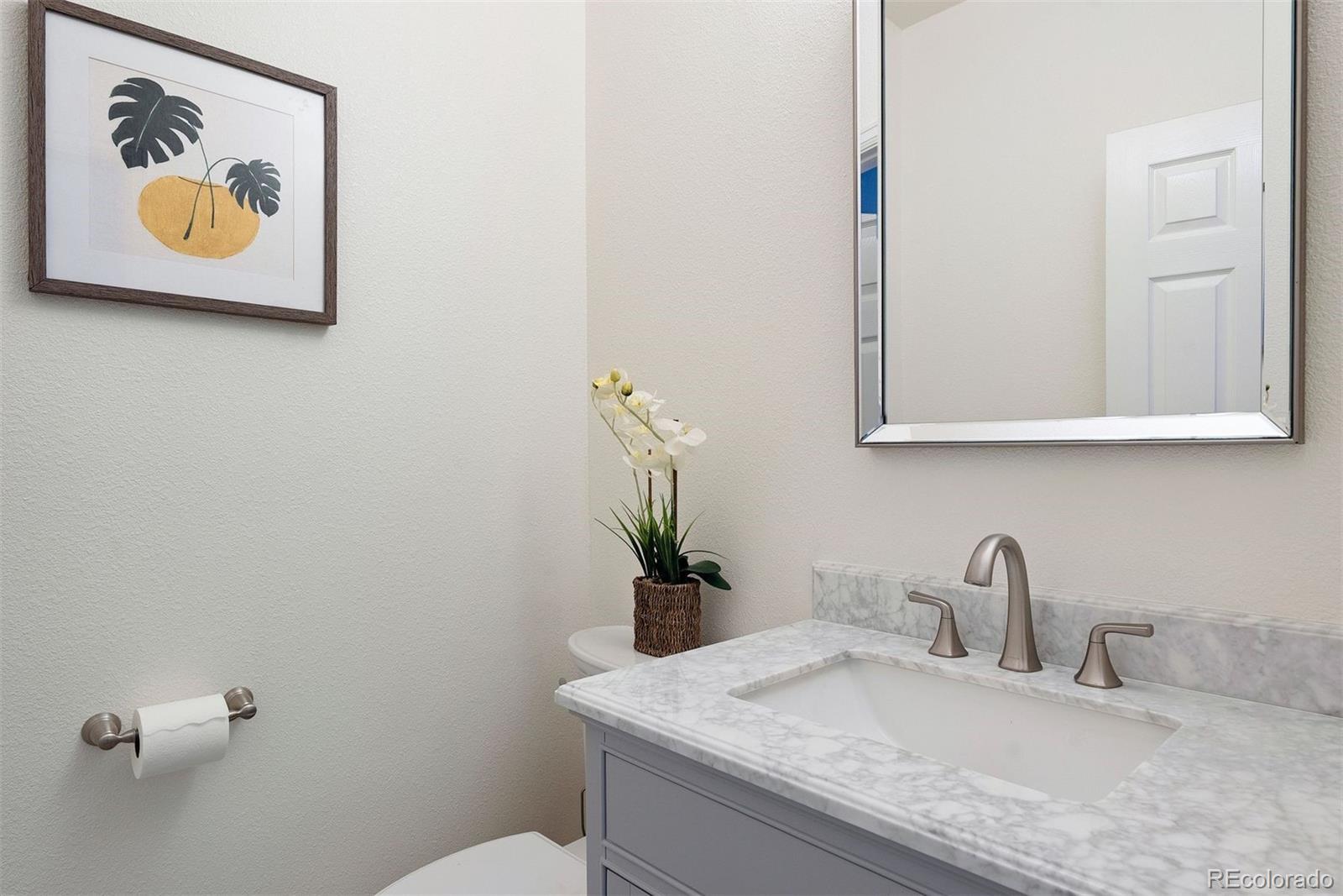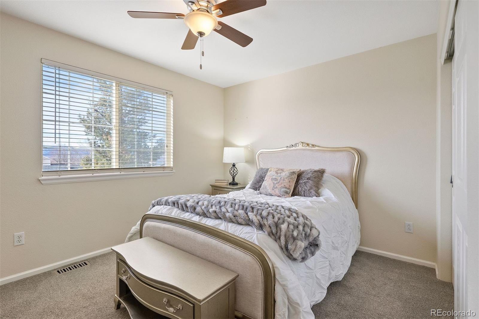 Set on a desirable corner lot with sweeping mountain views, this beautifully updated 2-story home offers space, light, and exceptional indoor/outdoor living in one of Highlands Ranch’s most sought-after settings. From the moment you enter, the soaring two-story ceilings in the living room create an open, airy feel that carries throughout the main level. The updated eat-in kitchen is thoughtfully designed with 42" cabinetry, stainless appliances, slab granite countertops and island all positioned to overlook the family room. French doors off the kitchen open directly to the expansive patio, seamlessly connecting the indoor living space to the outdoors, ideal for everyday living and effortless entertaining. A main-floor bedroom provides flexibility as a private home office or perfect playroom. Upstairs, the primary suite is a true retreat, featuring an updated spa-like bathroom with a walk-in shower and two impressive walk-in closets complete with custom built-ins. Two additional bedrooms share an updated full bath, while a spacious loft with lovely mountain views offers endless possibilities as a media room, second office, or additional lounge space. Outside, the home truly shines with a large patio captures stunning mountain views and overlooks an expansive yard with generous side yard space, perfect for play, gardening, or hosting gatherings. A storage shed adds convenience without sacrificing outdoor enjoyment. The unfinished basement provides abundant storage today and exciting potential for future expansion. Residents enjoy access to Highlands Ranch’s renowned recreation centers, miles of scenic trails, excellent schools, and a wealth of community amenities, making this home the perfect blend of comfort, lifestyle, and location.