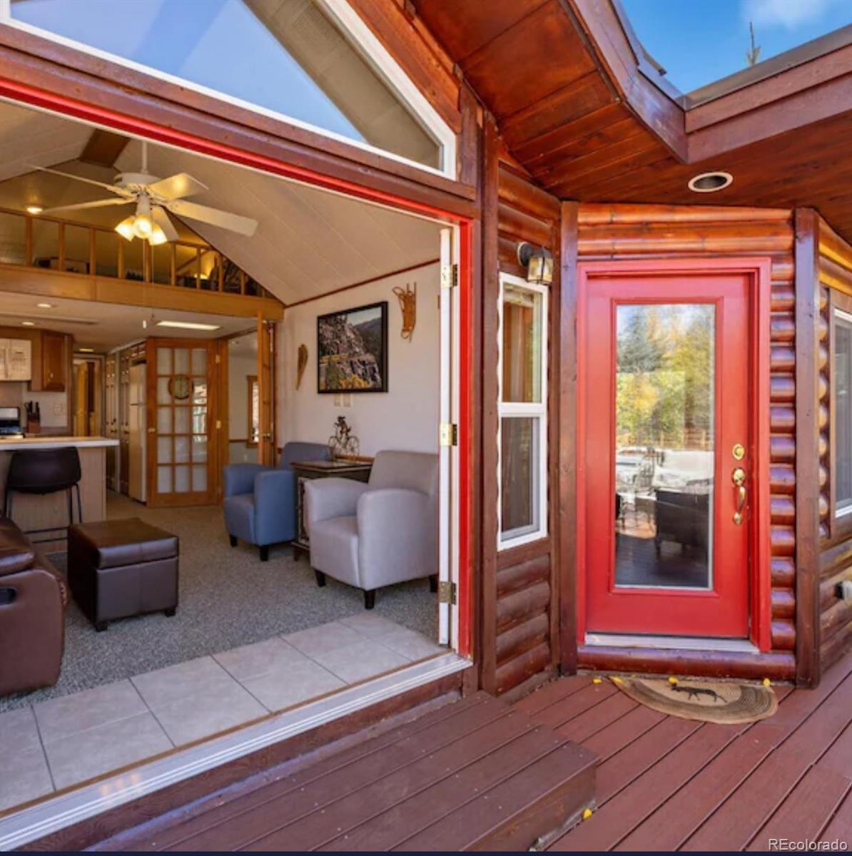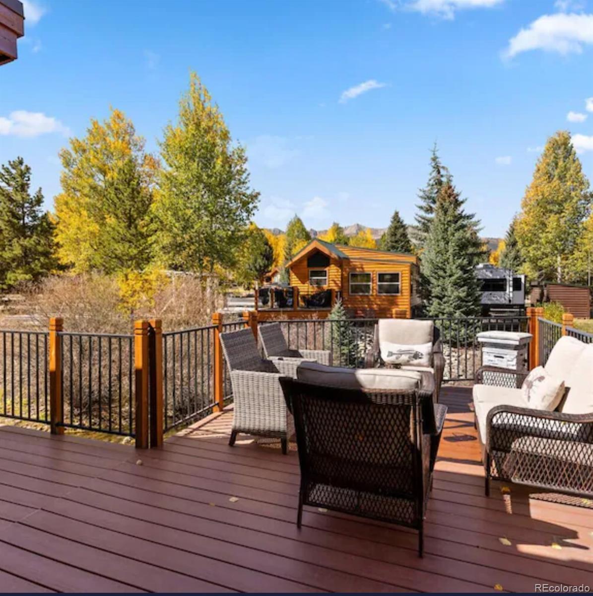 Nestled in a truly special and private setting within Tiger Run RV Resort Park, this immaculate and meticulously maintained one-bedroom chalet with a spacious loft offers exceptional tranquility and privacy. The home showcases breathtaking views, a peaceful landscaped setting, and frequent visits from local wildlife including deer, moose, and fox. The chalet features a spacious kitchen equipped with appliances—refrigerator, range, and dishwasher—along with granite countertops. Hardwood flooring, vaulted ceilings, a kitchen bar with sitting area, and an open living and dining space create a warm and inviting atmosphere. Privacy screens adorn all windows, and the home is fully furnished and includes a full-size washer and dryer—move-in ready and designed for comfort. Step outside to the inviting covered side deck off the living room, complete with a private gas fireplace, porch swing, TV, and an ideal space for relaxing or entertaining while enjoying the surrounding wildlife. A large patio provides additional space for outdoor cooking, dining, and gatherings. Conveniently located near both Breckenridge and Frisco, this residence provides easy access to endless dining, entertainment, and outdoor recreation. This is a rare opportunity to experience the best of Summit County living while retreating to a serene and private mountain setting. The home also includes an oversized, secure storage shed—making this a truly exceptional property you’ll enjoy for years to come.