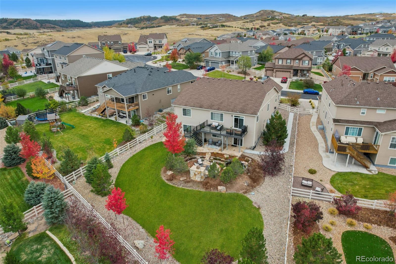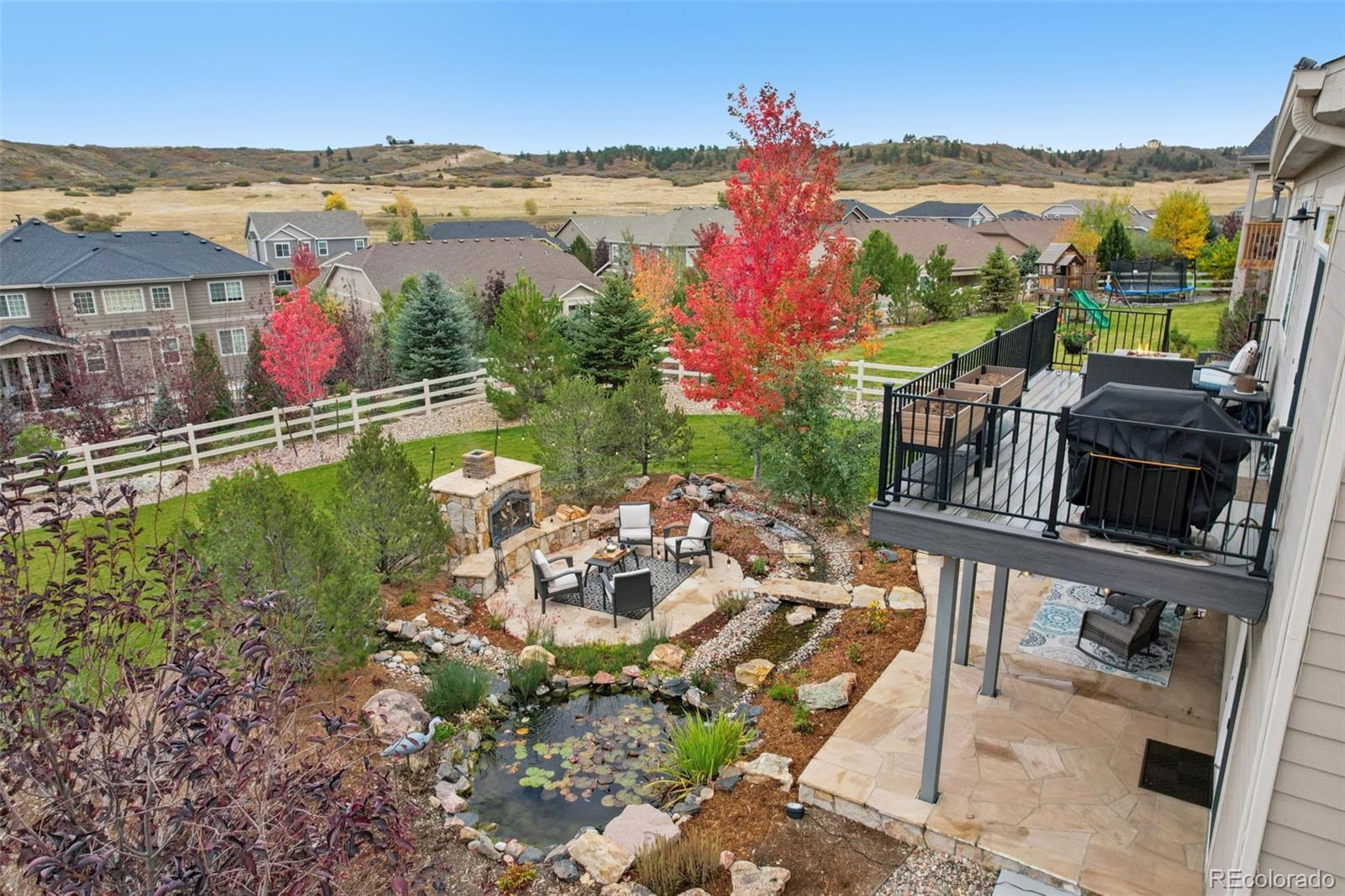 Seller is now offering $10,000 to the buyer at closing to go towards closing cost or interest rate buy down just in time to close before the holidays!!!! Welcome to your new home, a place where serene landscapes meet refined living. This exceptional residence sits on a generously sized lot and delivers nearly 4,900 square feet of thoughtfully appointed interior space, offering both grand scale and intimate comfort. As you step inside, you’ll be drawn to a home built for entertaining and everyday enjoyment alike. The chef's kiss gourmet kitchen impresses with its expansive layout, abundant custom cabinetry, premium appliances, and an oversized pantry. The centerpiece of the lower-level gathering area is a custom-built bar, fully equipped with a sink, wine cooler, full sized refrigerator, dishwasher, and kegerator — perfect for hosting and elevating every celebration. The interior flows with light and space, creating inviting zones for dining, relaxing, and socializing, all framed by walls of windows that capture sweeping views of the surrounding hills and open skies. Stepping outside where the newly expanded upper deck invites you to take in all the Colorado views. Home is equipped with Jellyfish lighting which provides year round outdoor lights ready for any holiday. Below you will find a beautifully and easily maintained koi pond that adds tranquil movement and a touch of Zen to your landscaping, while an outdoor fireplace anchors the patio — an al fresco hearth for cozy gatherings, quiet evenings, or weekend entertaining under the stars. Life in Crystal Valley brings the best of both worlds: peaceful mountain-view surroundings, yet easy access to the amenities, dining, shopping, and Colorado’s renowned outdoor recreation. This is more than a home — it’s a retreat, a gathering place, and a daily celebration of Colorado living!