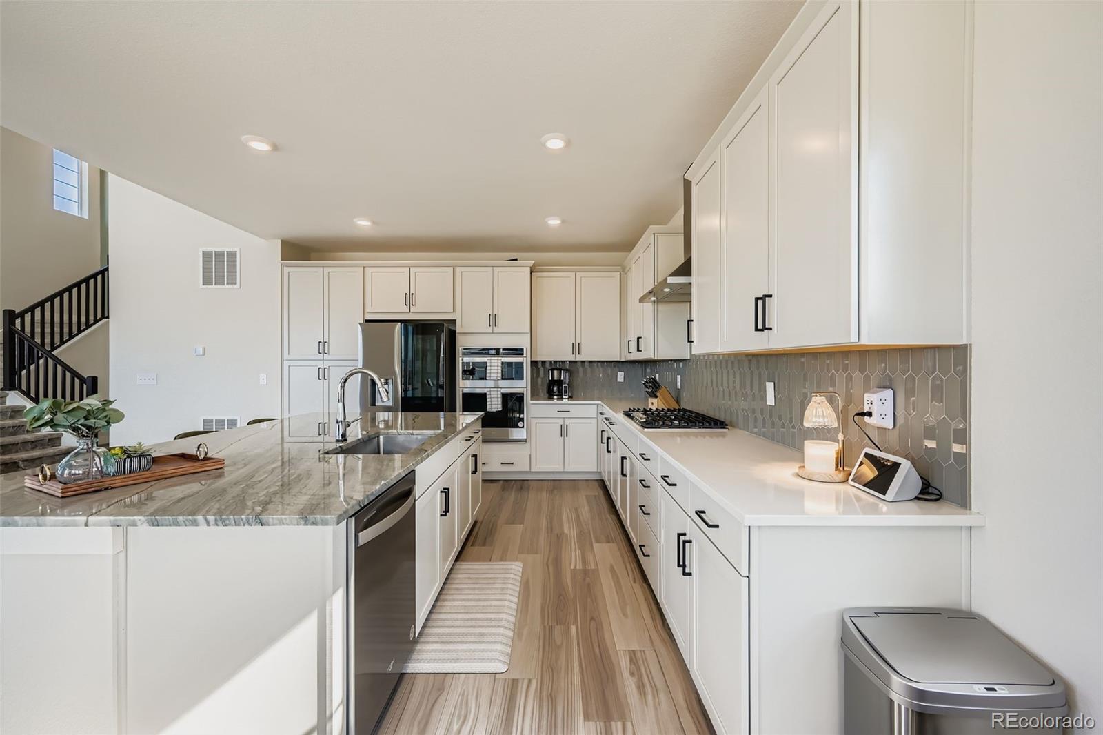 Welcome to this Amazing-Open Concept home located on a quiet cul-de-sac in the amenity-rich community of The Aurora Highlands. The main floor features a bright gourmet kitchen overlooking the living room with tons of light and high ceilings and an oversized dining room leading to a patio with a large corner backyard. A spacious study is tucked away on the main floor, providing a perfect spot for a home office. Upstairs, the Primary Suite offers a Spa-like bathroom with an oversized see-thru shower. You will also find a 3 additional bedrooms, the laundry room and a full bathroom upstairs. The finished basement adds extra entertaining space and a fifth bedroom with a full bathroom. Additionally, it features a 4-car garage, with a 3-car garage plus a tandem space for added convenience. This modern home blends comfortable living with functional spaces, making it a great place to call home.The event lawn is now open, along with public art displays. Plans are underway for a Beach Club with community pool, miles of trails, numerous neighborhood parks, including playgrounds and athletic fields and the expansive Hogan Park at Highlands Creek. The Aurora Highlands also hosts numerous community events throughout the year for its residents such as an Independence Day Festival and a summer Artisan market and it is already bustling with activity. Don 't miss it and make your appointment today!