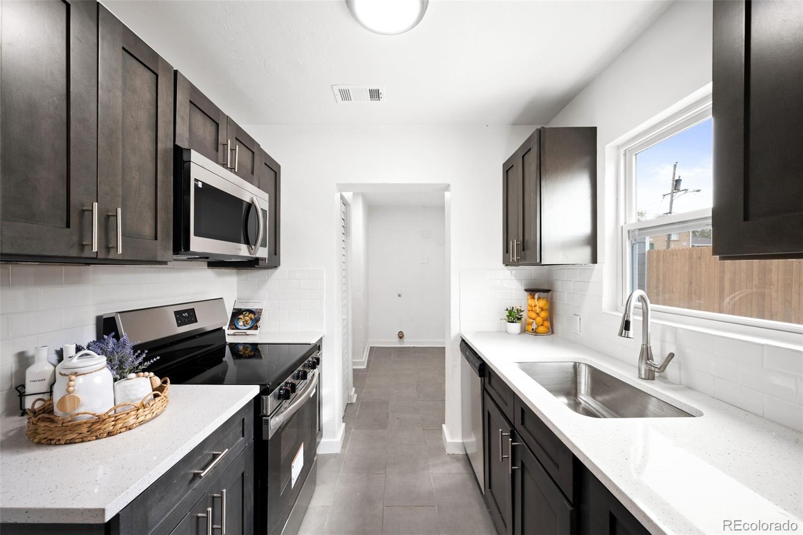 Charming 3-bedroom, 1-bathroom recently updated stunning home located directly across the street from Montview Park. The updated kitchen boasts striking cabinets, gorgeous countertops, tile backsplash and new stainless steel appliances. Other improvements include updated lighting, fixtures, flooring & paint. The exterior is equally nice and complete with new paint and a detached 1-car garage. The spacious backyard is perfect for outdoor living for relaxing or entertaining guests with a large covered space. Situated just moments from Children’s Hospital and Colorado Anschutz Hospital, this home offers easy access to retail and shopping. Whether you're looking for a peaceful retreat or a property with close proximity to all the essentials, this home provides the perfect balance. Don’t miss the chance to make it yours!