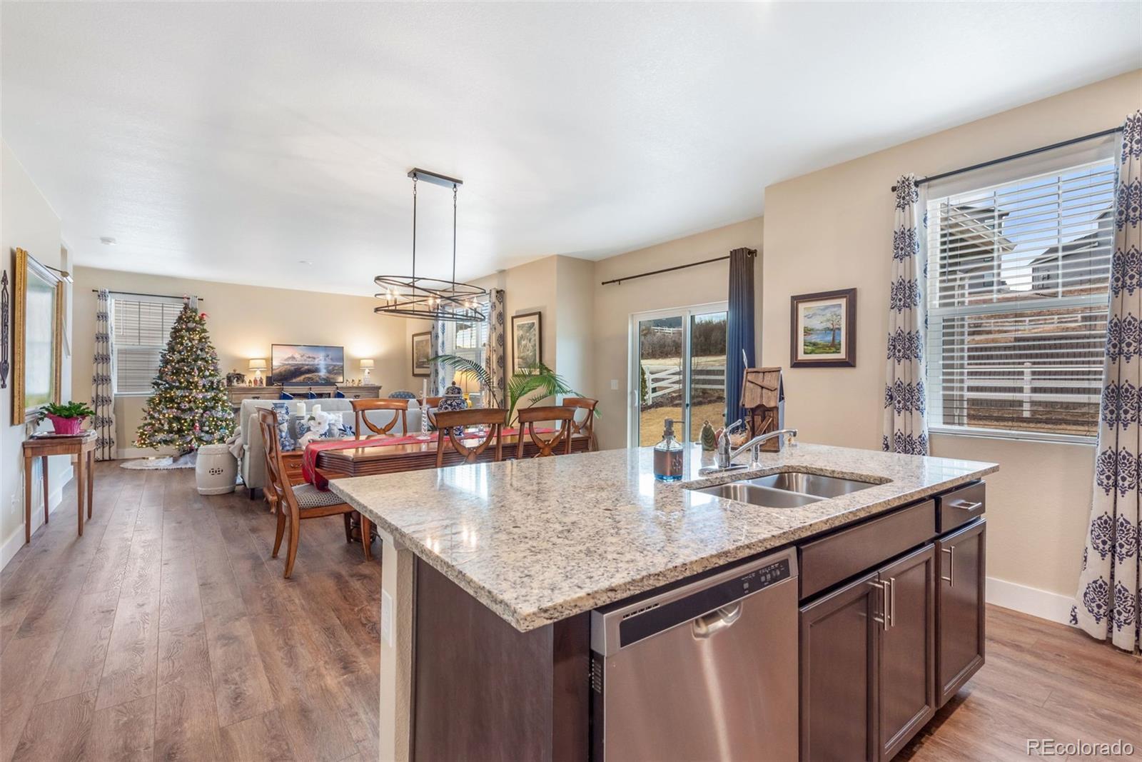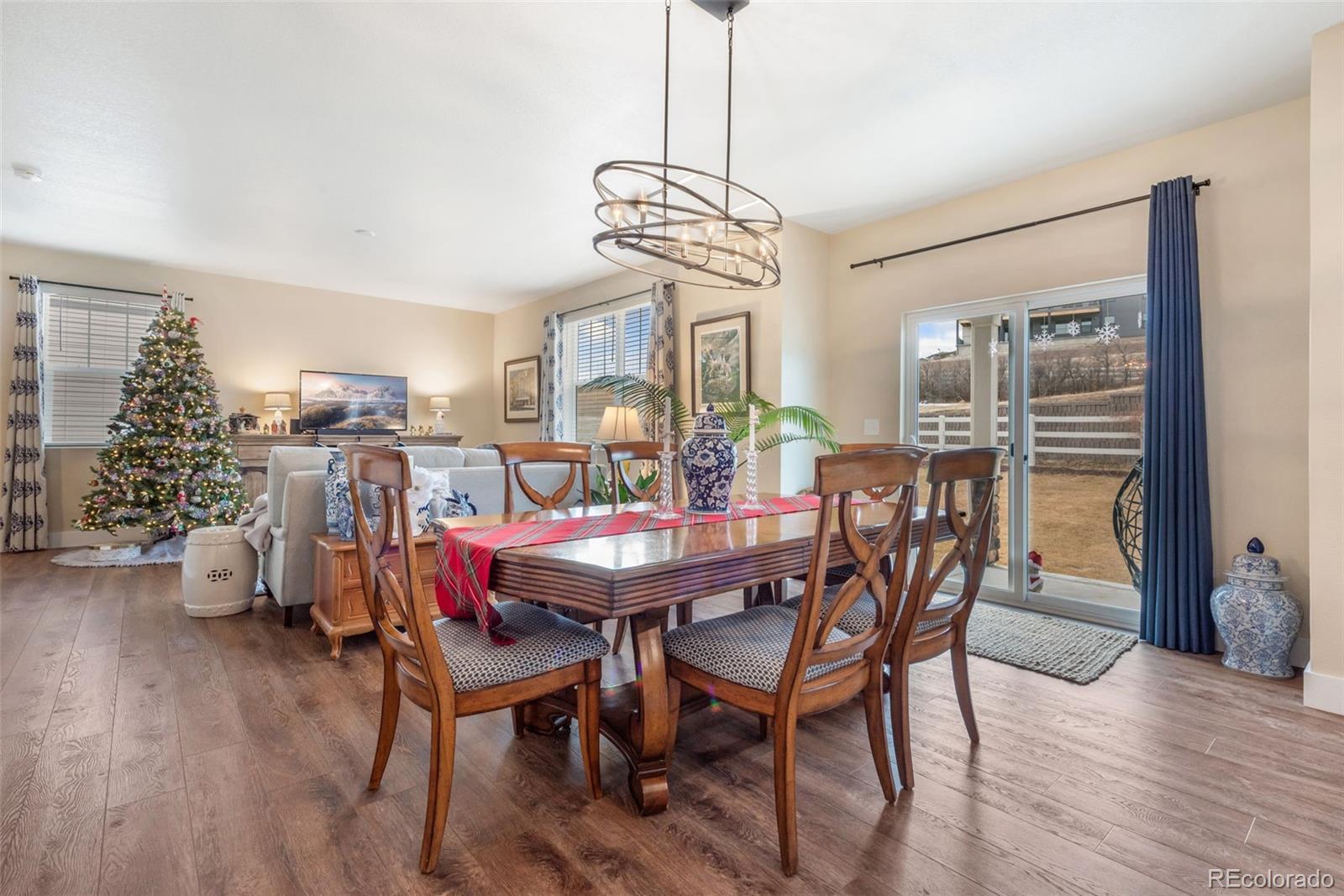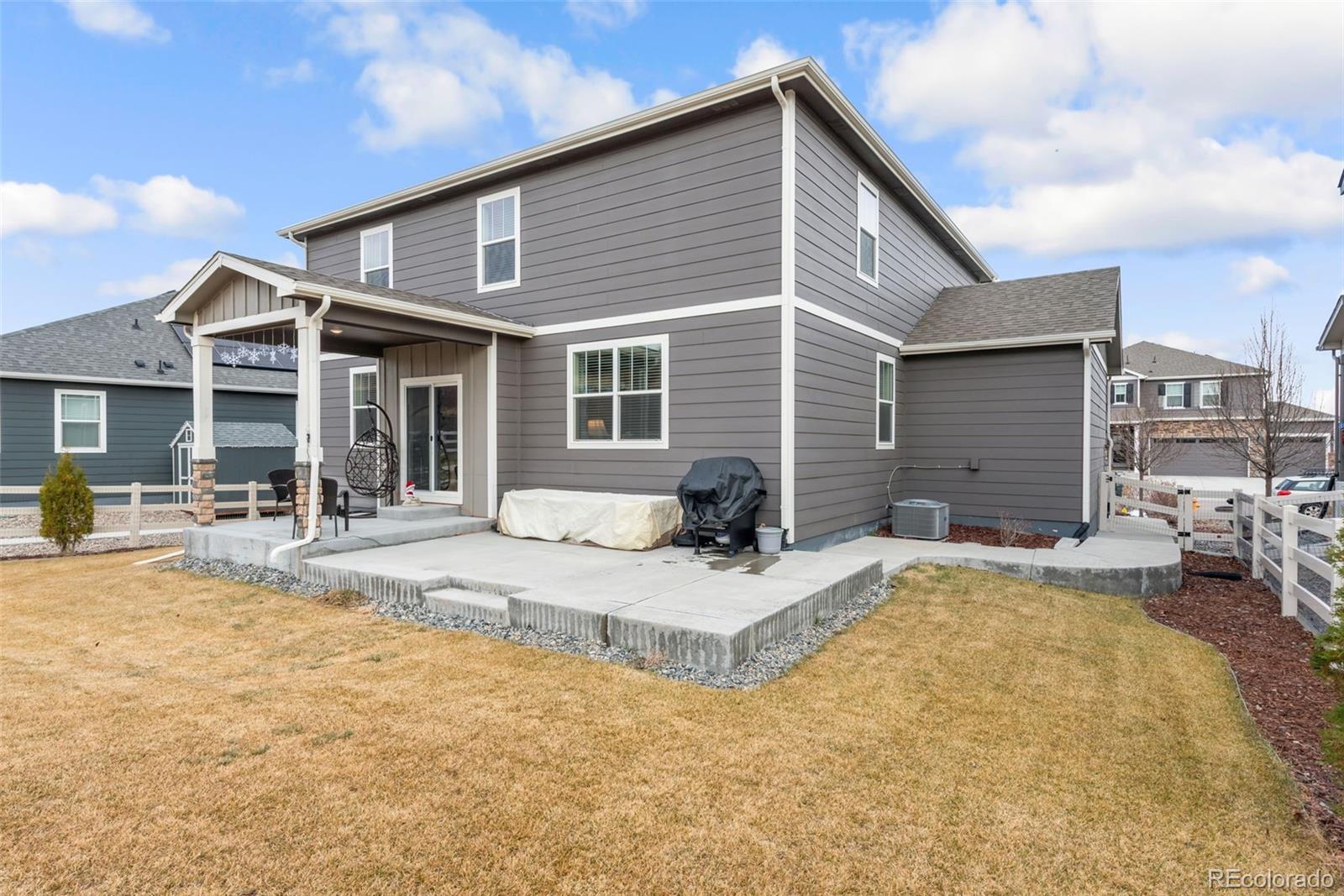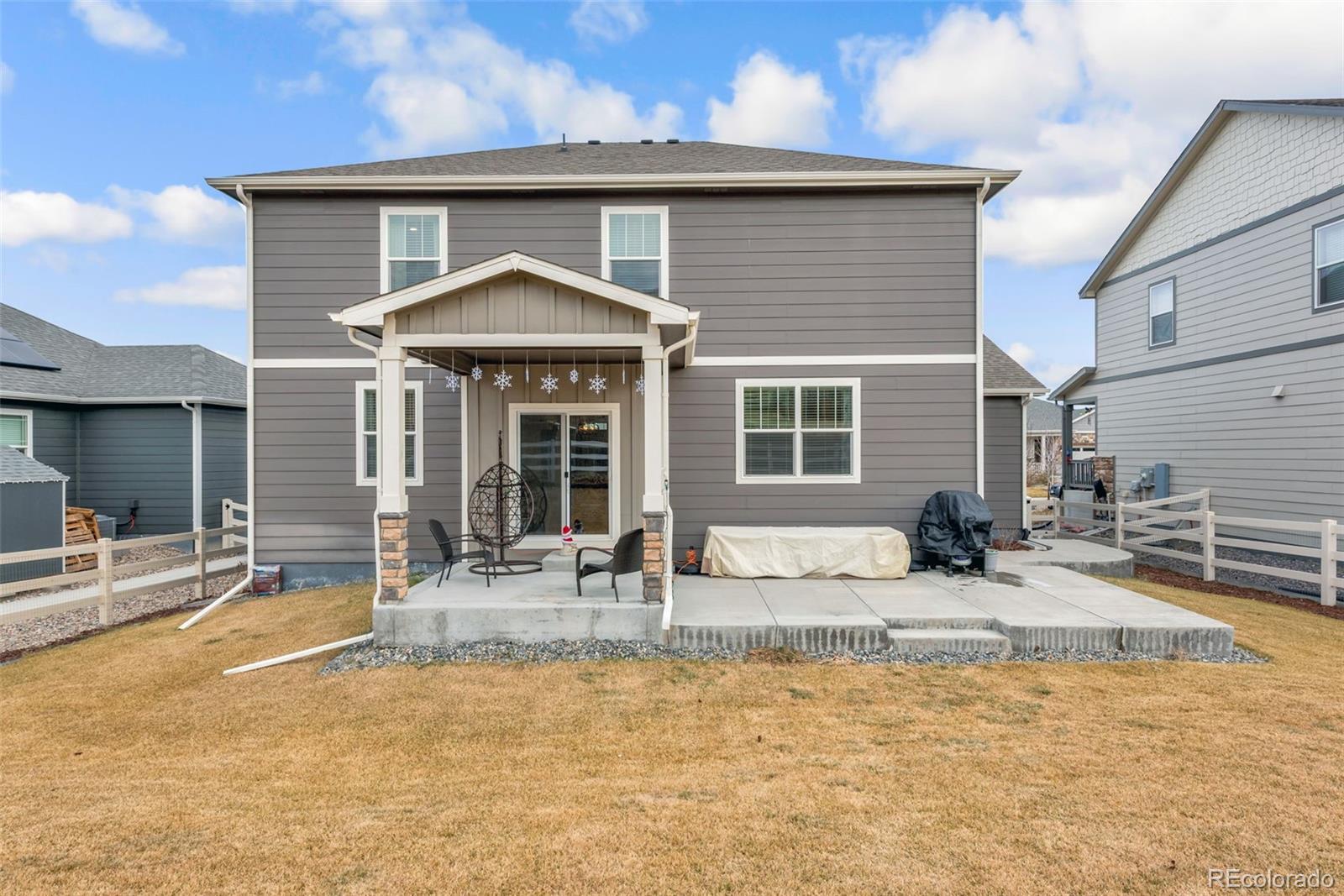 Welcome to 5955 Plains End Court in Crystal Valley Ranch, a beautifully maintained Castle Rock home that blends timeless curb appeal with functional living and exceptional work from home space. This two story home immediately impresses with stone accents, covered front porch, and a welcoming entry that sets the tone for comfort and quality throughout. Inside, you will find a true dedicated home office that stands out from the moment you walk in. With hardwood flooring, natural light, and space for a full executive desk, piano, and custom shelving, this office is ideal for remote work, creative pursuits, or a private study. French doors provide separation while still allowing light to flow, creating a professional yet warm environment rarely found in homes at this price point. The open concept main level flows effortlessly into the kitchen and living area, making everyday living and entertaining easy and inviting. Upstairs, the spacious primary suite offers a calm retreat with soft natural light and generous closet space, while additional bedrooms provide flexibility for guests, hobbies, or fitness space. The upstairs layout includes a wide hallway that enhances the open feel and functionality of the second level. Step outside to enjoy the custom concrete patio and outdoor living area, thoughtfully designed for relaxation and entertaining. This space offers room for seating, grilling, and outdoor gatherings while overlooking a large usable backyard with privacy fencing. Whether you are enjoying morning coffee, hosting summer barbecues, or unwinding in the evening, this backyard delivers true Colorado indoor outdoor living.
