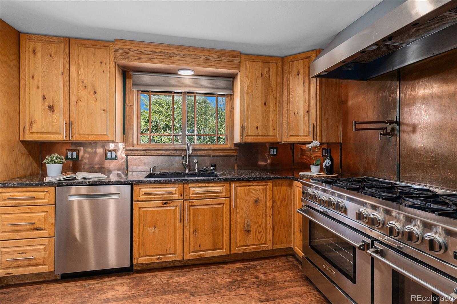 Major Price reduction - Sellers are motivated! This space also got a fresh paint job, making it light and airy. This spacious and distinctive brick bi-level home offers a rare combination of city convenience and serene mountain views. Located on a generous corner lot with clean, well-maintained landscaping and no HOA, this home is easily accessible from the highway yet feels like a private retreat. Step inside to a bright, open-concept main level that's perfect for entertaining. The heart of the home is a true cook’s kitchen, featuring a professional-grade six-burner Blue Star range with griddle, double ovens, a pot filler water line, and a gas cooktop—an ideal setup for chefs and food lovers alike. Beautiful casement wood windows throughout add warmth and character. Just off the main level, a large deck overlooks the spacious backyard, with sweeping, unobstructed views of the Flatirons. Mature trees and a privacy fence provide a peaceful, secluded feel. The home offers 3 bedrooms and 3 bathrooms, including comfortable, well-appointed living spaces on both levels. Don’t miss your chance to see this special home that blends thoughtful design, unique features, and postcard-worthy views.