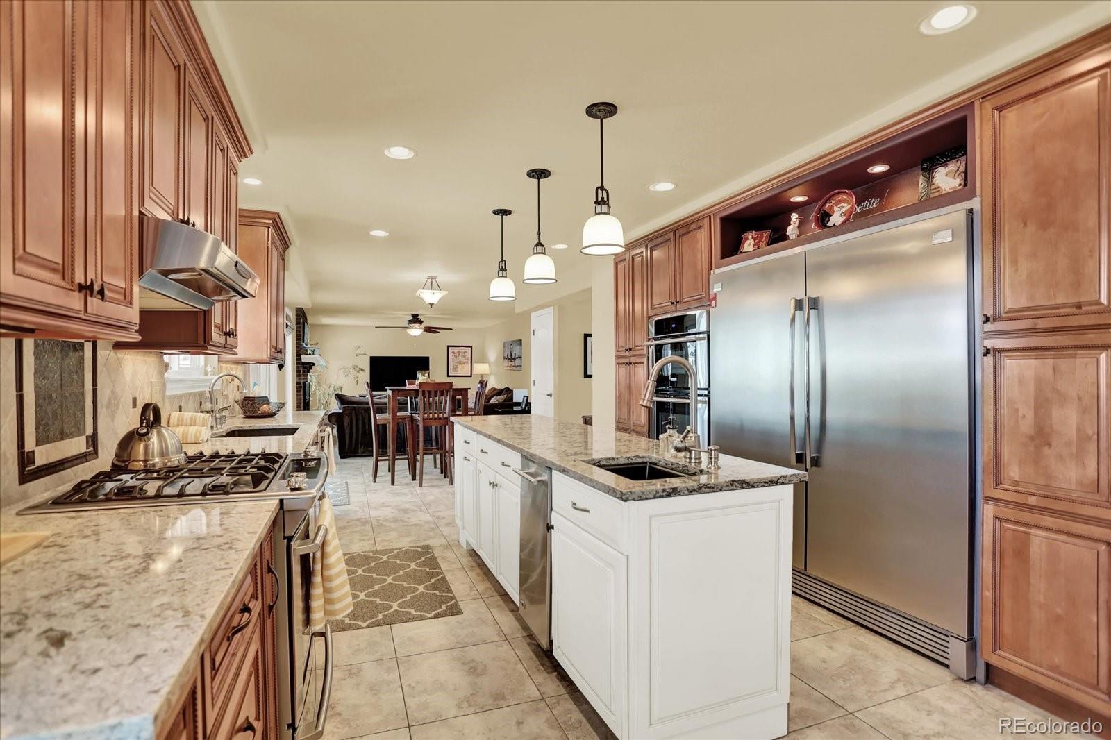 This West Arvada home gives it to you in 4's - 4 spacious bedrooms, 4 updated bathrooms, & a 4car garage with Attic space above it all! The heart of the home is a chef's dream kitchen, boasting a full-size side-by-side refrigerator/freezer, commercial-grade ice maker, 3 ovens, & a dual-fuel range, complemented by a wine/beverage cooler, a sprawling 9ft center island w/ Cambria countertops, & an abundance of cabinetry. The open-concept great room, kitchen/breakfast nook/family room, is perfect for gatherings, + a cozy fireplace. A separate dining room, w/rich wide-plank wood floors & a large picture window, provides a large space for big meals together. Upstairs, the renovated primary suite awaits w/a split double vanity, updated cabinetry, granite counters, & a separate shower/toilet room showcasing custom tile work. Three additional well-sized bedrooms offer comfortable accommodations, each w/ample closet space & unique views. The finished basement expands the living space with a second kitchen, 1/2 bath with room for a full bath, a large rec area! This could be the perfect level for rental income or a private living space as needed! Throughout the home, upgraded energy-efficient windows & updated lighting enhance both style and efficiency. The private backyard has mountain views & a relaxing outdoor space. Enjoy the hot tub or pursue hobbies in the 25x10 workshop w/electric. A large covered patio offers a shaded retreat for outdoor enjoyment. The attached 4car garage is perfect for larger vehicles or a small RV. This home is located within a highly desirable school district, Sierra Elementary-a short walk away, Oberon Middle & top rated Ralston Valley High School. Located in a truly wonderful neighborhood w/mature trees, wider-than-average streets, & convenient access to trails, parks, and recreational facilities. And the best part? No HOA fees or rules and no special taxing district, compare the taxes! The seller would consider selling the home fully furnished.