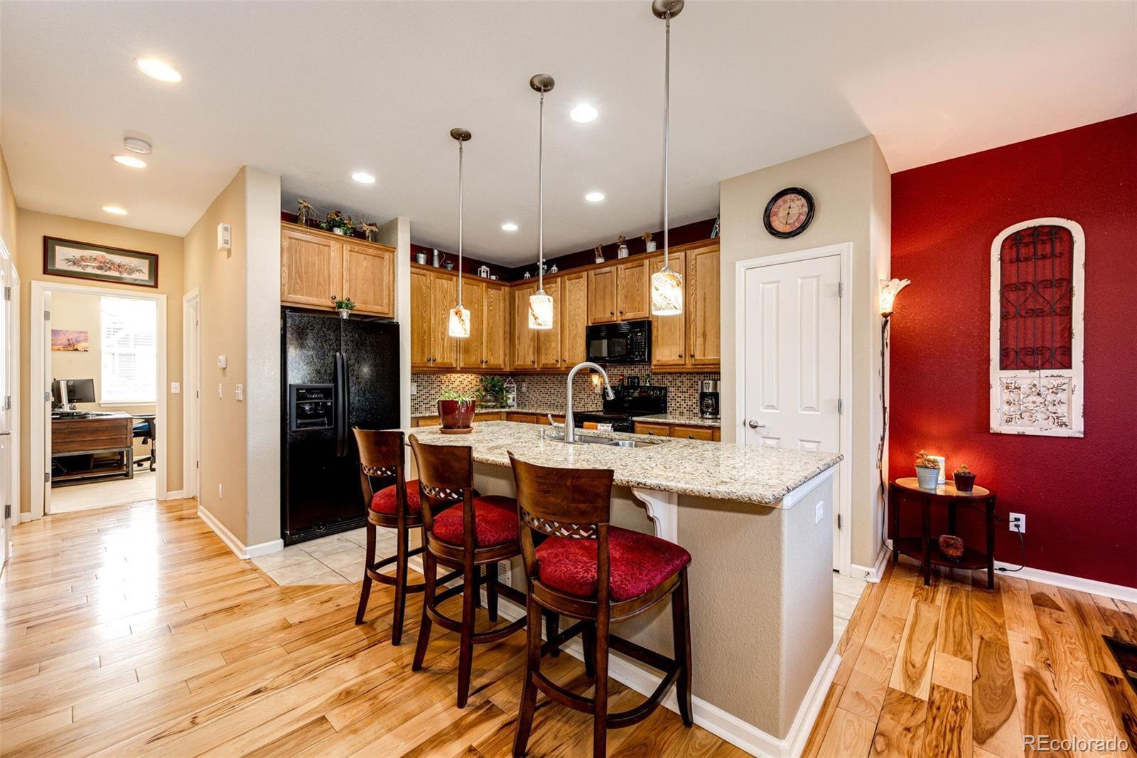 Welcome to this light-filled, open concept townhome nestled in the desirable Cattail neighborhood. The main floor offers a spacious family room with soaring ceilings, a warm fireplace with built ins and a seamless flow into the kitchen. This kitchen itself is well appointed with 42 inch cabinetry, a central island, a pantry and generous counter space- ideal for both casual meals and entertaining. On the main level you’ll also find a versatile office or guest bedroom, plus a full bathroom and in unit laundry for convenience. Upstairs, the luxurious primary suite awaits with a five piece en-suite bathroom, walk in closet and mountain view’s. There is also an additional guest bedroom and full bath on this level. One standout feature is the expansive three car garage perfect for vehicles, storage or even a creative workshop space. Enjoy a finished room in the garage that can be used as a movie theater, game room, gym so many options. Located in a strong Littleton school and commuter corridor with easy access to C-470. Just minutes from Chatfield Reservoir, Meadows Golf Club, scenic walking trails, grocery stores and restaurants.
