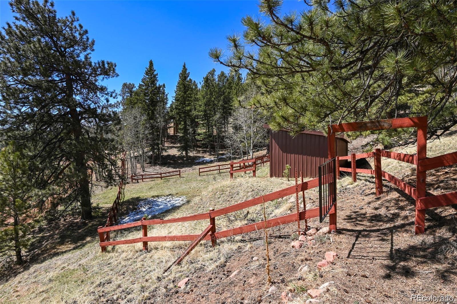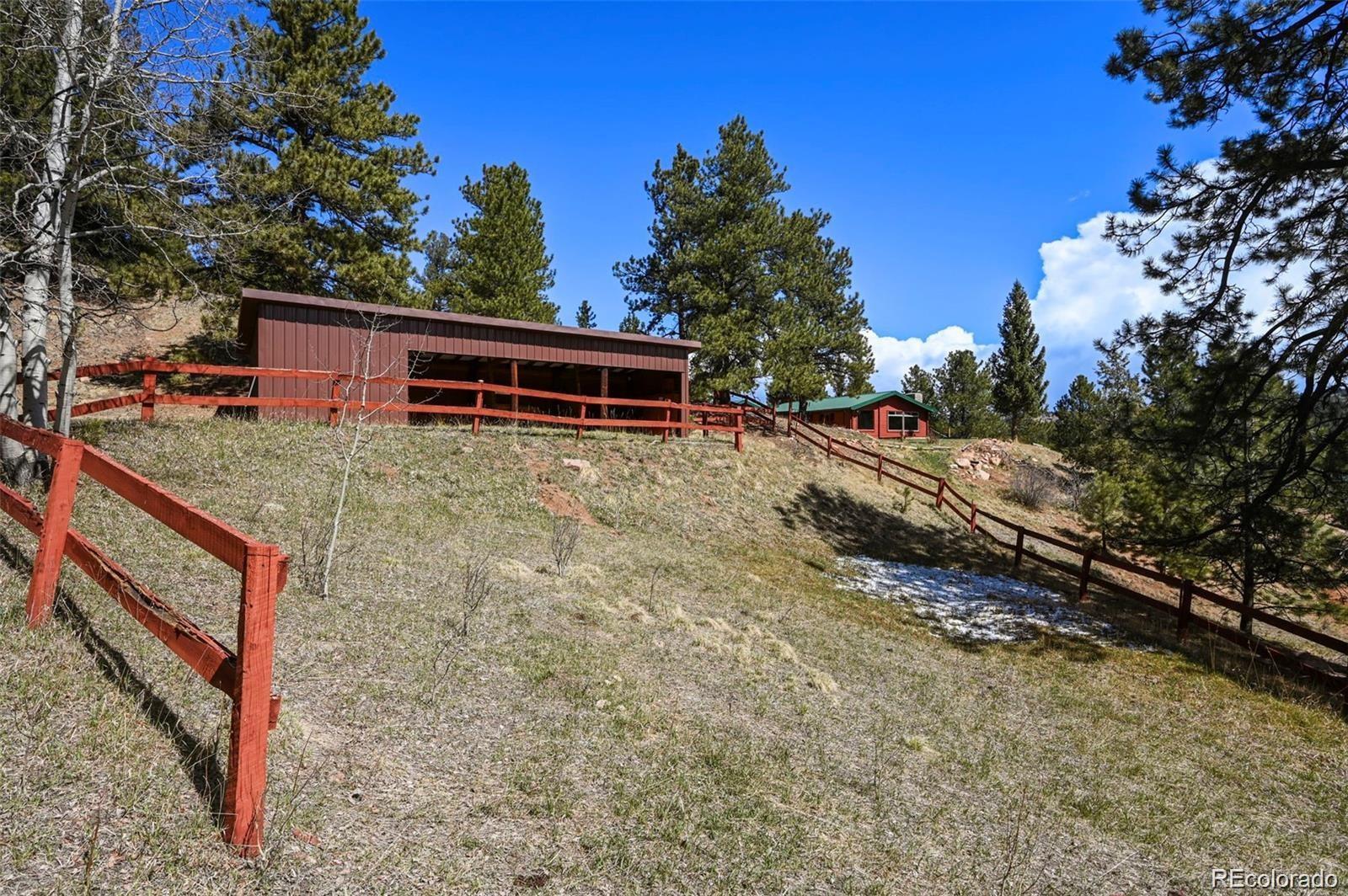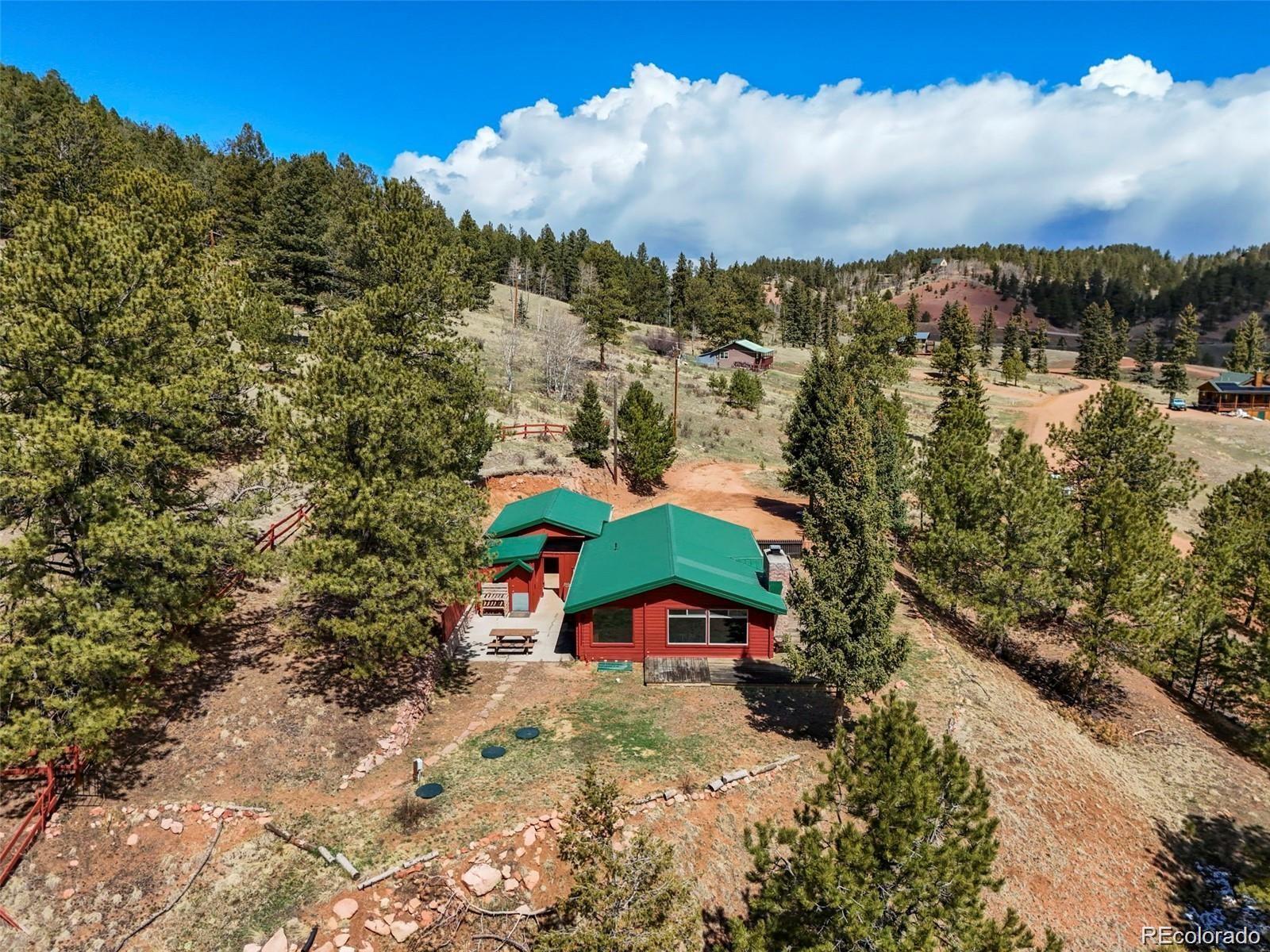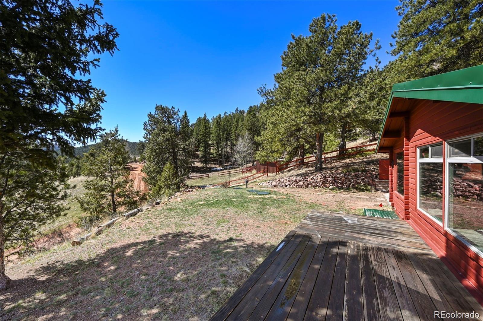 Welcome to the Gingerbread Ranch—an impeccably upgraded cabin on 5 acres of horse-ready land, complete with a stable and corral. Once a seasonal hideaway, this home has undergone a complete transformation and now offers modern comforts in a serene mountain setting. Start your day on the expansive 500 sq ft deck, where you’ll take in breathtaking views of Pikes Peak and Sheep Mountain. Wildlife often wanders by, making every morning feel like a nature show from your own backyard. Inside, you’ll love the warm, vintage charm paired with high-end upgrades. The wood burning stove in the main living area paired with the wall of windows overlooking the view creates an incredible and immersive mountain experience. The brand-new kitchen features soft-close cabinets, high end appliances, granite countertops, and heated floors. The fully renovated bathroom includes a sleek new vanity, walk-in shower, and more heated flooring. Comfort is top of mind with central air conditioning, a brand-new furnace, and baseboard heat for year-round enjoyment. Outside, you'll find a concrete courtyard, great for grilling and outdoor dining. For horse enthusiasts, this property is a rare find—community water means no concerns about well production, making it easier to care for your animals. The land is level, usable, and perfectly set up for equestrian living. Located on a quiet cul-de-sac, the home combines rural tranquility with resort-style amenities. Enjoy access to an HOA pool, tennis courts, pickleball, basketball, disc golf, fitness center, and clubhouse. Outdoor adventure is right at your doorstep with nearby trails and national forest, and you're just 11 minutes from Cripple Creek, 1 hour from Colorado Springs, and under 2 hours from top ski destinations. This is more than a home—it’s a lifestyle. Call today to schedule your private showing.