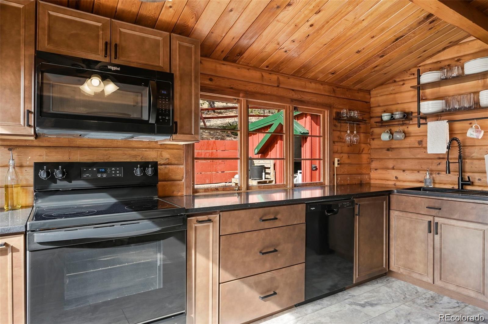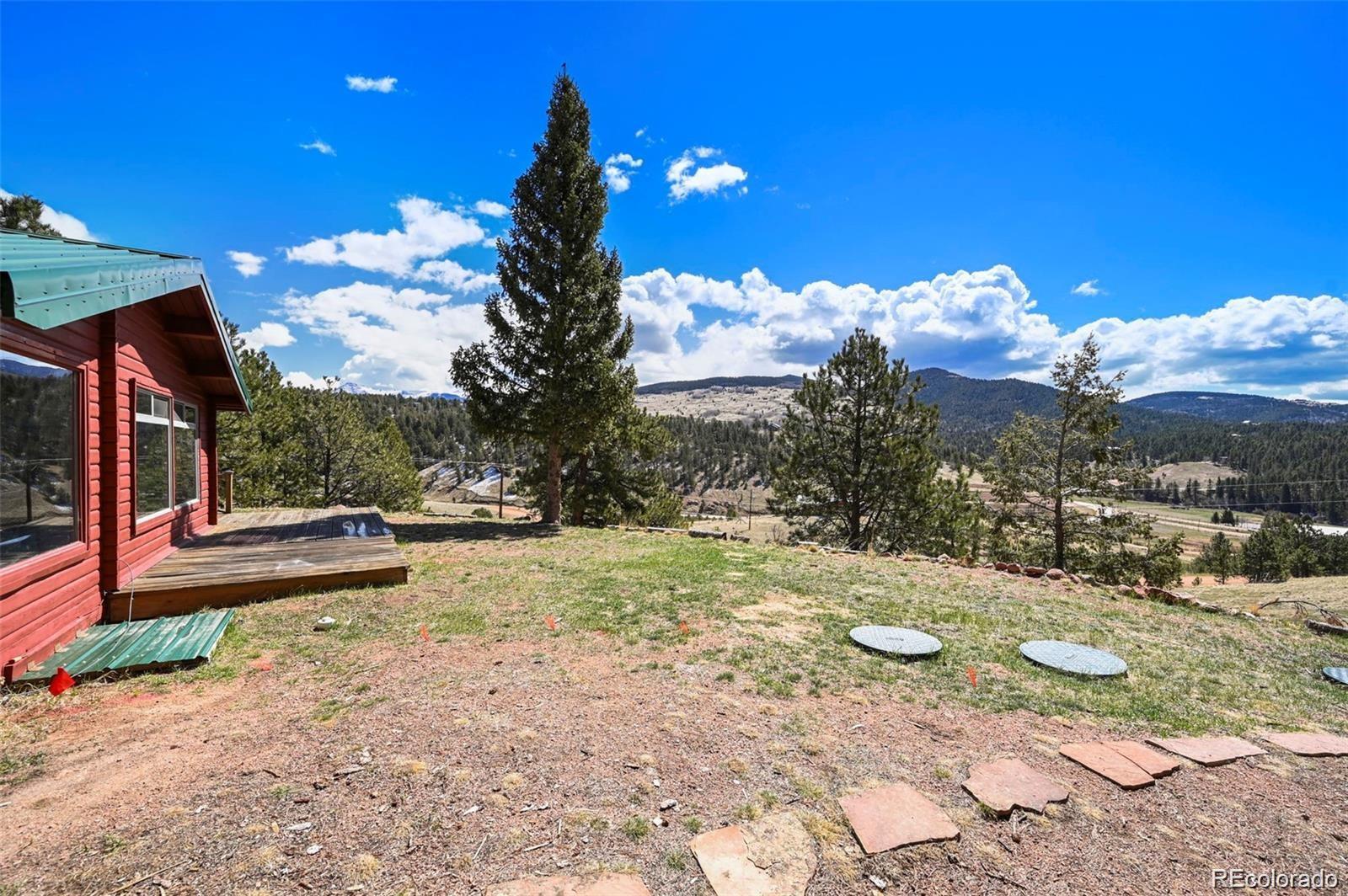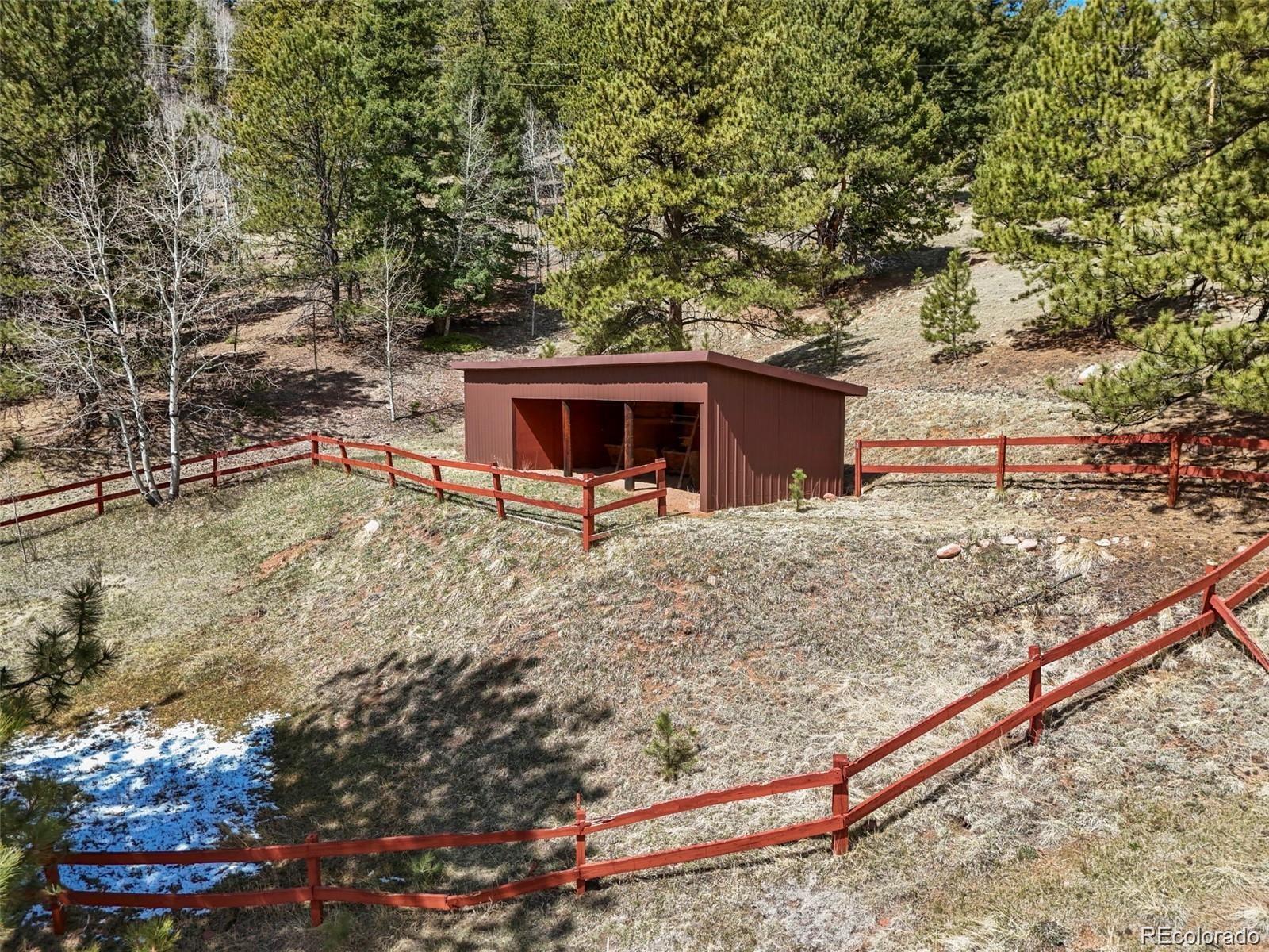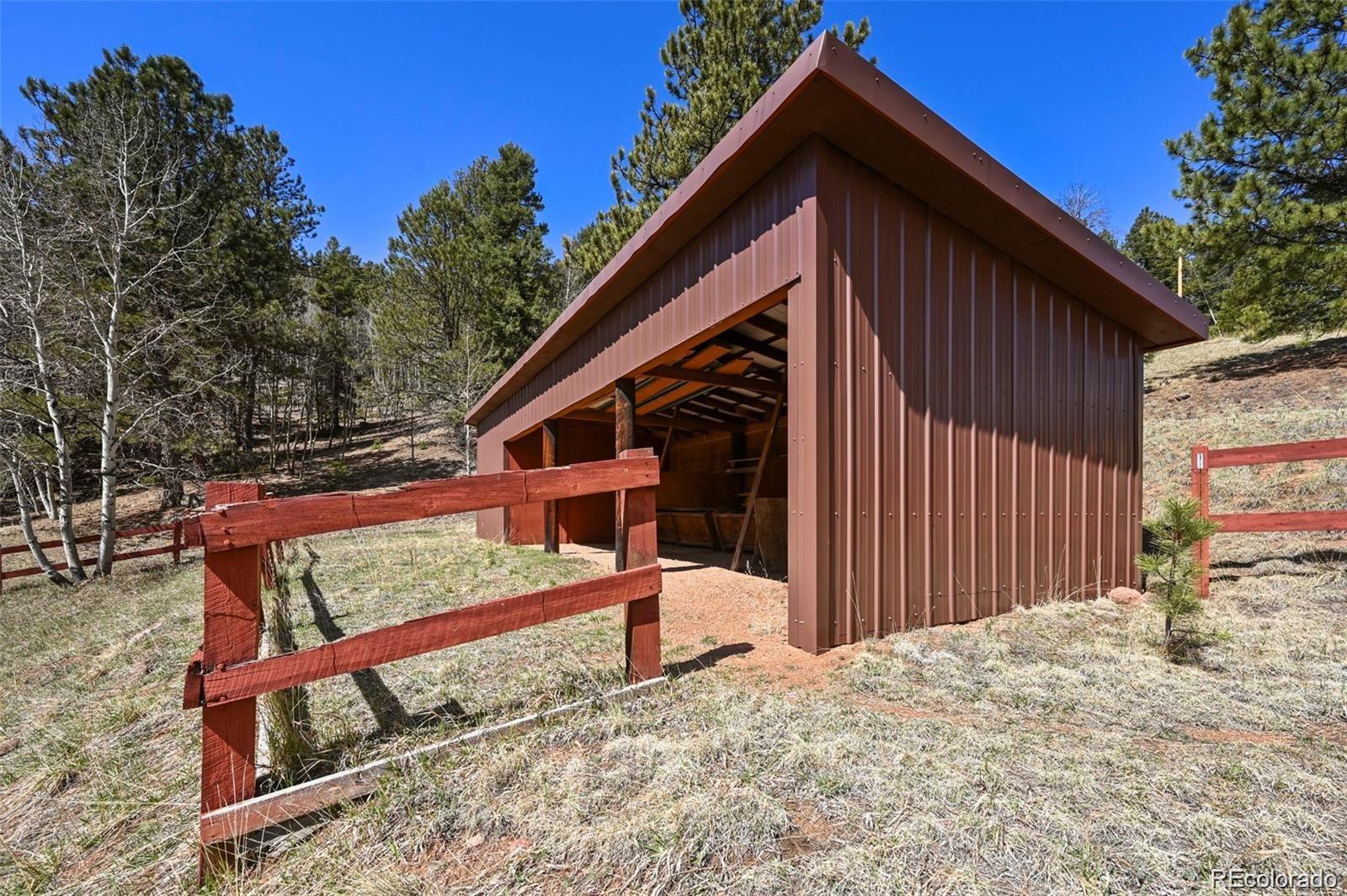 Welcome to the Gingerbread Ranch—an impeccably upgraded cabin on 5 acres of horse-ready land, complete with a stable and corral. Once a seasonal hideaway, this home has undergone a complete transformation and now offers modern comforts in a serene mountain setting. Start your day on the expansive 500 sq ft deck, where you’ll take in breathtaking views of Pikes Peak and Sheep Mountain. Wildlife often wanders by, making every morning feel like a nature show from your own backyard. Inside, you’ll love the warm, vintage charm paired with high-end upgrades. The wood burning stove in the main living area paired with the wall of windows overlooking the view creates an incredible and immersive mountain experience. The brand-new kitchen features soft-close cabinets, high end appliances, granite countertops, and heated floors. The fully renovated bathroom includes a sleek new vanity, walk-in shower, and more heated flooring. Comfort is top of mind with central air conditioning, a brand-new furnace, and baseboard heat for year-round enjoyment. Outside, you'll find a concrete courtyard, great for grilling and outdoor dining. For horse enthusiasts, this property is a rare find—community water means no concerns about well production, making it easier to care for your animals. The land is level, usable, and perfectly set up for equestrian living. Located on a quiet cul-de-sac, the home combines rural tranquility with resort-style amenities. Enjoy access to an HOA pool, tennis courts, pickleball, basketball, disc golf, fitness center, and clubhouse. Outdoor adventure is right at your doorstep with nearby trails and national forest, and you're just 11 minutes from Cripple Creek, 1 hour from Colorado Springs, and under 2 hours from top ski destinations. This is more than a home—it’s a lifestyle. Call today to schedule your private showing.