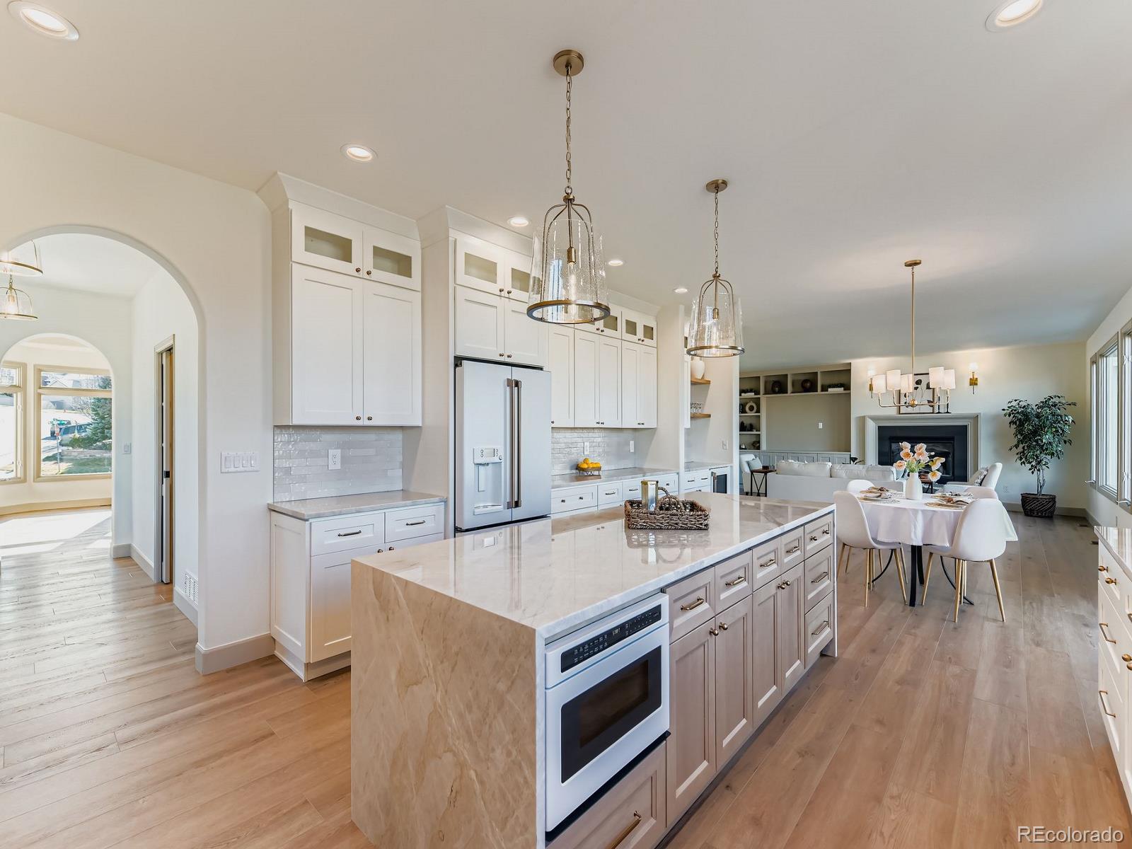 Discover refined luxury in this completely renovated 6-bedroom, 5.5-bath, 6,100 SF masterpiece. Enter through the custom Amish-made Knotty Alder front door, where craftsmanship meets curb appeal. The gourmet kitchen is a showstopper: Taj Mahal quartzite countertops from Brazil flow toward the custom range hood, paired with premium GE Café appliances and a 36” dual-fuel range. The walk-in pantry redefines organization with a platter rack and appliance garage—everything in its place, yet beautifully accessible. Gather in the redesigned family room, anchored by a custom mantle and built-in entertainment niche. Need flexibility? The main-level office, den or Bedroom #5 adapts effortlessly. Escape to the Primary Suite—talk about a sweet retreat. Unwind in the wet room shower with soaking tub, then step into the all-new custom closet system—luxury meets logistics. Three additional bedrooms offer privacy and convenience: two share a Jack-and-Jill bath, while the third enjoys its own ensuite. Be sure to check out the all-new basement—a fully realized lower level designed for connection and independence. Multi-generational living shines with a private ensuite bedroom. Host epic Bronco Sundays and movie nights in the dedicated Theatre Room. A flex room awaits your vision—yoga studio, weight room, or home office. The Best Little Playhouse ever sparks imagination, and a second laundry (stackable washer/dryer ready) keeps life running smoothly. Don’t miss the brand-new 14’x28’ Trex deck—perfect for seamless indoor-outdoor living. No detail was spared in this complete renovation—a flawless fusion of modern upgrades, timeless design, and thoughtful functionality. Welcome to your forever home, reimagined.
