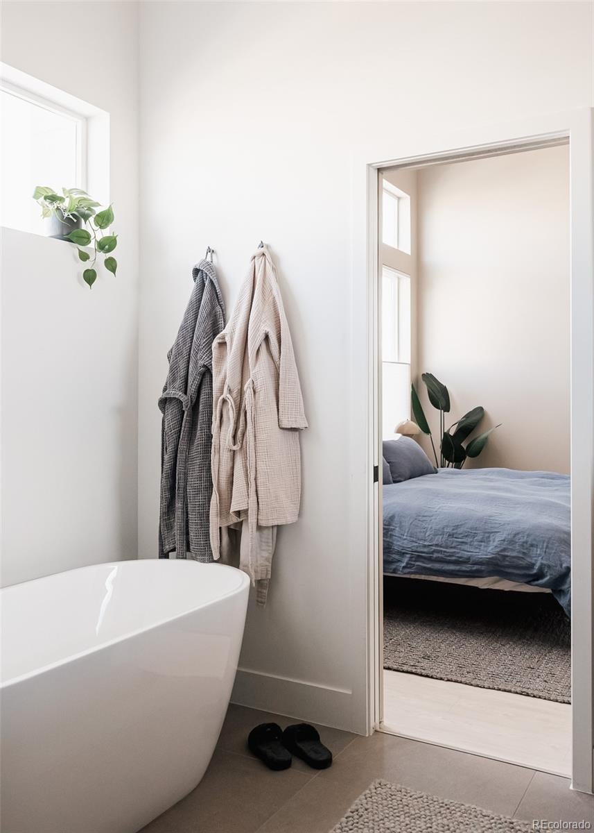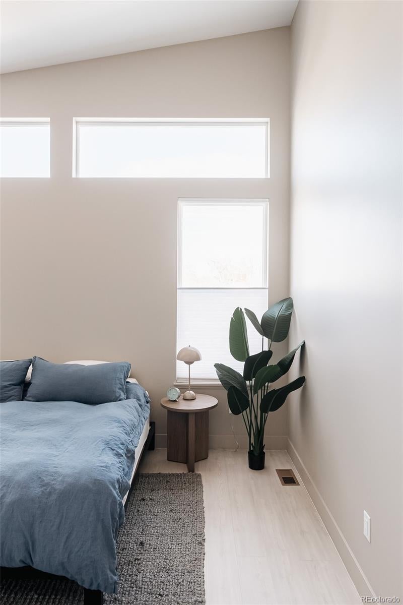 Modern design meets intentional upgrades in this Nordic-inspired Garrison Lakes duplex. Over $100K+ in enhancements elevate this impressive newer construction build (2022), perfectly poised just minutes from Olde Town Arvada. Sunlit interiors unfold beneath soaring ceilings, creating an airy, open feel throughout. The seamless, chef-inspired kitchen anchors the main level with built-in Beko refrigerator, refined finishes and a streamlined flow~ ideal for gathering. A cozy gas fireplace grounds the bright and spacious living area, complete with designated dining room that faces the flourishing backyard. Upstairs, the primary suite is a truly tranquil retreat, featuring vaulted ceilings, a large walk-in closet, soaking tub and a double "star-fire" glass-enclosed shower... promising a peaceful spa-like experience. Thoughtfully designed outdoor spaces include two newer concrete patios, perfect for hosting an outdoor dinner party, and a second-story private deck — a place to enjoy that early morning coffee or a quiet nightcap at the end of a long day. An outdoor sauna and paid-off solar panels add both luxury and efficiency, while the attached three-car garage and expanded driveway provide everyday convenience. Location is adjacent to several small lakes, parks, playgrounds, and bike trails with easy access to the mountains (I-70), Golden, and Berkley.