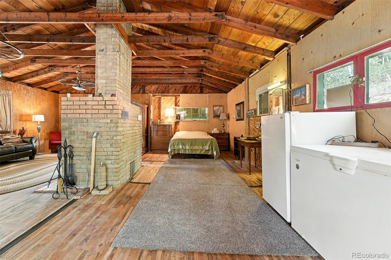 Step back in time and experience the magic of Singing Pines, a historic, original cabin built in 1955. Nestled in the serene Harris Park neighborhood of Bailey—just an hour from Denver with easy access via Highway 285—this home offers pure mountain relaxation. Singing Pines preserves the rich history of its past, featuring original hardwood flooring, warm pine walls, and soaring vaulted ceilings. The centerpiece of the great room is a large brick fireplace that provides cozy heat, paired with original wagon wheel chandeliers for authentic mountain character. Interior walls have been opened up to bring forest views to every corner of the home. This cabin is ready for restoration to make your mountain dreams come true. The previous setup included water holding tanks, a composting toilet, and a kitchen. Whether you envision bringing your creativity for a full renovation or using it as-is for a true off-grid getaway, the possibilities are endless. While there is currently no well or septic, the nearby community center offers well water for residents. Please note, the deck is not currently usable due to structural concerns. Set on a stunning .38 acre lot surrounded by towering pines and aspens, you’ll enjoy daily visits from local wildlife—bears, moose, elk, deer, and foxes. Recent improvements include a full backfill and restructuring of the driveway, making access simple with parking for multiple vehicles and easy turnaround for even the largest trucks. A new, custom-built oversized shed provides additional storage for gear, tools, or outdoor toys. Harris Park backs to national forest, offering endless opportunities for exploring. The neighborhood features 3 private lakes, and for $50/year in voluntary HOA dues, you’ll have access to private fishing, a community center with playground, and fun events like Saturday night bingo, Taste of Harris Park, Huck Finn Days, and holiday celebrations. Minutes to downtown Bailey’s dining, brewery, winery, and shops.