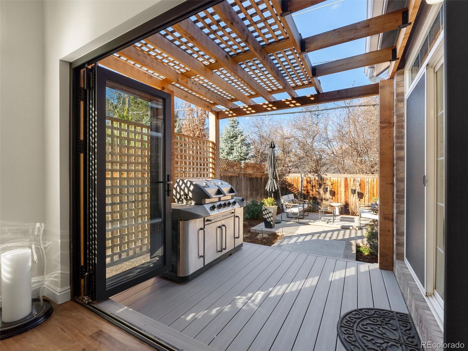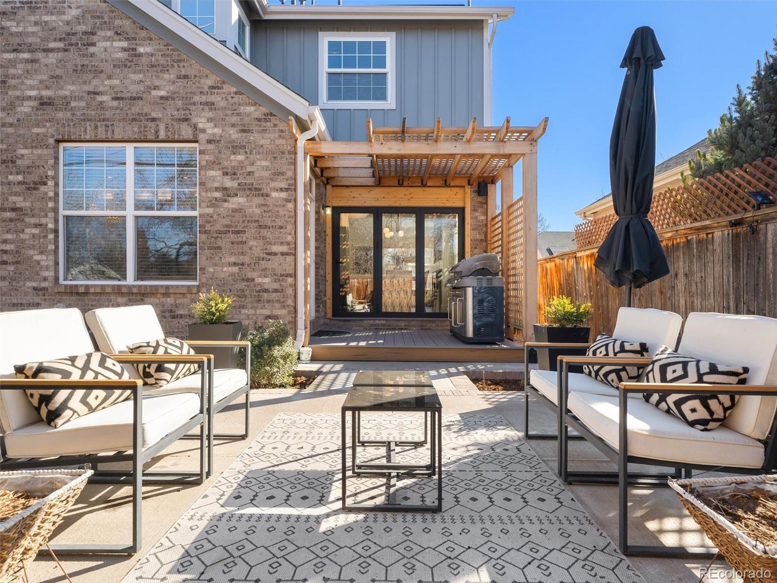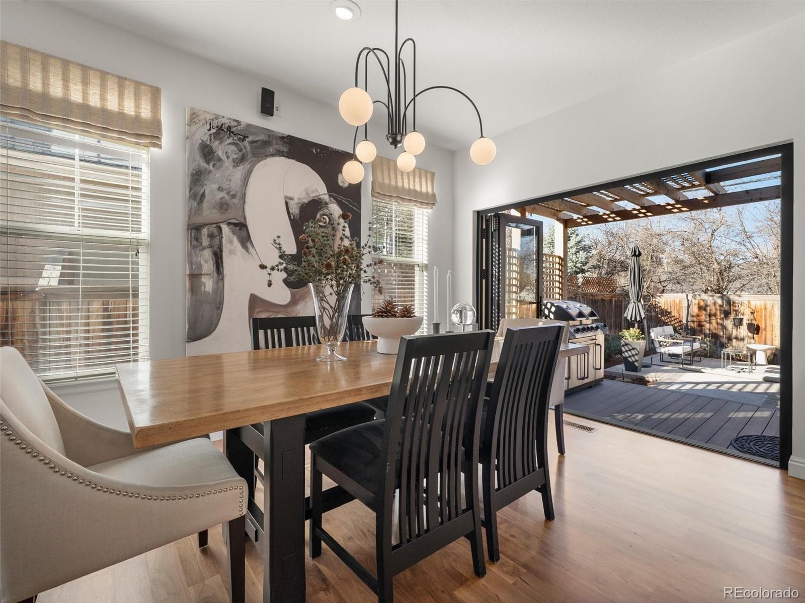 Situated in the heart of Lowry West, this exceptional one owner single-family home is a true designer showcase. Owned and thoughtfully curated by a professional designer and interior architect, every finish, fixture, and feature has been intentionally selected to create a seamless blend of sophistication and livability. Recently refinished hardwood floors provide warmth and continuity throughout, complemented by striking Italian and Brazilian tile selections that add texture and refinement. The chef’s kitchen is both beautiful and highly functional, anchored by custom cabinetry with a built-in appliance garage, a downdraft gas range that vents to the exterior, and a double oven ideal for entertaining. Expansive accordion doors open fully to the backyard, creating effortless indoor-outdoor flow. The custom-designed patio extends the living space outdoors and is perfectly appointed with a gas fire pit and backyard pre-wiring for power, ready for future enhancements. Upstairs, the primary suite offers a spa-inspired retreat. The primary bath showcases marble and porcelain tile, heated floors, and elevated finishes that reflect the home’s designer pedigree. Custom closet organization systems in both the primary suite and basement bedroom maximize storage with style and intention. Modern convenience meets comfort with internet-controlled thermostat and sprinkler systems. Green features include an owned solar panel system that augments your electrical needs. Built-in speaker wiring and controls serve both the living room and backyard, creating a seamless indoor-outdoor entertainment experience. The insulated and heated garage features a professionally finished epoxy floor, providing a polished, durable space for vehicles, hobbies, or additional storage.This is not simply a home, it is a carefully curated living experience in one of Denver’s most desirable neighborhoods, where timeless design, thoughtful upgrades, and everyday comfort come together beautifully