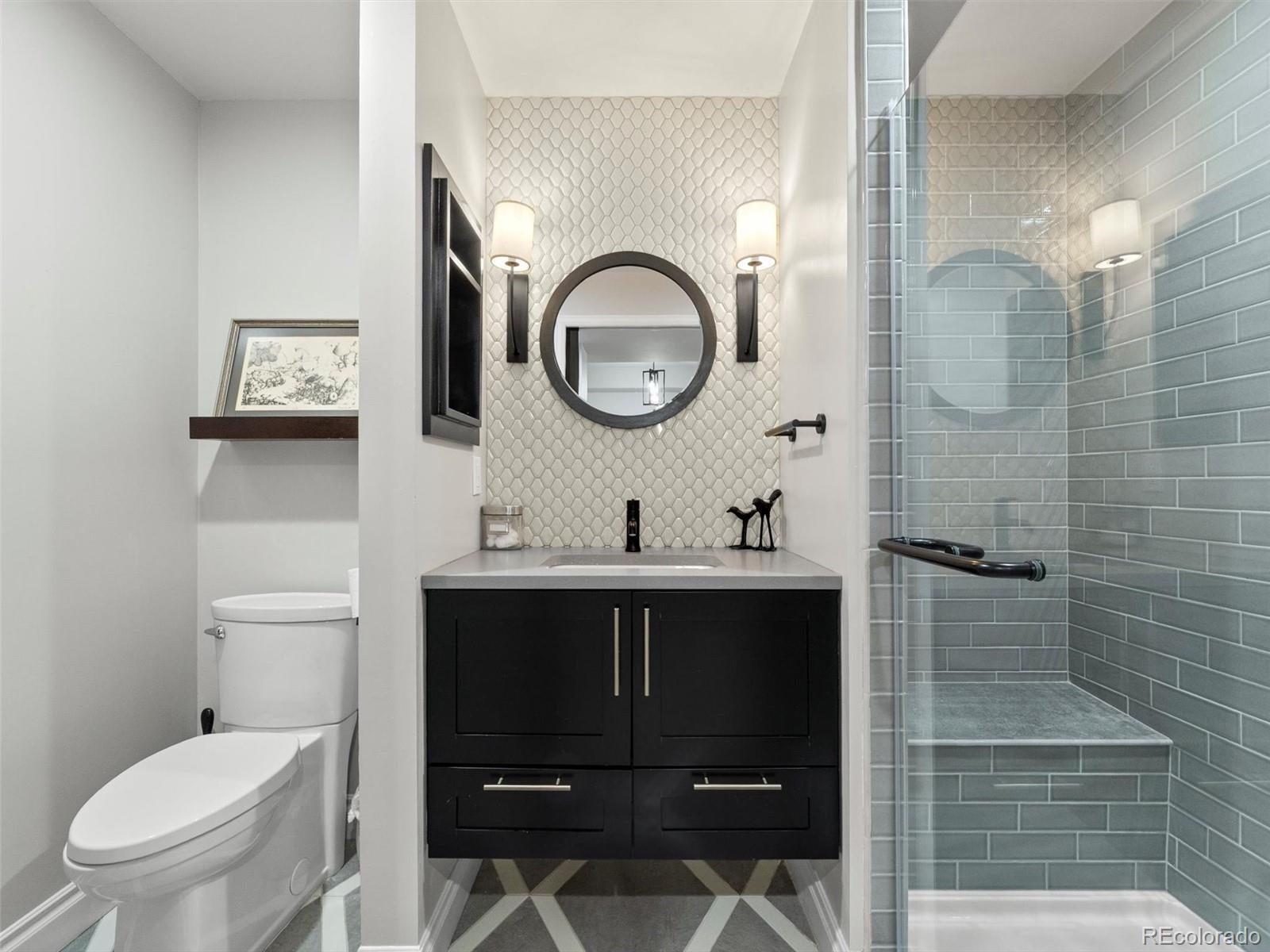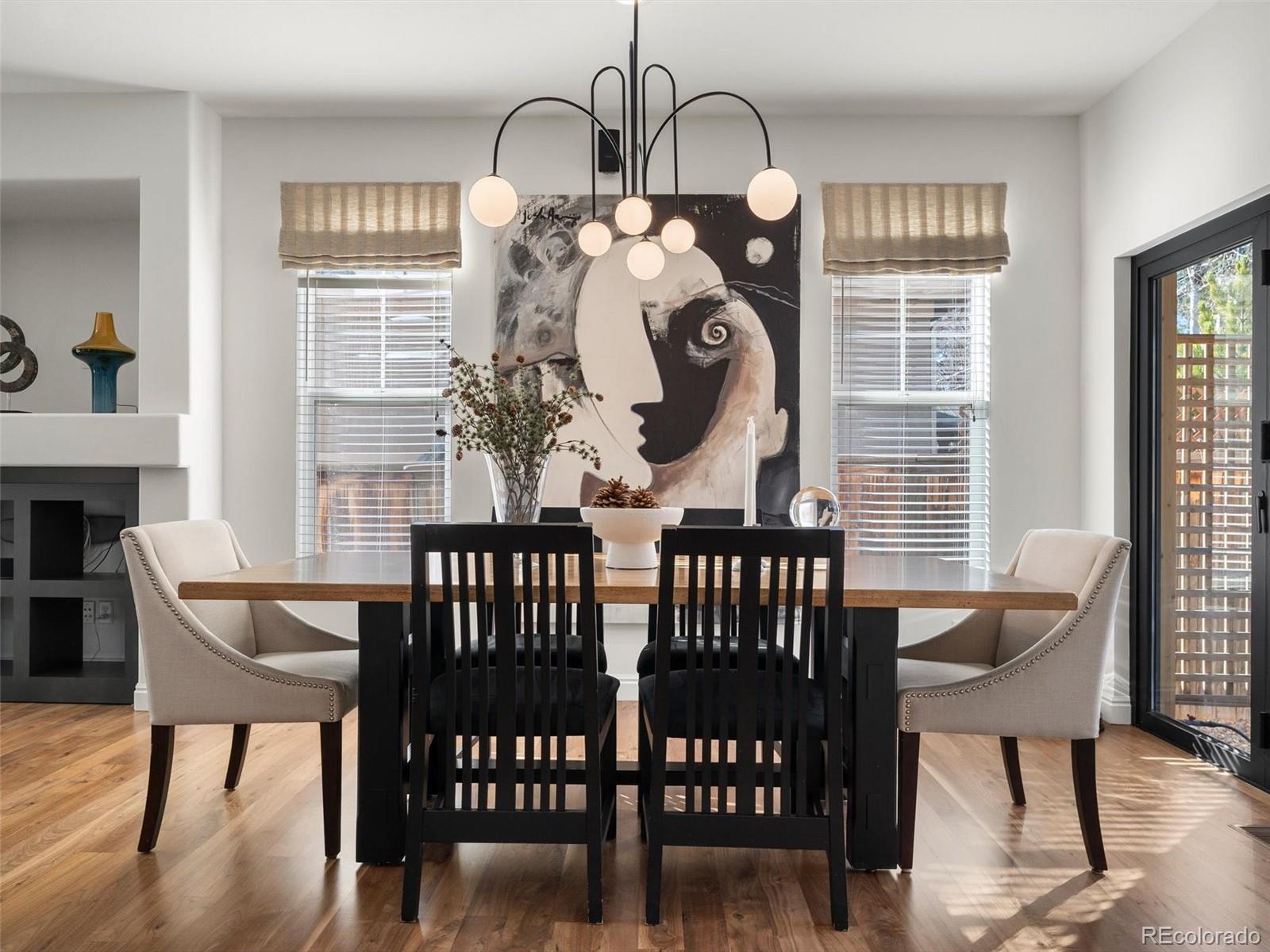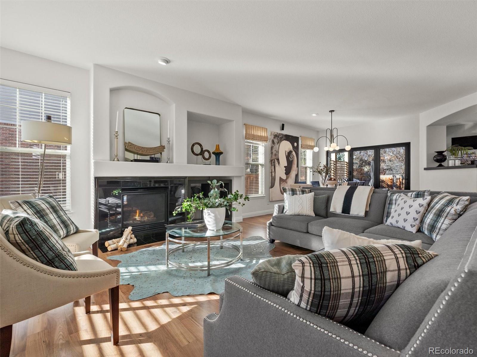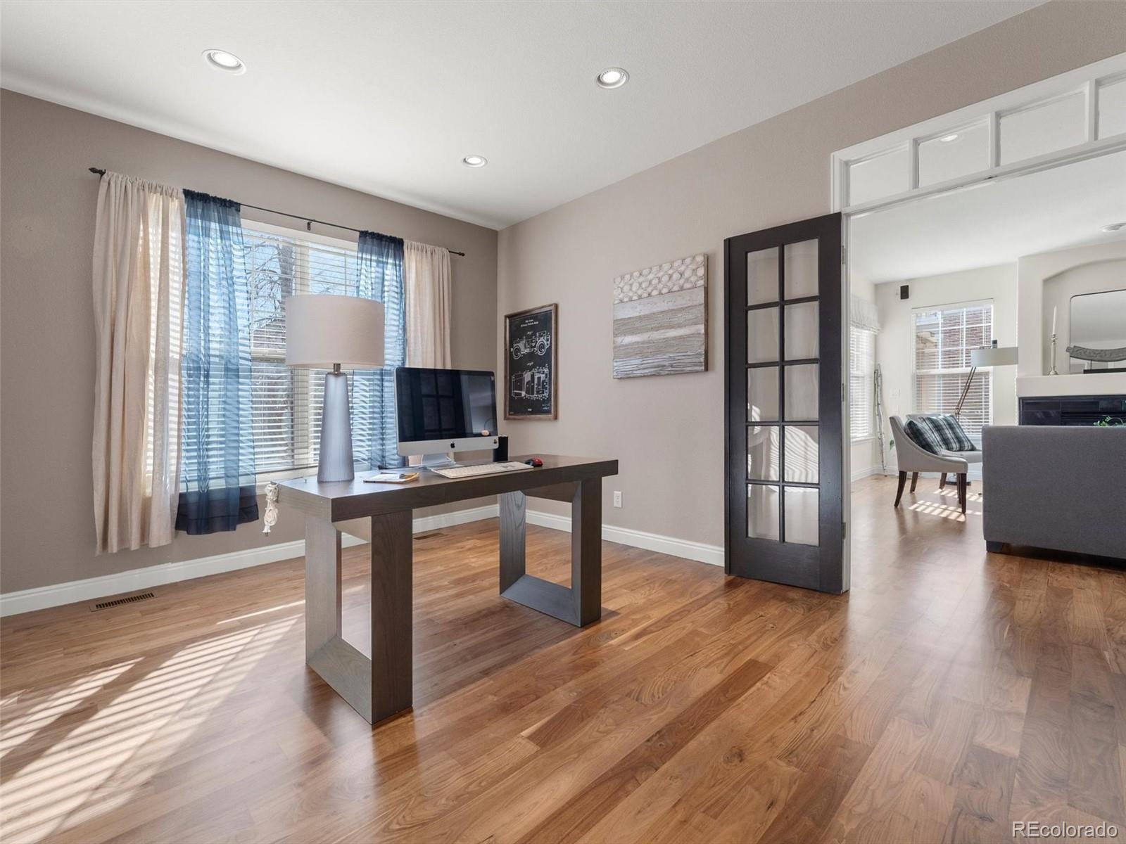 Situated in the heart of Lowry West, this exceptional one owner single-family home is a true designer showcase. Owned and thoughtfully curated by a professional designer and interior architect, every finish, fixture, and feature has been intentionally selected to create a seamless blend of sophistication and livability. Recently refinished hardwood floors provide warmth and continuity throughout, complemented by striking Italian and Brazilian tile selections that add texture and refinement. The chef’s kitchen is both beautiful and highly functional, anchored by custom cabinetry with a built-in appliance garage, a downdraft gas range that vents to the exterior, and a double oven ideal for entertaining. Expansive accordion doors open fully to the backyard, creating effortless indoor-outdoor flow. The custom-designed patio extends the living space outdoors and is perfectly appointed with a gas fire pit and backyard pre-wiring for power, ready for future enhancements. Upstairs, the primary suite offers a spa-inspired retreat. The primary bath showcases marble and porcelain tile, heated floors, and elevated finishes that reflect the home’s designer pedigree. Custom closet organization systems in both the primary suite and basement bedroom maximize storage with style and intention. Modern convenience meets comfort with internet-controlled thermostat and sprinkler systems. Green features include an owned solar panel system that augments your electrical needs. Built-in speaker wiring and controls serve both the living room and backyard, creating a seamless indoor-outdoor entertainment experience. The insulated and heated garage features a professionally finished epoxy floor, providing a polished, durable space for vehicles, hobbies, or additional storage.This is not simply a home, it is a carefully curated living experience in one of Denver’s most desirable neighborhoods, where timeless design, thoughtful upgrades, and everyday comfort come together beautifully