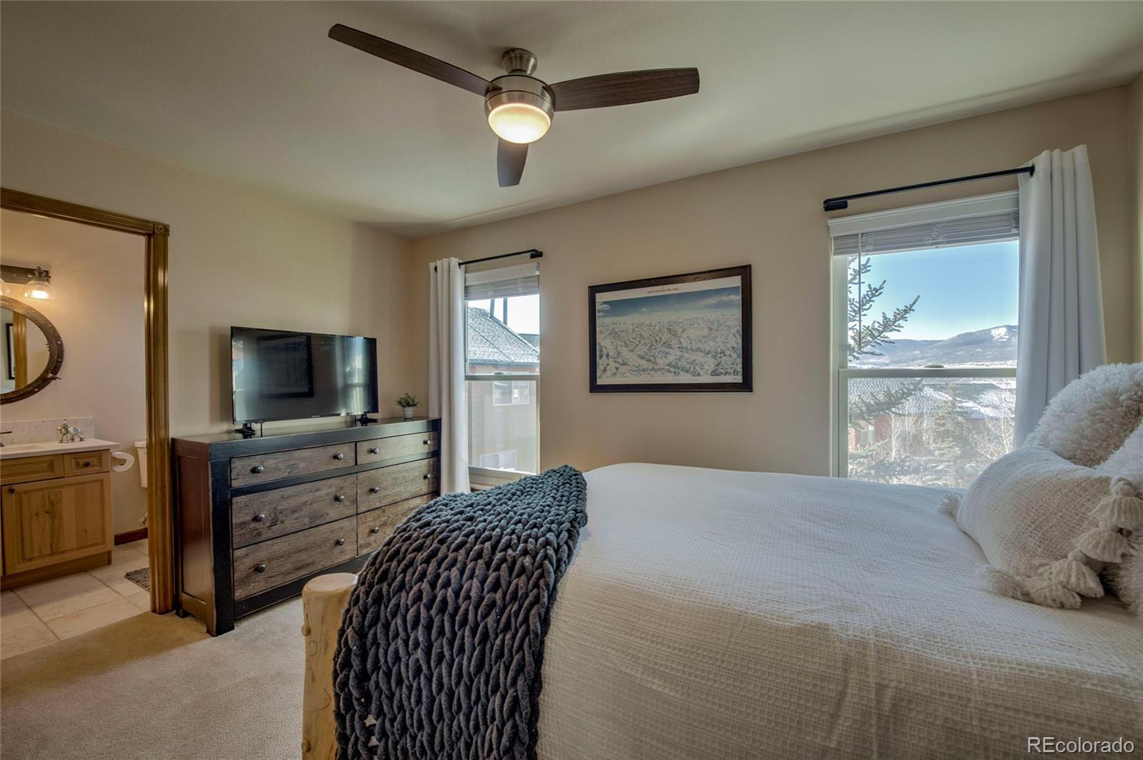 Perfectly positioned in the heart of Dillon, this beautifully updated 3-bedroom, 3-bath end-unit townhome offers an exceptional combination of comfort, style, and unbeatable convenience. Surrounded by mountain views and located in a quiet, scenic community, this spacious home is just steps from town, Lake Dillon, the amphitheater, restaurants, shopping, and more! The open and inviting floor plan is filled with natural light thanks to extra end-unit windows and recently replaced windows and sliding doors. Enjoy updated countertops, sinks, and appliances, including a modern induction range, along with a large stone fireplace that anchors the living space. In-floor radiant heat keeps the home cozy all winter, and a newer boiler adds peace of mind. Step outside to two expansive decks—front and back—perfect for morning coffee or après-ski cocktails, while added gutters and thoughtful upgrades enhance both function and ease of ownership. Upstairs, the laundry room is conveniently located between two generously sized bedrooms, each with its own private bath, providing excellent separation and comfort. The third bedroom also offers ample space and privacy. Additional highlights include a 1-car oversized garage, abundant storage, and access to clubhouse hot tubs—ideal after a day on the slopes or trails. With world-class skiing, fishing, hiking, and biking just minutes away and five major ski resorts within easy reach, this location truly delivers year-round adventure. Whether you’re seeking a full-time residence, mountain getaway, or short-term rental investment, this Dillon townhome checks every box for mountain living at its best.