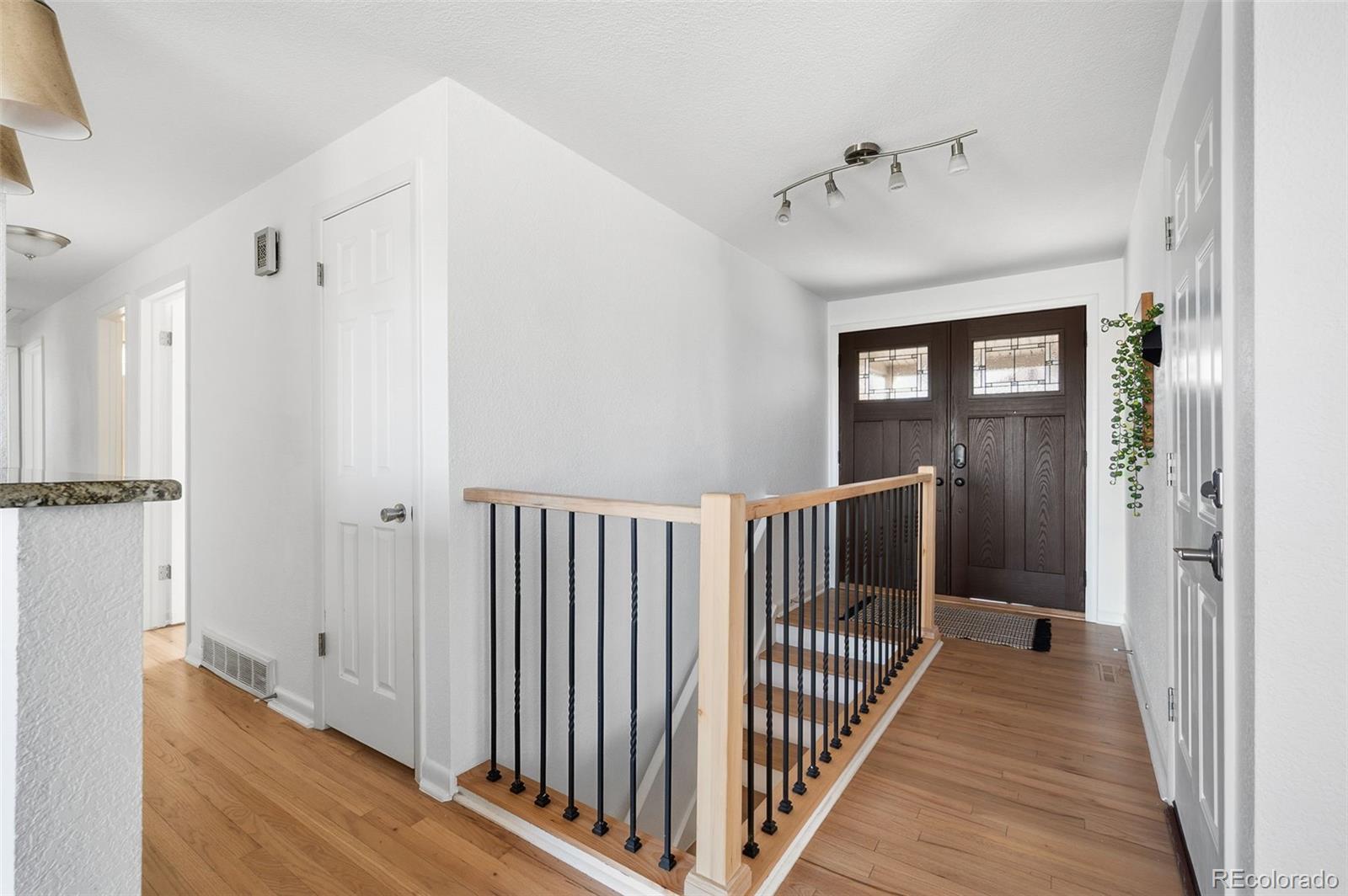 Located in sought-after Olde Town Arvada, this beautiful walk-out ranch offers mountain views, timeless charm, and an ideal layout for everyday living. You’ll be welcomed by double doors and hardwood floors that flow throughout the main level and basement. The main level features two bedrooms, including a primary suite with en-suite bath, plus an additional full bathroom, a formal dining room, and a bright breakfast nook. The finished walk-out basement adds incredible flexibility with two spacious bedrooms and a recently remodeled 3/4 bathroom—perfect for guests, a home office, or multi-generational living. Enjoy Colorado living at its best with a balcony off the kitchen and an oversized Trex deck (replaced in 2024) that’s a perfect place to soak in the mountain views and enjoy front-row seats to 4th of July fireworks. A large covered deck off the lower level adds even more space for entertaining or relaxing year-round. The home also offers a fully fenced private backyard, along with a fenced front yard and garden space for added charm and privacy. Additional highlights include owned solar, newer fence, and a brand new water heater for peace of mind.