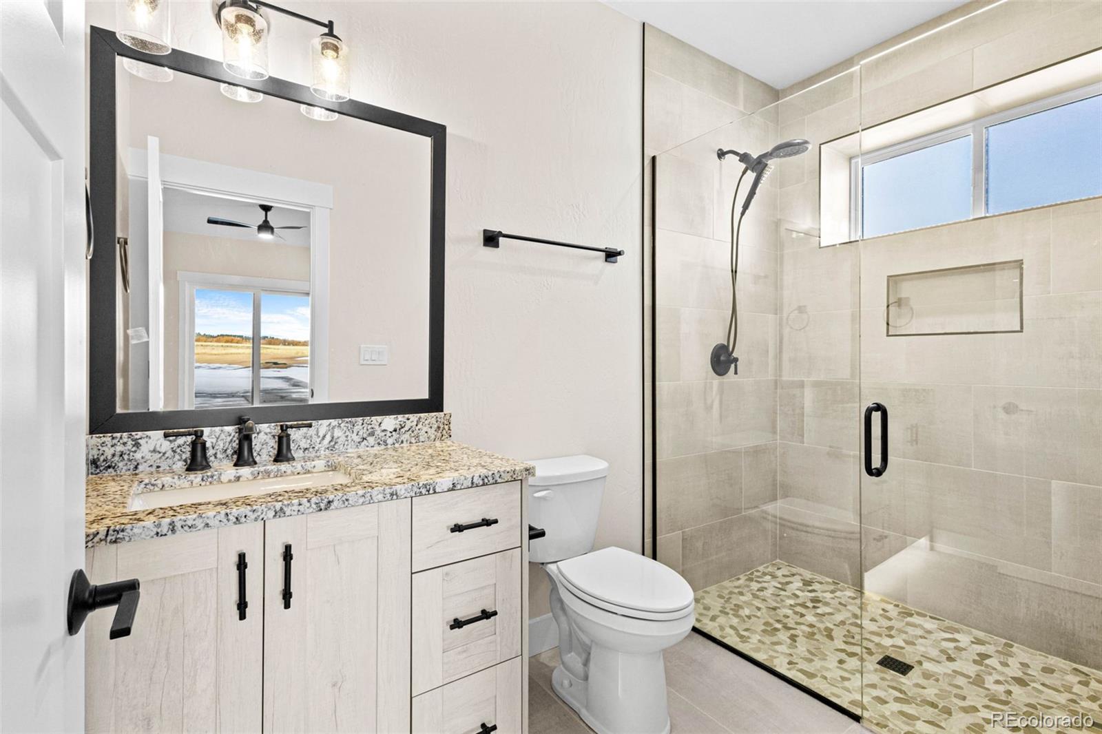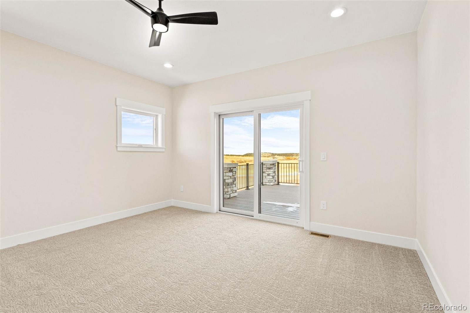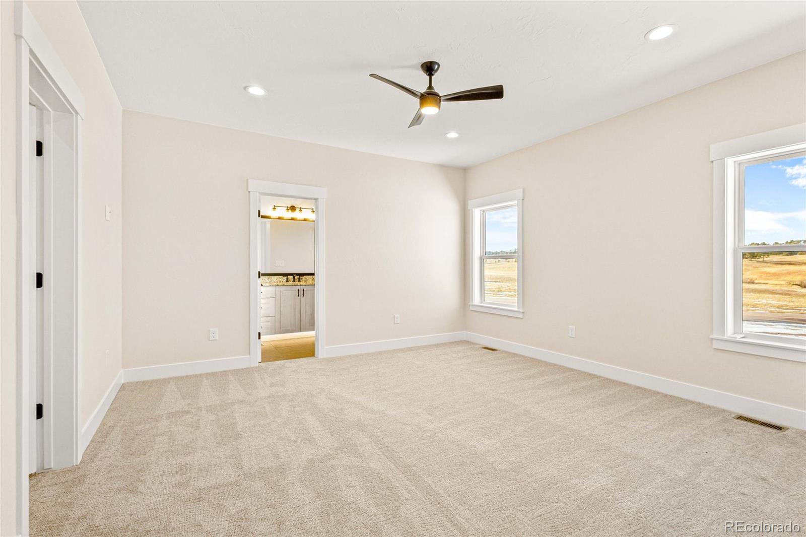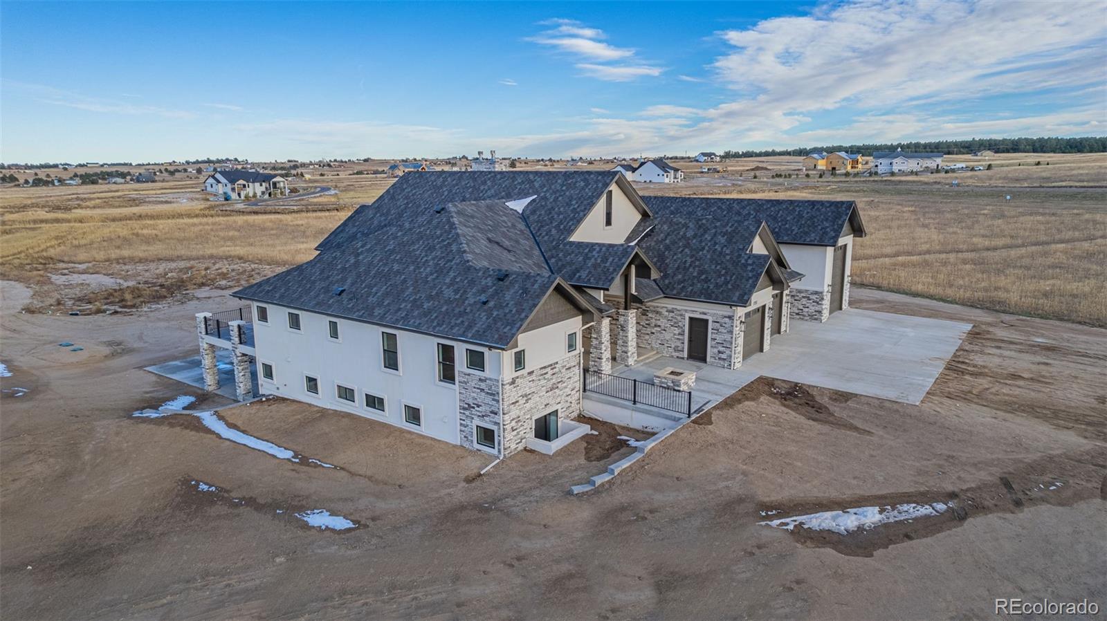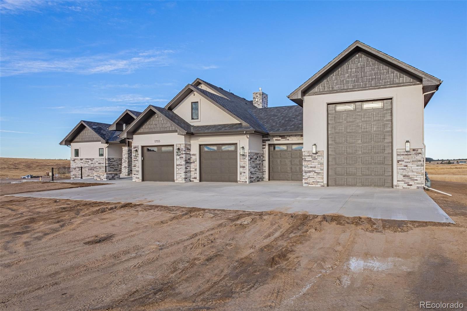 New construction. Never lived in. Discover your dream home in this exceptional ranch-style property that offers a lifestyle of luxury & convenience. A true gem, this home sits on an expansive 5.01 acres, tucked away on a quiet street. From this exclusive location, you'll enjoy breathtaking views of Pikes Peak, creating a picturesque backdrop for your daily life. As you step inside, you'll be welcomed by an expansive open floor plan. The grand room is a showstopper, complete with an elevator for ease of access, a cozy fireplace to gather around, & a hidden pantry that's both practical & discreet. The custom cabinets & elegant granite countertops in the kitchen add a touch of sophistication, while the walk-out deck, spanning an impressive 51 feet, invites you to soak in the serene outdoor views. The main level boasts three spacious bedrooms, each designed for comfort and style. The owner's retreat is a true sanctuary, featuring a fireplace as well as direct access to the deck. The primary bath is a spa-like haven, equipped with a luxurious spa shower, a freestanding tub, a heated towel rack, & double vanity for added convenience. A generous walk-in closet, complete with a built-in closet system, conveniently attaches to the main level laundry room, which features granite countertops, a sink, & space for a full-sized refrigerator. Venture into the walk-out basement adding another layer of convenience and charm to this exceptional home. The family room is a fantastic space for entertaining and relaxation, and it includes a full-sized kitchen for added convenience. A finished storage room doubles as a safe room, providing peace of mind. You'll also find three additional bedrooms, each with their own en-suite bathrooms, ensuring comfort and privacy for everyone. This home is the epitome of elegance and functionality, offering an extraordinary blend of luxury and practicality. With large outdoor entertaining spaces, your options for relaxation and enjoyment are boundless.