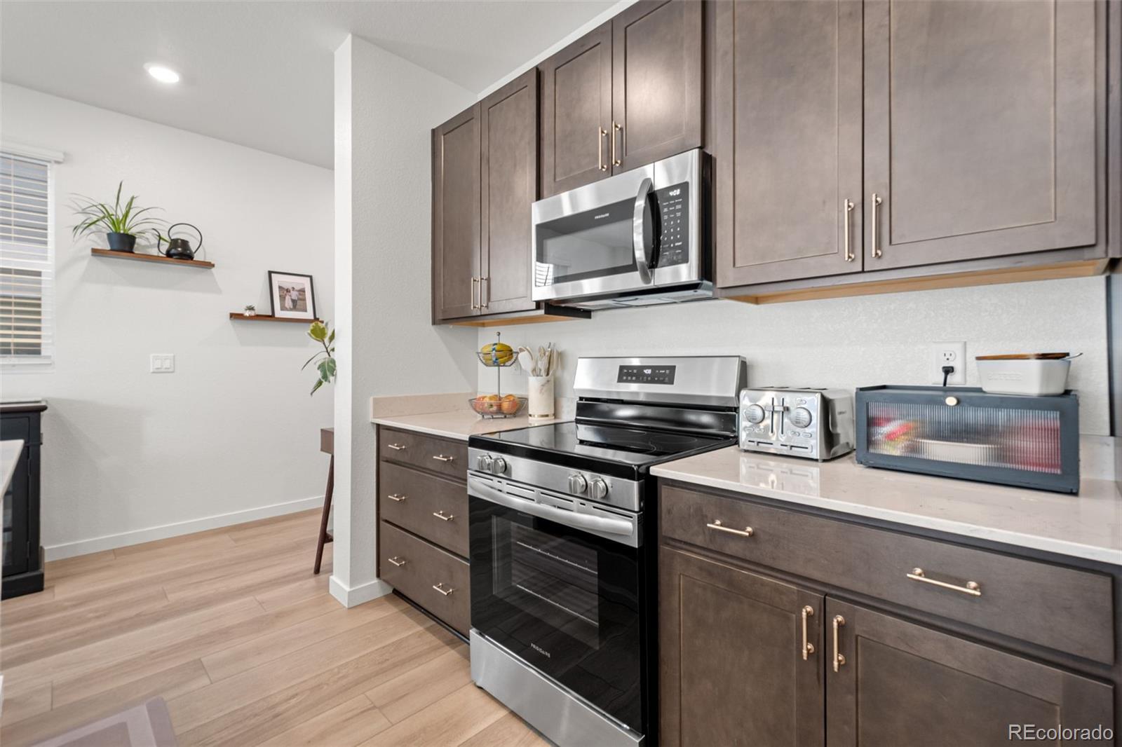 This recently completed paired home (2024) offers modern living with a thoughtful, functional design. The home features three bedrooms conveniently located on the same level, 2.5 bathrooms, and an open-concept kitchen ideal for both everyday living and entertaining. Upstairs laundry adds ease, while the spacious primary suite includes a generous walk-in closet currently used by the owners as a second office. An unfinished basement provides excellent flexibility for future expansion, and the attached two-car garage adds everyday convenience. Beautiful finishes are showcased throughout, including luxury vinyl plank flooring, stainless steel appliances, and quartz countertops. Enjoy indoor-outdoor living on the covered patio—perfect for dining nearly year-round.The sellers have invested in professional landscaping with sprinklers installed in both the front and backyard, refreshed interior paint throughout the home, and added three ceiling fans in the living room, primary bedroom, and second bedroom. Ideally located with quick access to E-470, this home is just minutes from Trader Joe’s, Whole Foods, and Costco, Lifetime Fintess, Parker Advent Hospital, approximately 10 minutes from Park Meadows shopping, and about 30 minutes from the airport. The neighborhood offers a local park, trails, and sidewalks that connect to nearby subdivisions. This home is located within 10 minutes of the Parker Recreation Center. Bonus opportunity: Sellers have an assumable FHA loan with a lower interest rate. Please contact the Listing Agent for additional details.