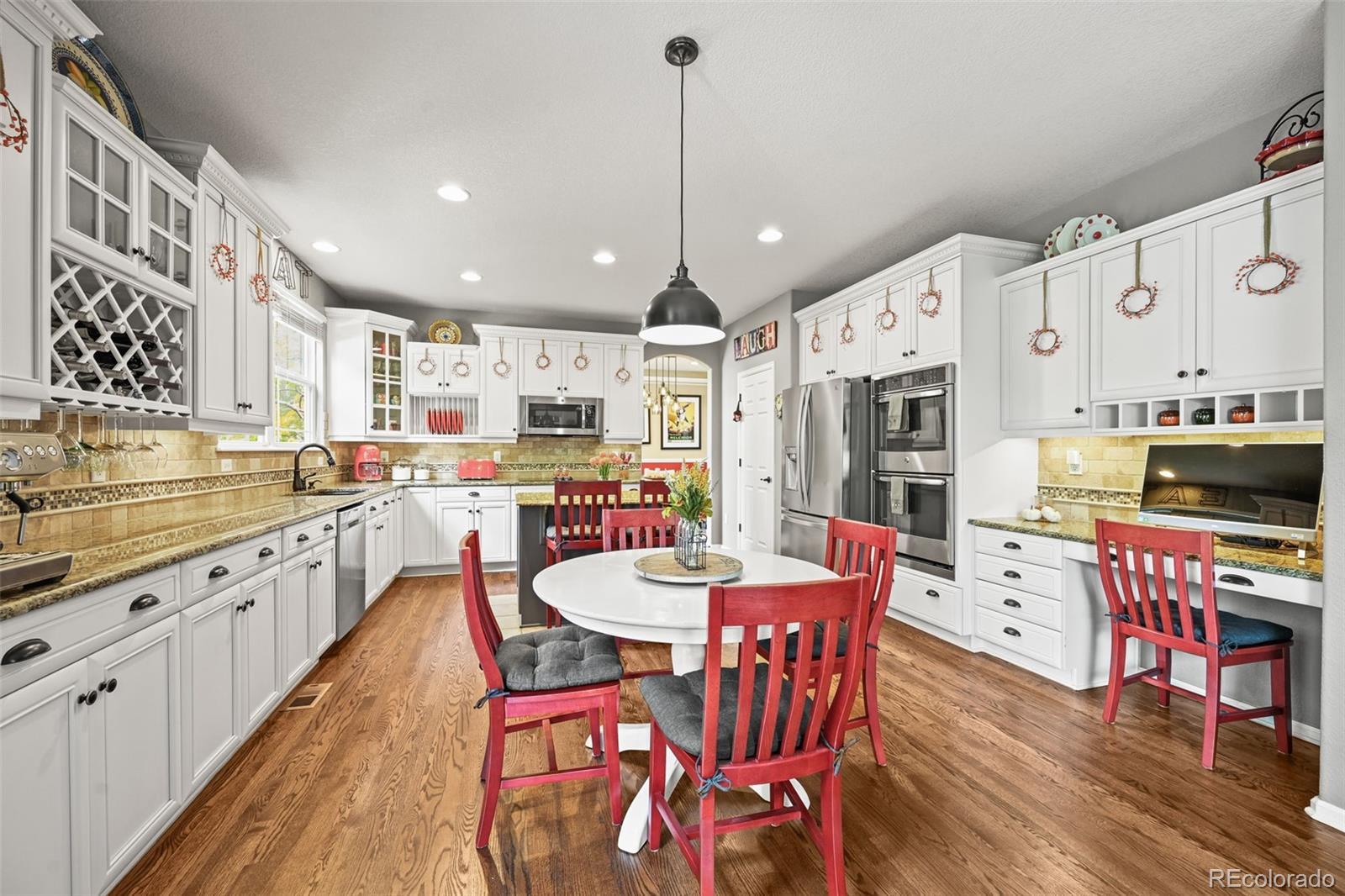 Now Pending - Accepting Back Up Offers. Start 2026 in a home that's ready for life’s moments big & small! Where every detail has been cared for with thoughtful purpose - designer touches, fresh updates, & smart comfort throughout. 5 spacious bedrooms, 4 bathrooms, amazing kitchen with an abundance of cabinets & counter space, a new double oven, stainless appliances, pantry, island, eat-in space and a planning desk; lovely balcony at your primary suite, finished basement with a rec room, 5th conforming bedroom, private 3/4 bath & additional storage in unfinished space plus more storage in the crawl space; 3 car garage & beautiful back deck. This home is move-in ready, here’s a sample of big updates over the last 5 years: *New Exterior Paint**New Windows**New Hot Water Heater**Newly Painted Fence**New Main Level Furnace & Central AC**New Upper Level Furnace & Central AC**Refinished Kitchen & Family Room Cabinets**Laundry Room complete with cabinets, sink & Washer/Dryer**Refinished Hardwood Floors**New Carpet Main & Upper Levels**Washer & Dryer**New Double Oven** And, there’s more! Updated bathrooms, updated designer lighting, designer paint colors, professional landscaping, 9100 sq ft lot that wraps around the home with great space to run, relax & play! Located in the heart of Highlands Ranch, which is a highly desirable planned community with 4 Recreation Centers including indoor/outdoor pools, fitness areas/classes & fun activities for all! Walk to Southridge Recreation Center from this home! Proximity to top schools/dining/shopping/trails/local hospitals, including Children's Hospital & UC Health Highlands Ranch Hospital. Great access around town - Take C470 to I-70 to enjoy skiing or summer mountain retreats, E470 to Denver International Airport for all your air travel, & I-25 north to Denver & Fort Collins or south to Colorado Springs & beyond. Easy park & ride for RTD Light Rail to/from Denver. Home to Denver Nuggets, Denver Bronco's & Colorado Avs!