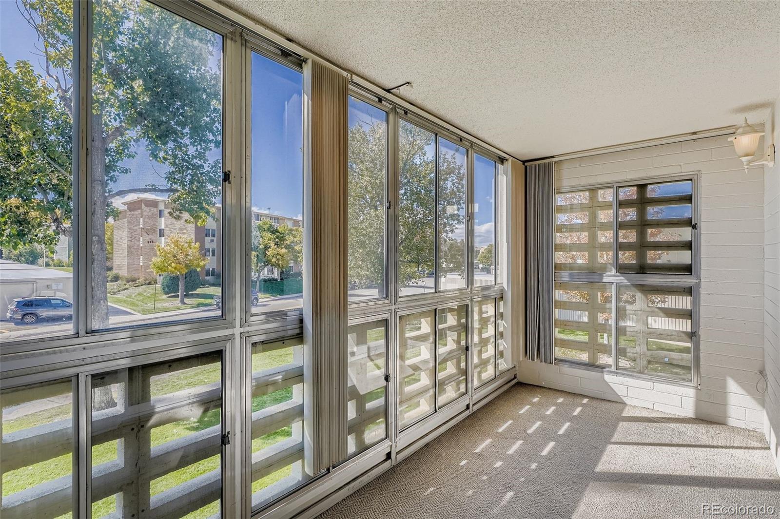 Experience easy, carefree living in Denver’s premier 55+ community! This bright and inviting 2-bedroom, 1-bath Windsor Gardens condo offers approx. 945 sq ft of comfortable space designed for relaxed, low-maintenance living. Enjoy a spacious open living/dining area filled with natural light, an efficient kitchen, and two generous bedrooms perfect for guests or hobbies. Located in a secure, well-managed community with beautifully maintained grounds, residents enjoy exceptional amenities including a 9-hole golf course, indoor/outdoor pools, fitness center, walking paths, and a vibrant clubhouse with activities year-round. Convenient to Cherry Creek shopping, medical centers, and public transit—this is the perfect blend of comfort, security, and active adult living. Flooded with natural light from large windows, the living areas feel larger than their footprint — perfect for cozy movie nights or hosting friends.Comfortable primary and secondary bedrooms deliver privacy and storage — ideal for roommates, a home office, or a guest bedroom. Entry/coat closet and in-unit storage areas maximizing practical use of the square footage. The detached garage is steps away. Can be an excellent investment opportunity with a functional layout ideal for long-term tenants. Low-maintenance finishes, strong HOA management, and access to community amenities enhance long-term appeal and value. Conveniently located near Cherry Creek, DIA, and public transit, this property is a solid addition to any portfolio with strong appreciation potential and steady cash flow prospects.