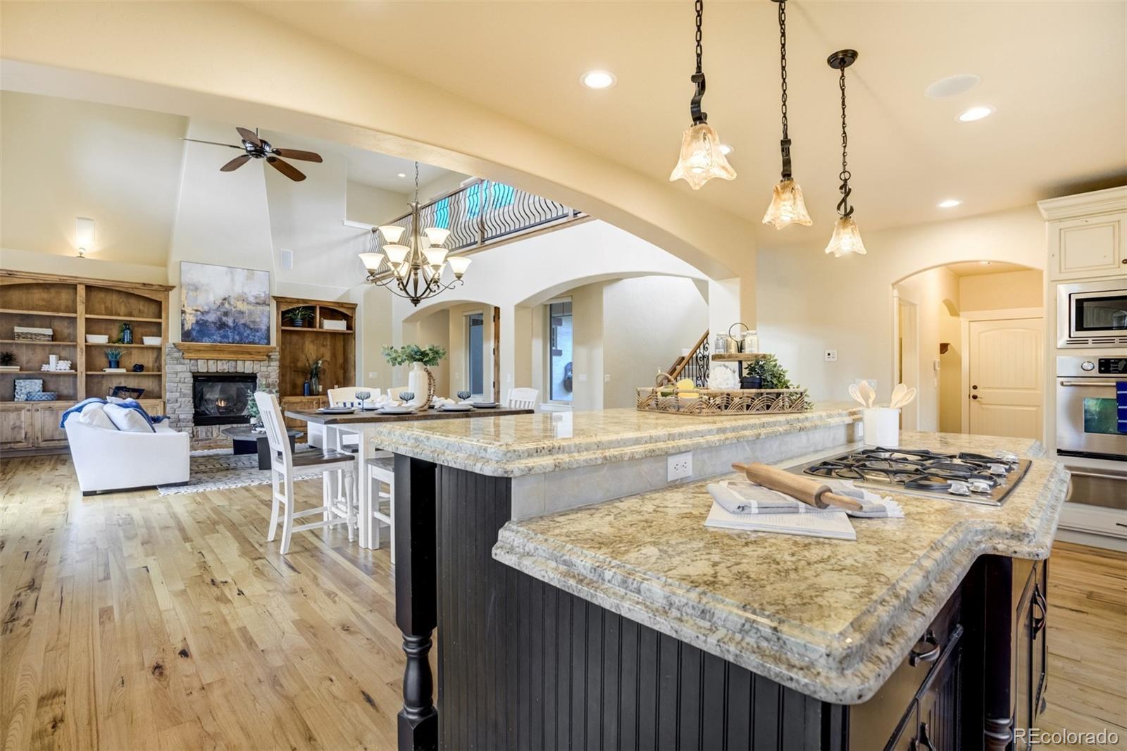 Breakfast Bar, Built-in Features, Ceiling Fan(s), Central Vacuum, Eat-in Kitchen, Entrance Foyer, Five Piece Bath, Granite Counters, High Ceilings, Jack & Jill Bathroom, Kitchen Island, Open Floorplan, Pantry, Primary Suite, Hot Tub, Walk-In Closet(s), Wet Bar