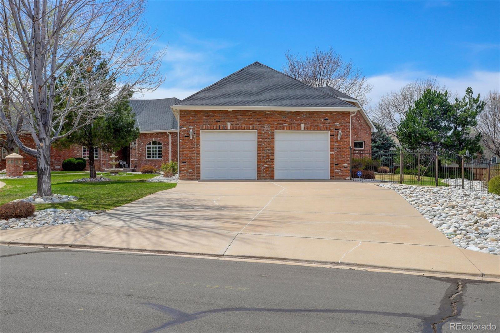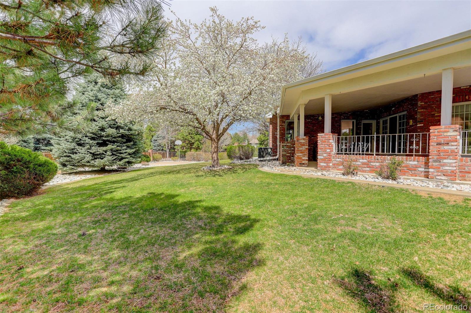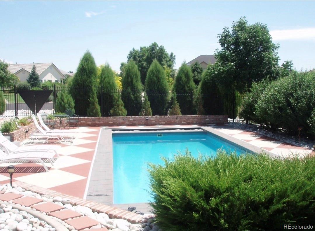 Nestled on nearly a one-acre corner lot in the sought-after Meadow Hills community, this custom-designed brick ranch-style home offers exceptional living inside and out. With five spacious bedrooms, the thoughtful layout places the private primary suite at one end of the home, while the additional main-floor bedrooms—each featuring walk-in closets—include one with its own en-suite bath and two connected by a Jack-and-Jill bath. Designed for both function and luxury, the home boasts quality craftsmanship throughout, including vaulted ceilings, solid hemlock doors and trim, cherry cabinetry and flooring, bay windows, an intercom system, brick pillars with outdoor lighting, and outlets around the exterior soffits for holiday lighting. The upgraded Class 4 roof, dual newer furnaces and A/C units, and two 50-gallon water heaters with a recirculation pump speak to the home's outstanding efficiency. A car enthusiast's dream, the home features two oversized heated garages—each with its own thermostat, 9'-wide doors and built-in cabinetry—ideal for collections, hobbies, or extra storage. The finished basement adds even more flexible space with a fifth bedroom and bathroom, a game area for entertaining, and a bonus room perfect for a gym or home office. Step outside to your private retreat, complete with a covered patio, sunroom, and an in-ground, lighted pool with automated custom cover. A half basketball court, circular drive, and additional concrete pad provide endless opportunities for play, gatherings, or relaxation. Located in a serene, established neighborhood of 125 custom homes, this property is just steps from Meadow Hills Golf Course and close to Cherry Creek State Park. Enjoy the highly rated Cherry Creek School District and quick access to shopping, dining, the Nine Mile Light Rail Station, and major highways providing access to the Denver Tech Center and Downtown Denver. This home truly checks every box—comfort, quality, and an unbeatable location.