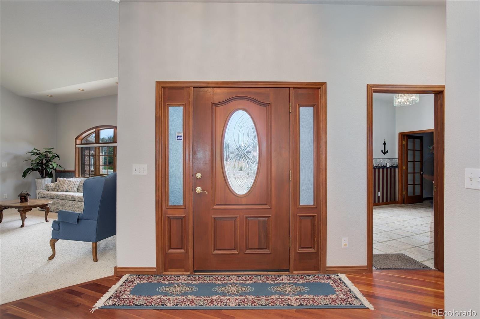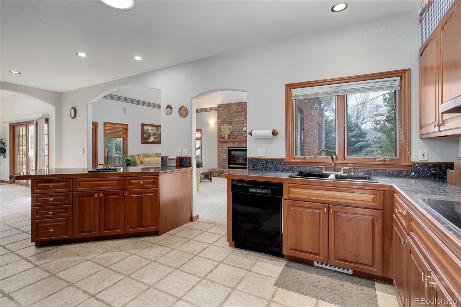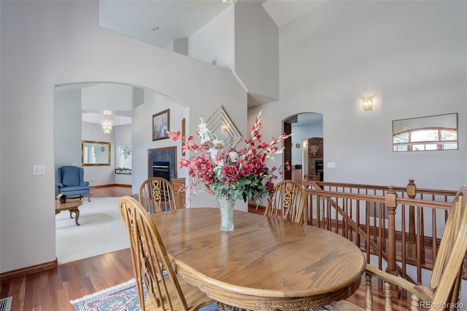 Nestled on nearly a one-acre corner lot in the sought-after Meadow Hills community, this custom-designed brick ranch-style home offers exceptional living inside and out. With five spacious bedrooms, the thoughtful layout places the private primary suite at one end of the home, while the additional main-floor bedrooms—each featuring walk-in closets—include one with its own en-suite bath and two connected by a Jack-and-Jill bath. Designed for both function and luxury, the home boasts quality craftsmanship throughout, including vaulted ceilings, solid hemlock doors and trim, cherry cabinetry and flooring, bay windows, an intercom system, brick pillars with outdoor lighting, and outlets around the exterior soffits for holiday lighting. The upgraded Class 4 roof, dual newer furnaces and A/C units, and two 50-gallon water heaters with a recirculation pump speak to the home's outstanding efficiency. A car enthusiast's dream, the home features two oversized heated garages—each with its own thermostat, 9'-wide doors and built-in cabinetry—ideal for collections, hobbies, or extra storage. The finished basement adds even more flexible space with a fifth bedroom and bathroom, a game area for entertaining, and a bonus room perfect for a gym or home office. Step outside to your private retreat, complete with a covered patio, sunroom, and an in-ground, lighted pool with automated custom cover. A half basketball court, circular drive, and additional concrete pad provide endless opportunities for play, gatherings, or relaxation. Located in a serene, established neighborhood of 125 custom homes, this property is just steps from Meadow Hills Golf Course and close to Cherry Creek State Park. Enjoy the highly rated Cherry Creek School District and quick access to shopping, dining, the Nine Mile Light Rail Station, and major highways providing access to the Denver Tech Center and Downtown Denver. This home truly checks every box—comfort, quality, and an unbeatable location.